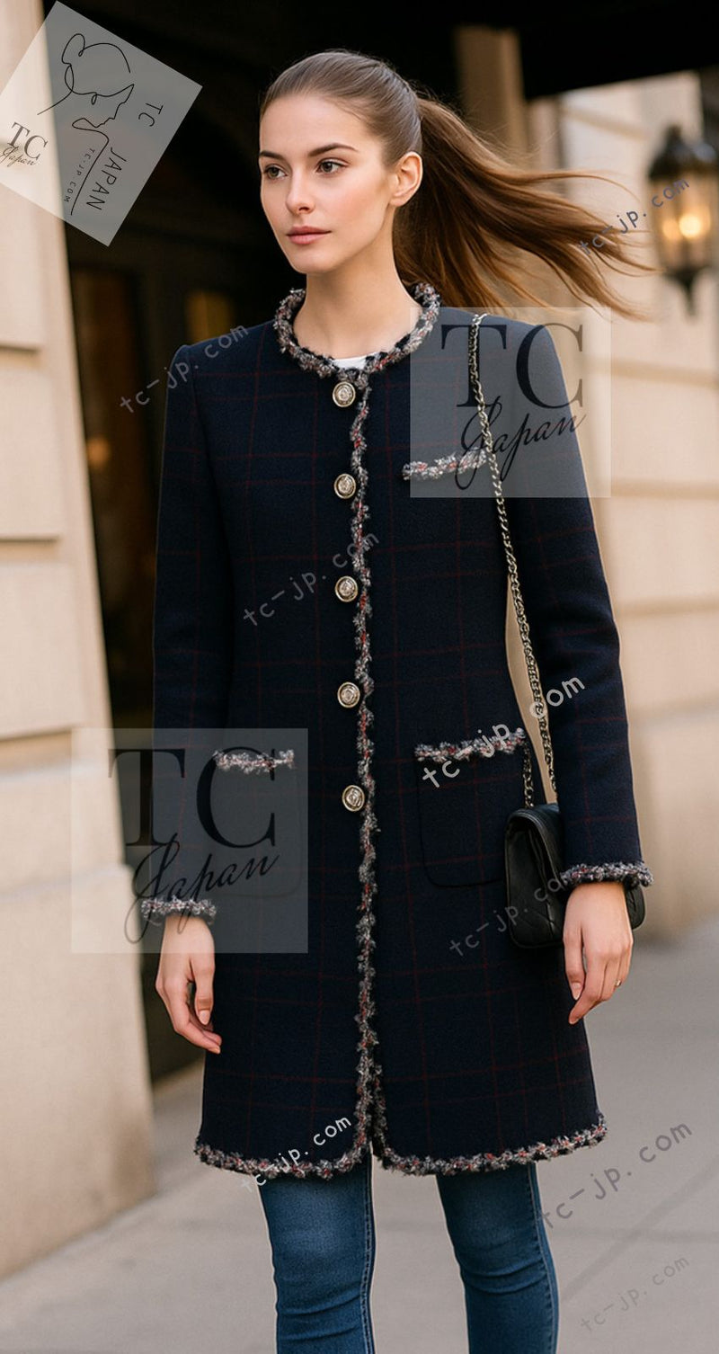 CHANEL 17A Red Black Double Wool Tweed Coat 36 シャネル レッド ブラック ダブル ウール ツイード コート 即発
