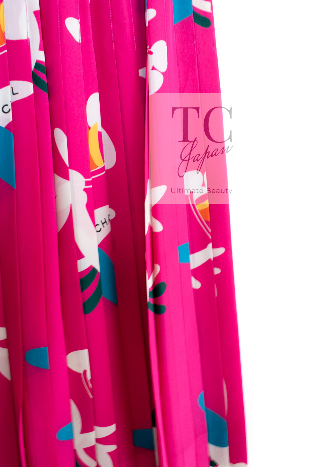 CHANEL 00T Vintage Pink Silk 100 Floral Pleated Dress 34 シャネル ヴィンテージ 花柄フローラル シルク 100% プリーツ ワンピース 即発