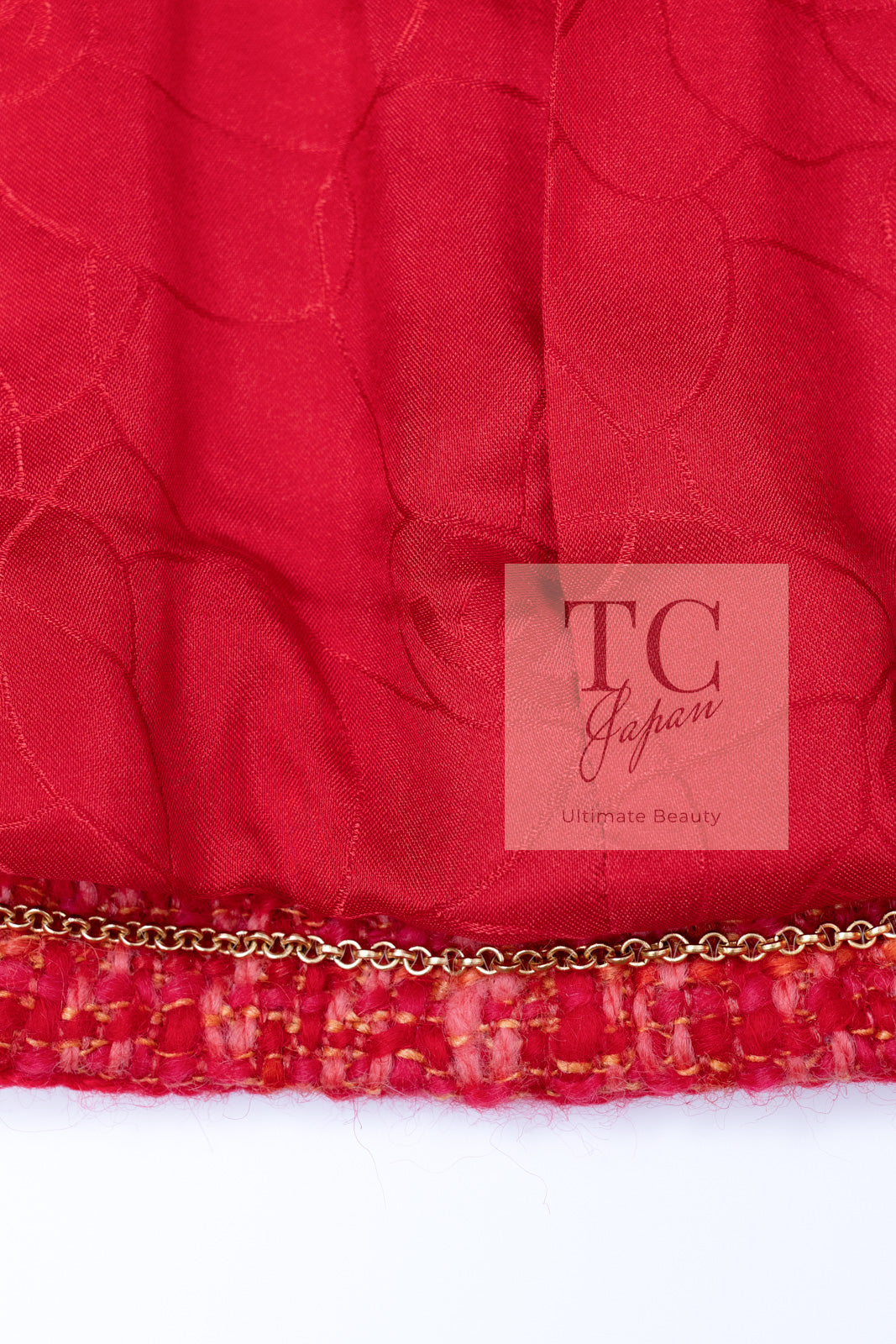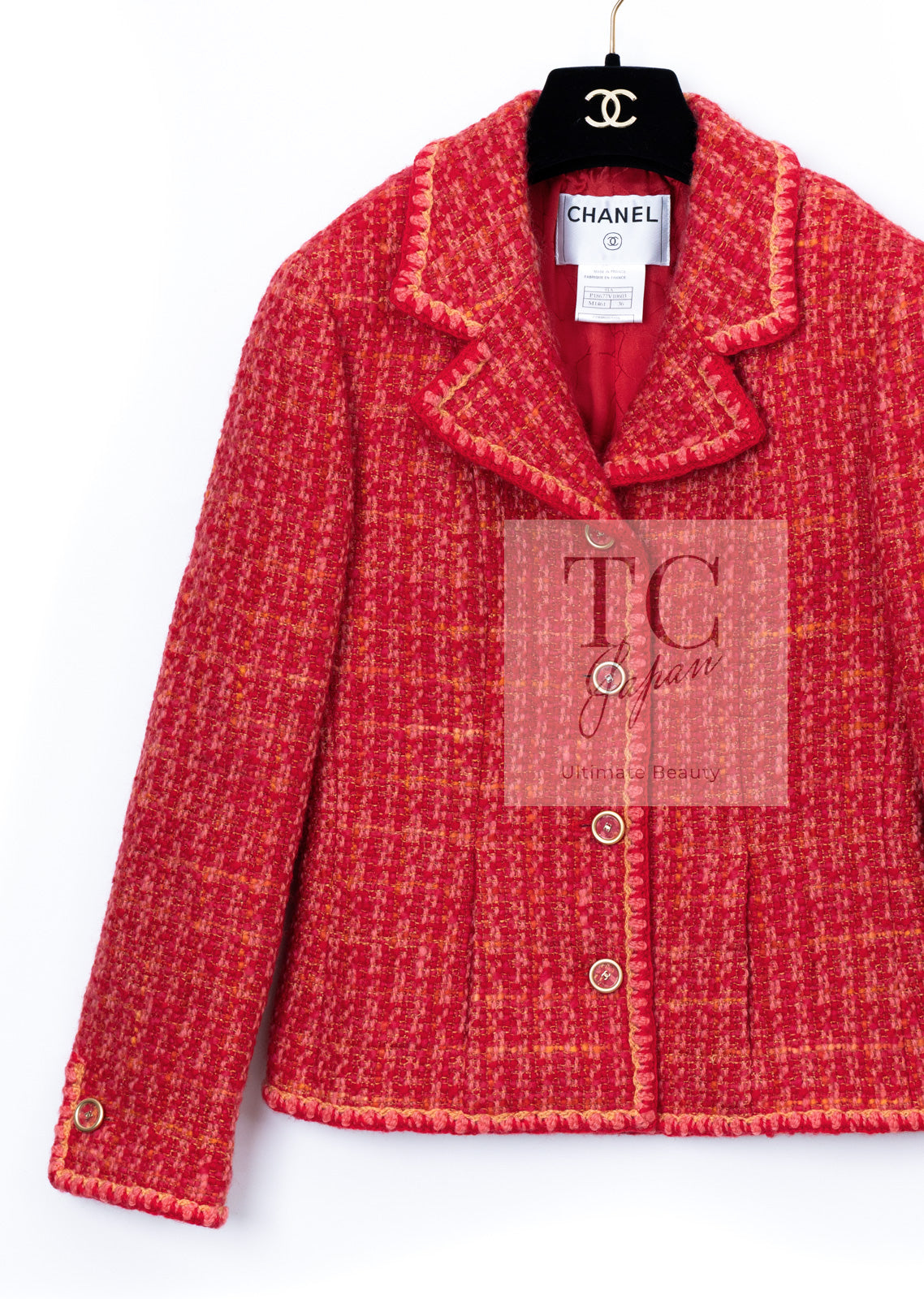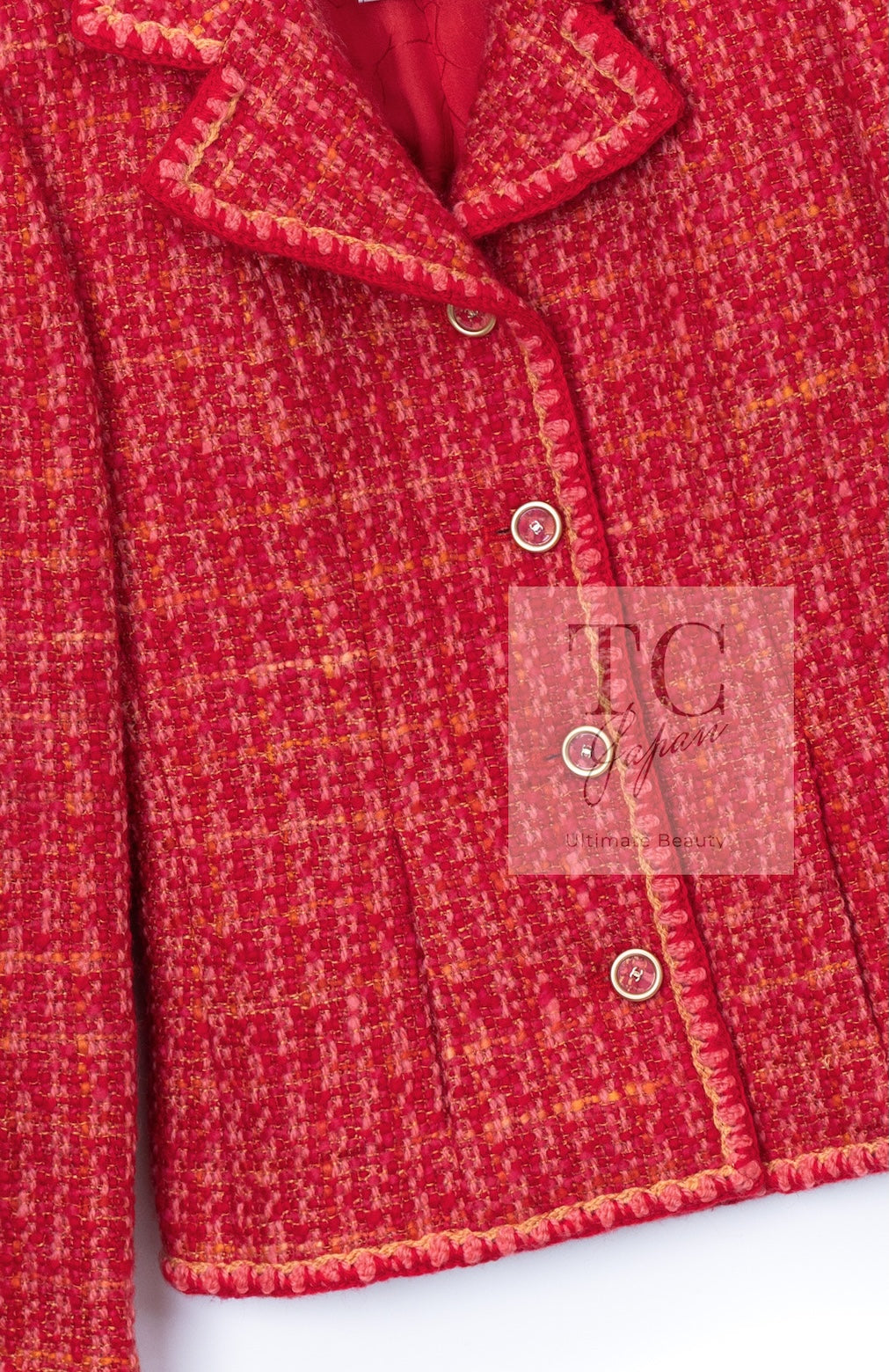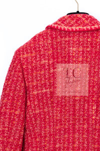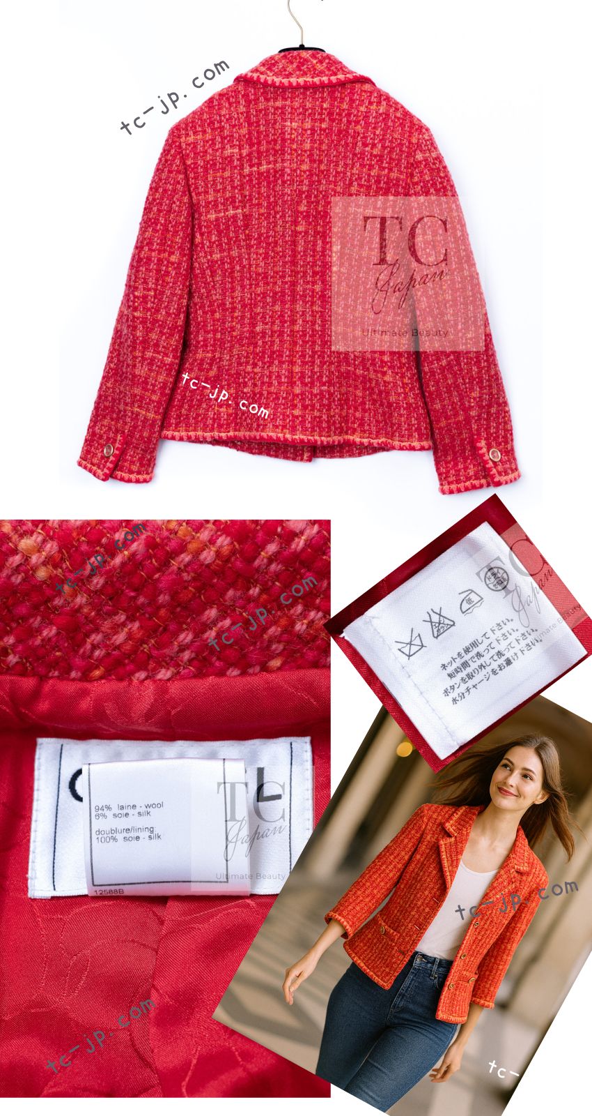 CHANEL 01A Red Coarl Pink Wool Silk Tweed Jacket 36 シャネル レッド コーラル ピンク ウール シルク ツイード ジャケット 即発