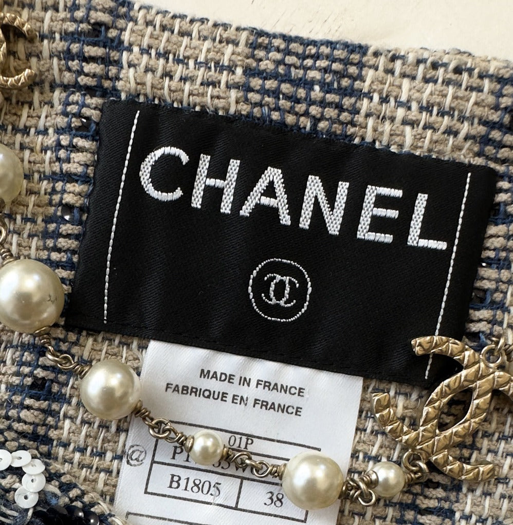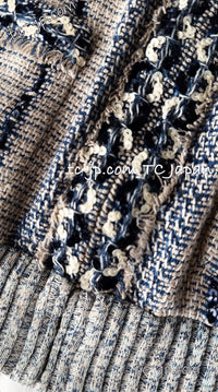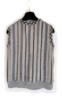 CHANEL 01S Beige Navy Knit Sequin Vest Tops 38 シャネル ベージュ ネイビー スパンコール ニット ベスト トップス 即発