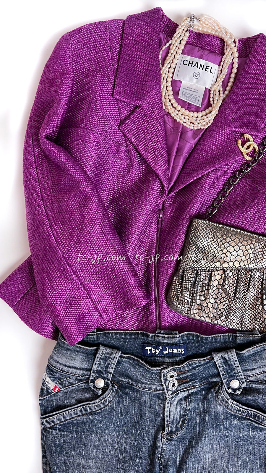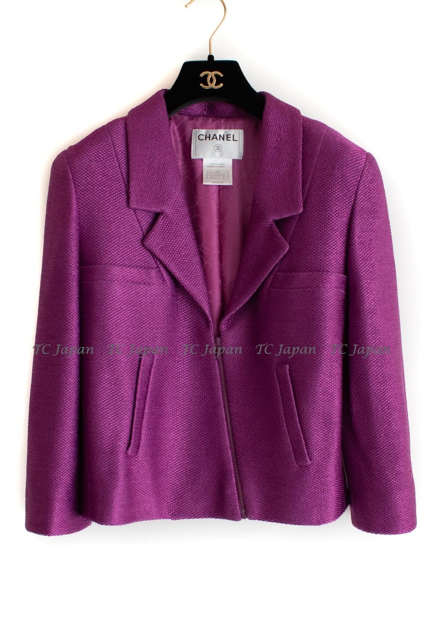 CHANEL 01S Purple Pink Cotton Zipper Jacket 38 40 シャネル パープル ピンク コットン ジッパー ジャケット 即発