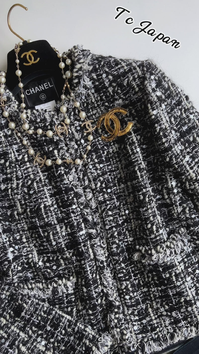 CHANEL 03A White Black Mixed Lesage Sequin Tweed Jacket 38 シャネル ホワイト ブラック ミックス ルサージュ スパンコール ツイード ジャケット 即発