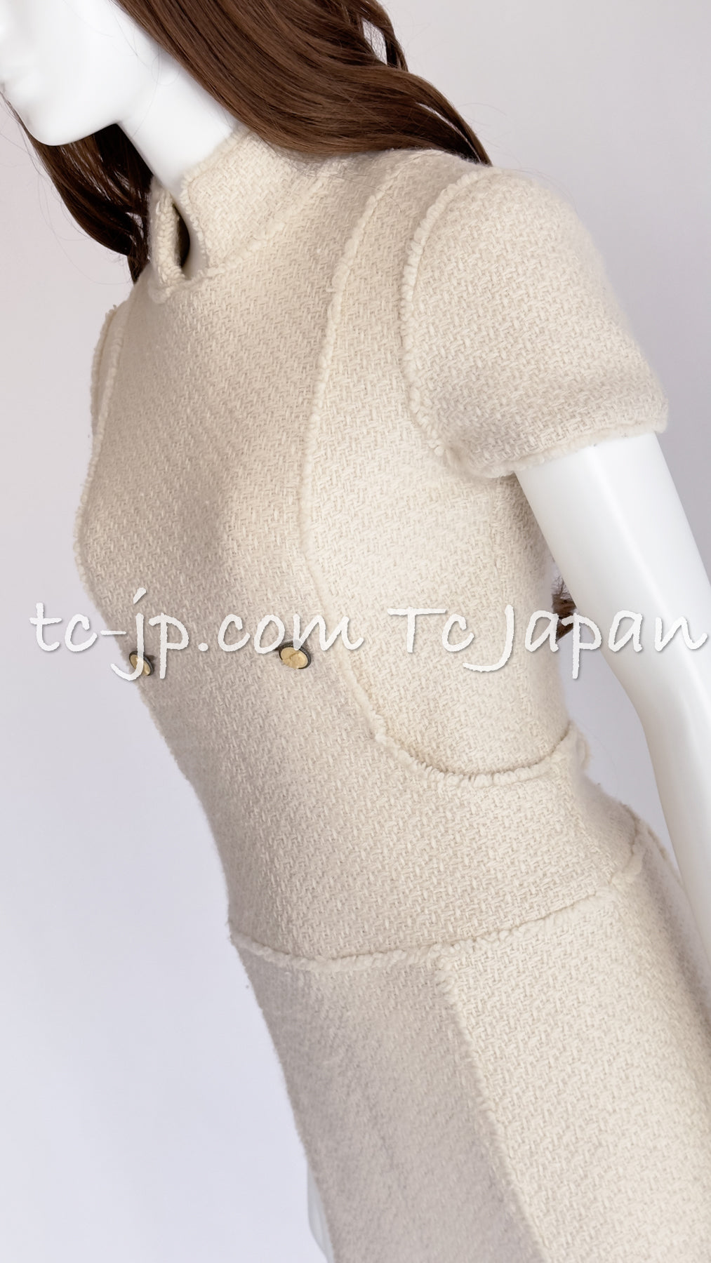CHANEL 04A Ivory Wool Angora Tweed Dress 36 シャネル アイボリー ウール アンゴラ ツイード ワンピース 即発
