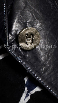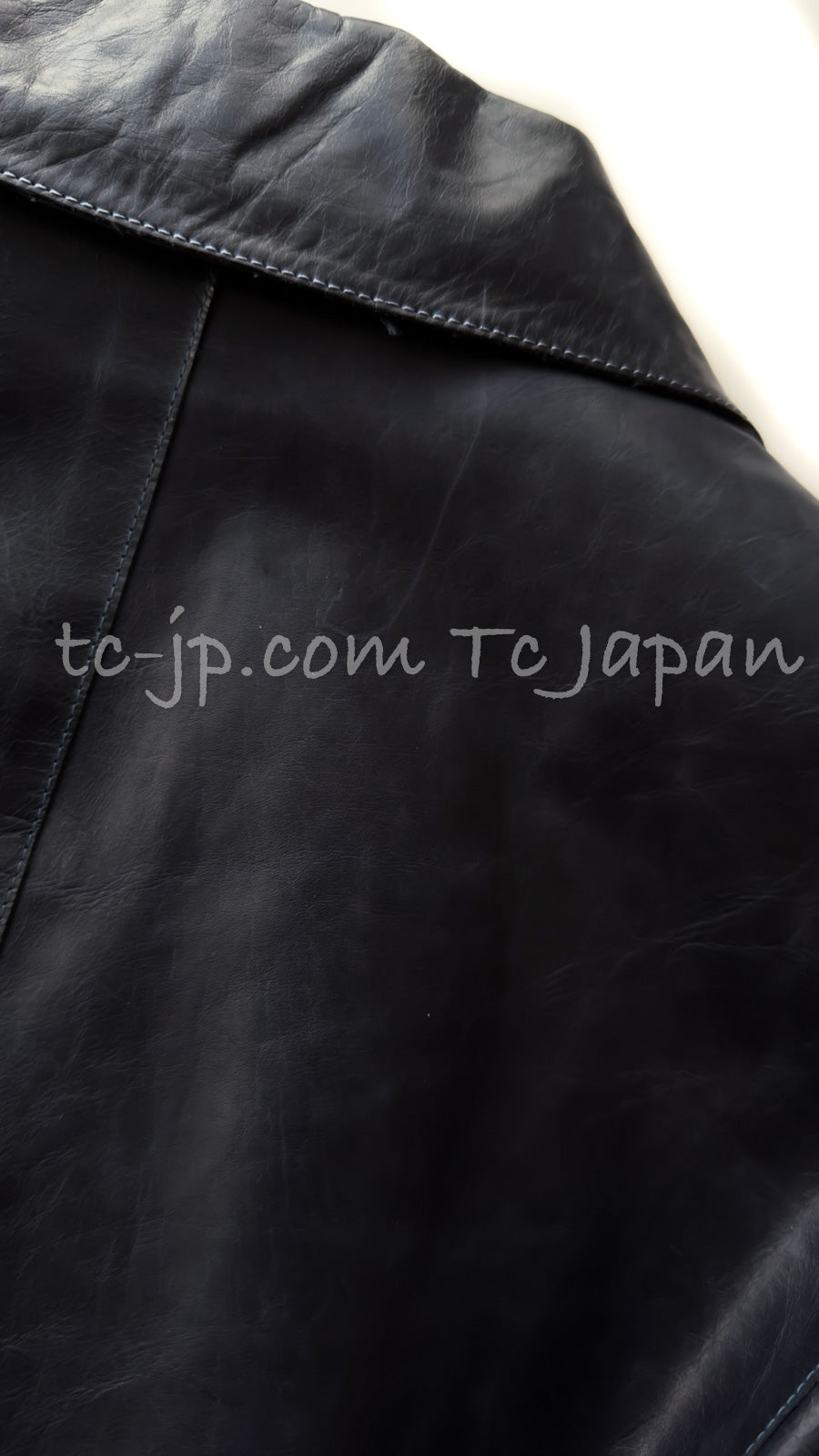CHANEL 06S Grey Navy Calf Leather Jacket 38 シャネル グレーネイビー カーフレザー ジャケット 即発