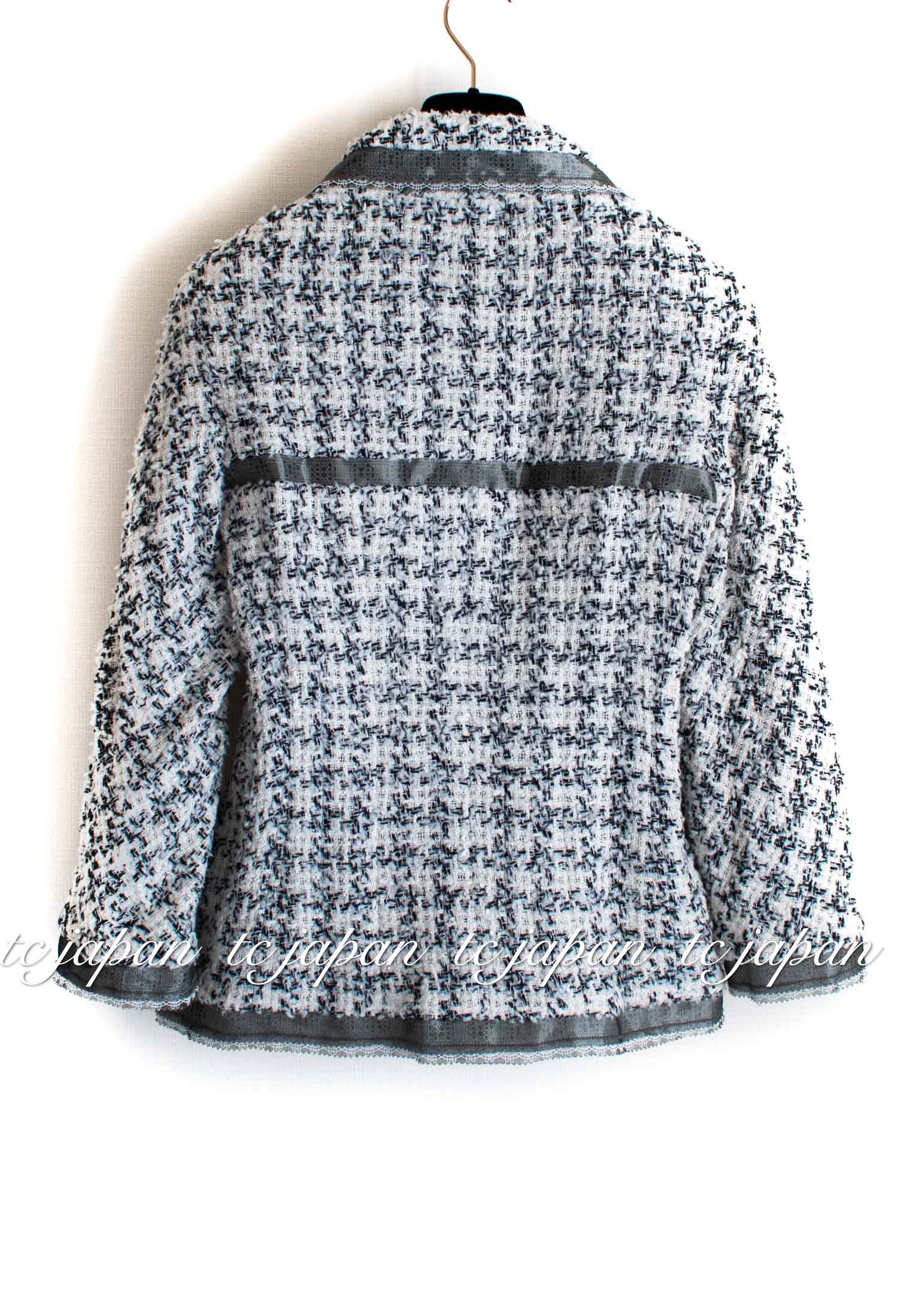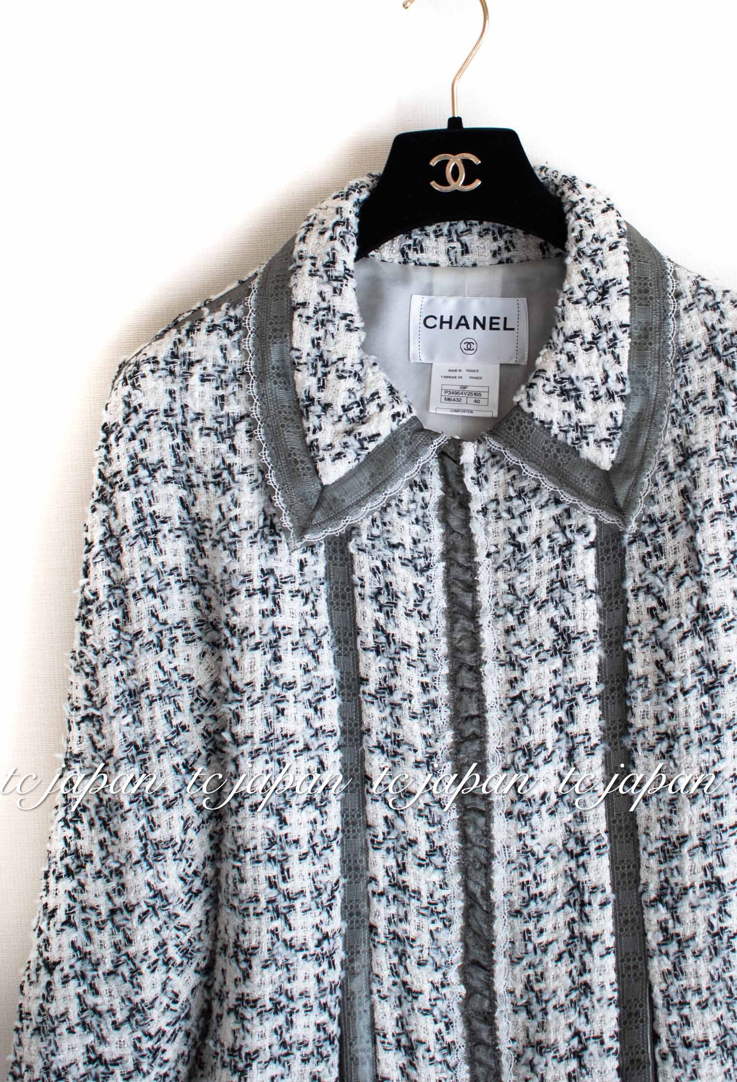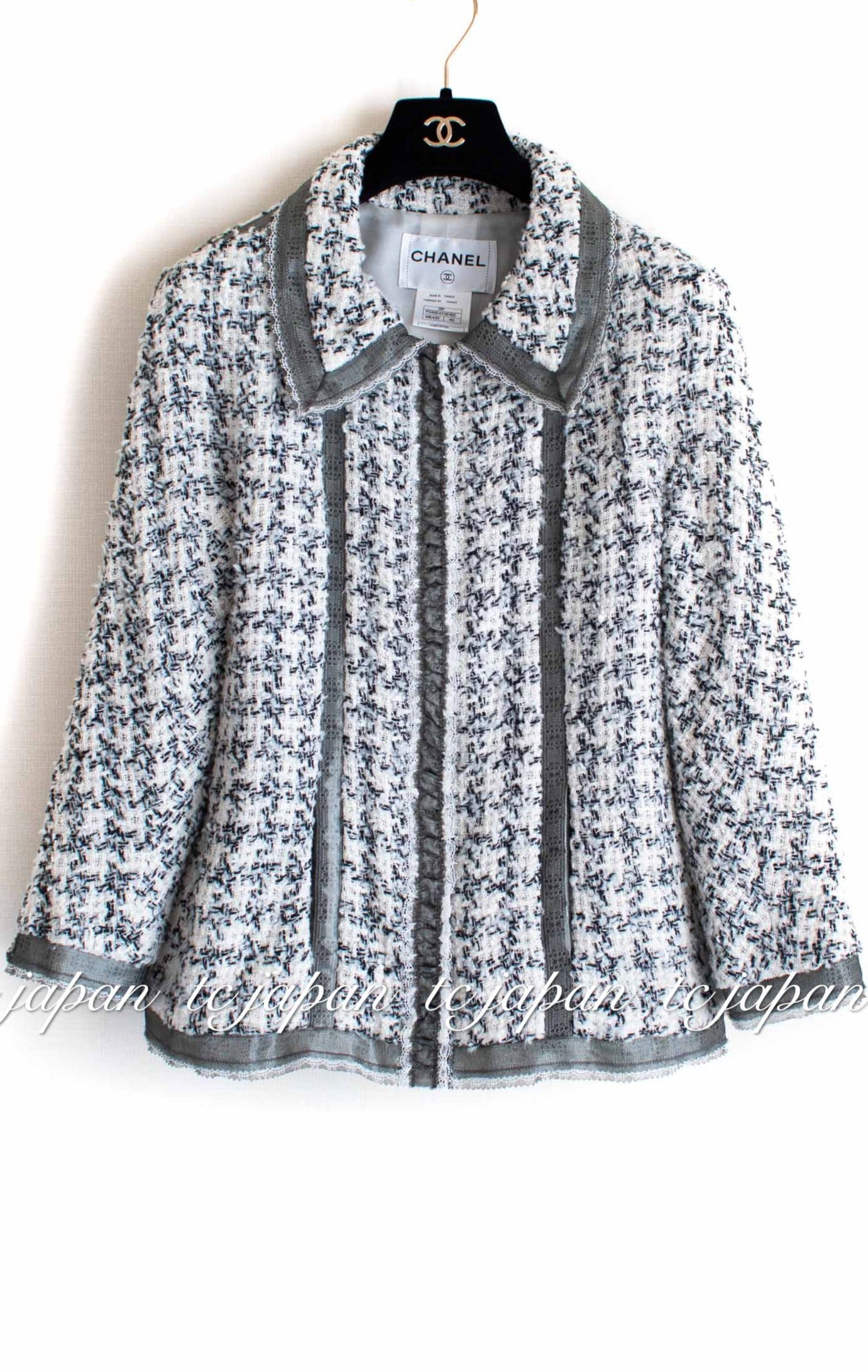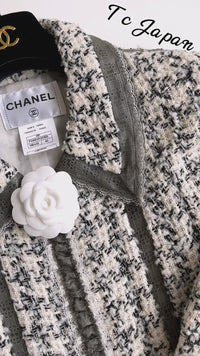 CHANEL 09S Silk tweed Zip Jacket 40 シャネル ・グレー・シルク ツイード ジップ アップ ジャケット 即発