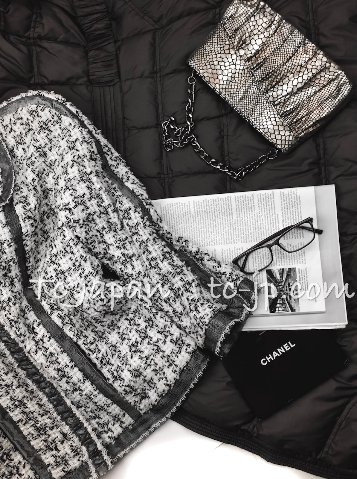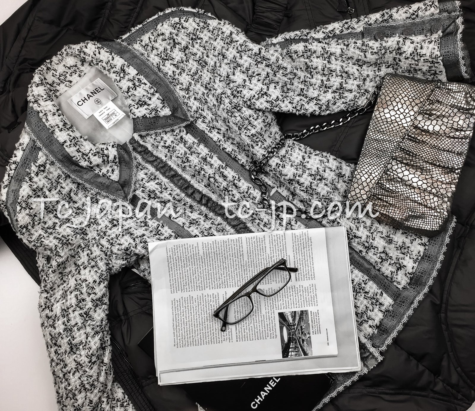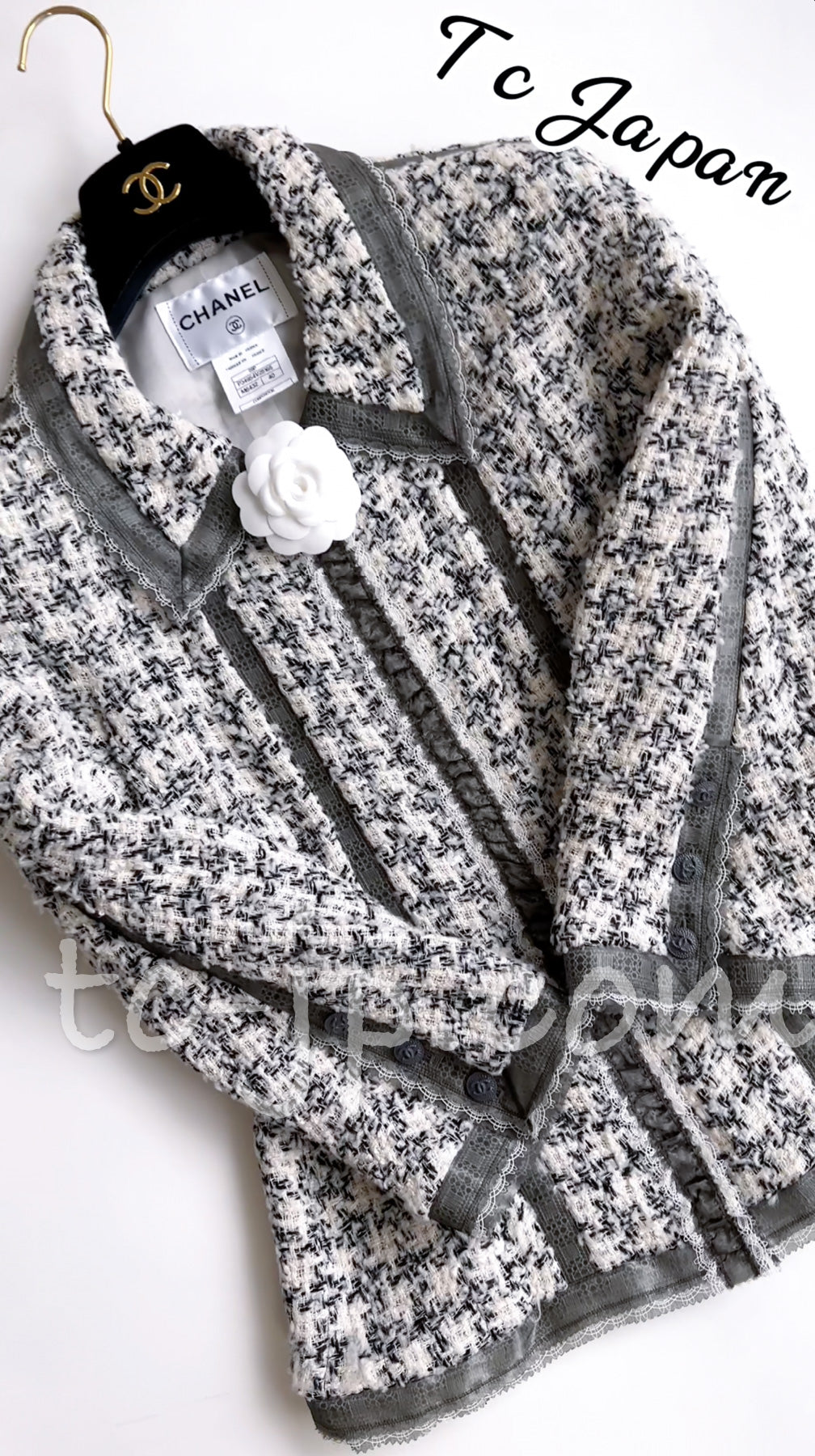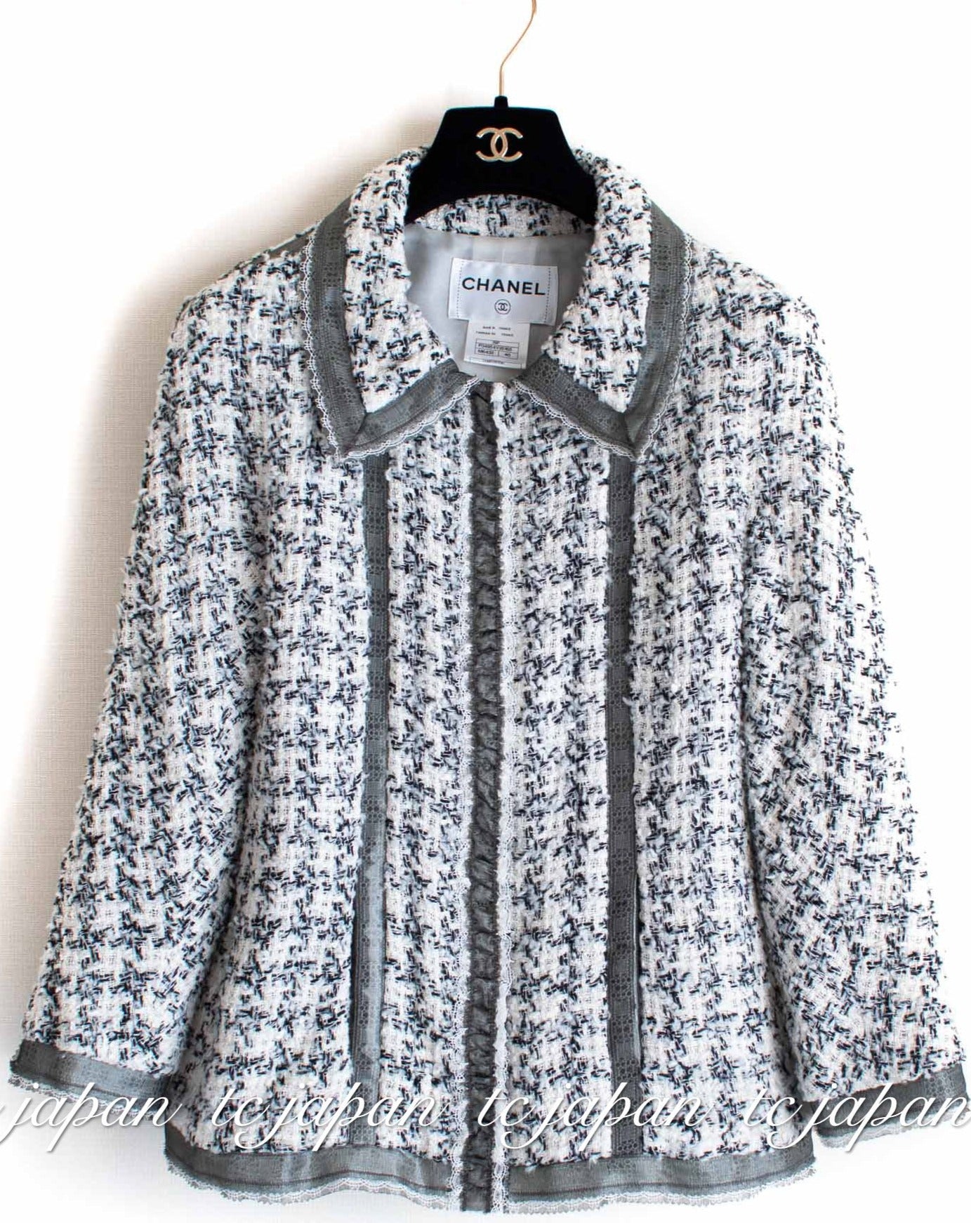 CHANEL 09S Silk tweed Zip Jacket 40 シャネル ・グレー・シルク ツイード ジップ アップ ジャケット 即発