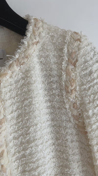 CHANEL 10C Ivory Creme Braid Trim Belt Tweed Jacket 42 シャネル アイボリー クリーム ブレイド トリム ベルト ツイード ジャケット 即発