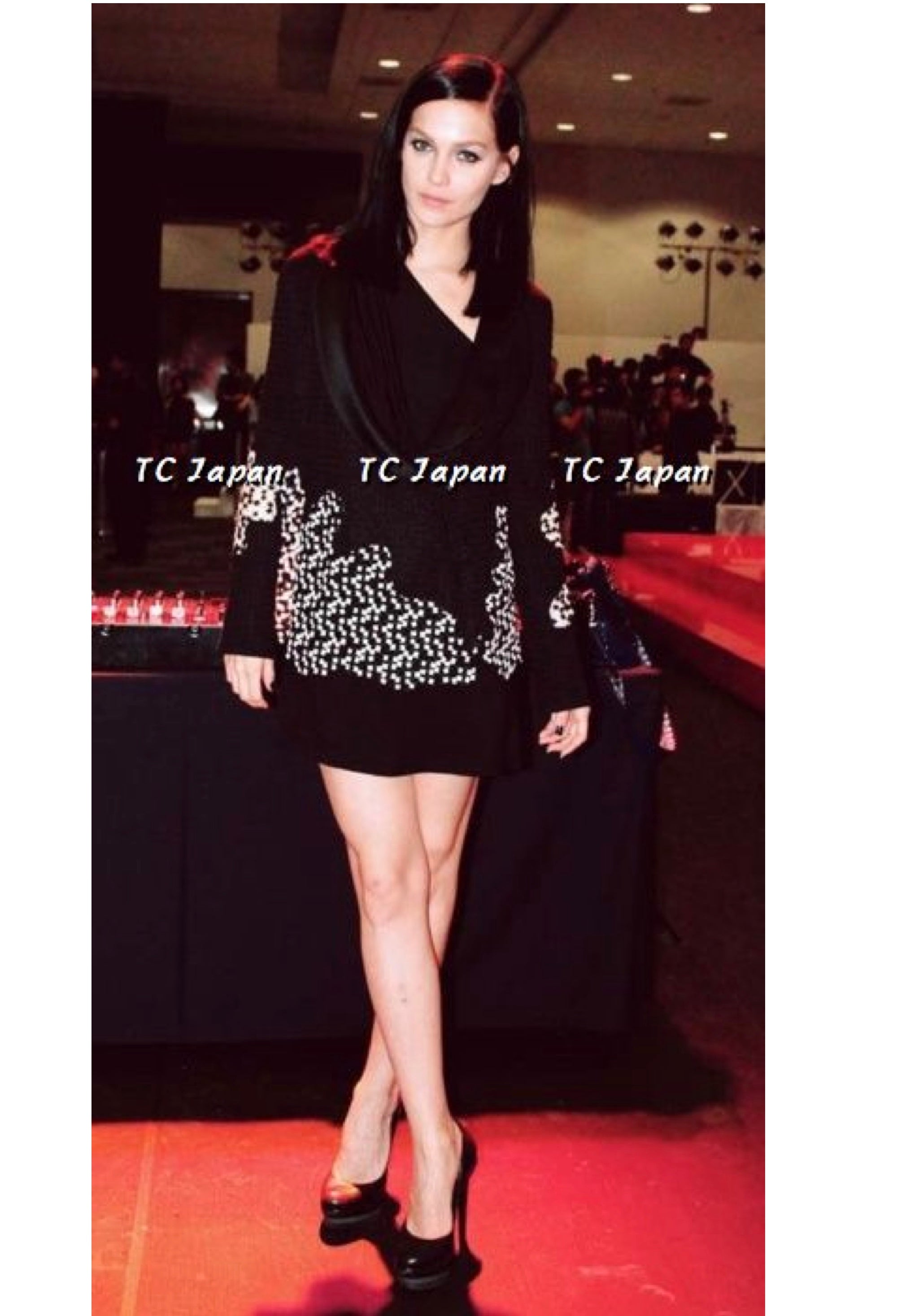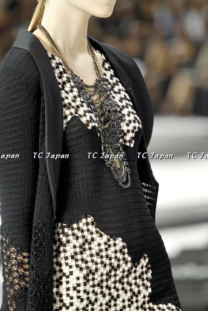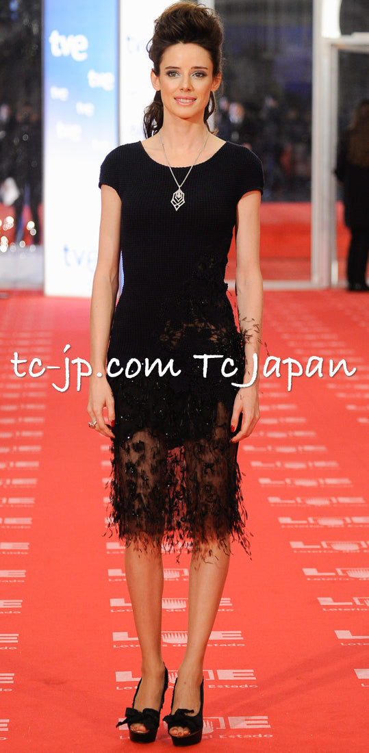 CHANEL 11S Cameron Diaz Black White Lace Cardigan Jacket Dress 38 シャネル ブラック ホワイト レース カーディガン ジャケット ワンピース 即発