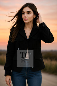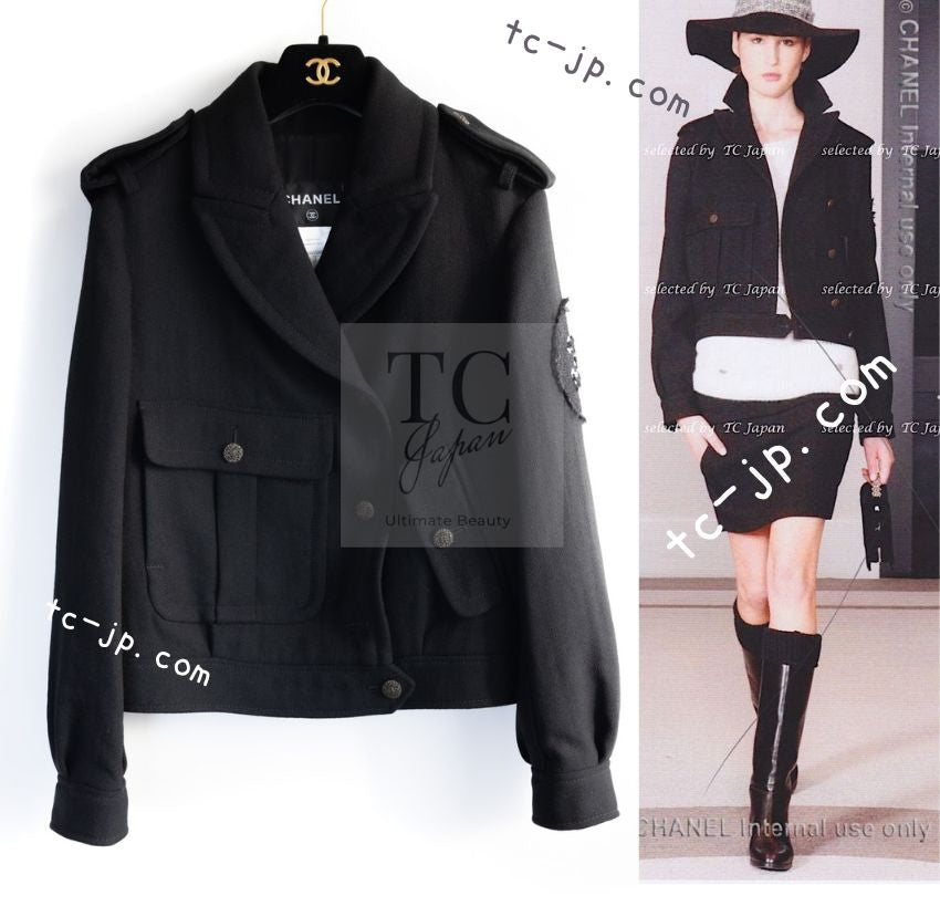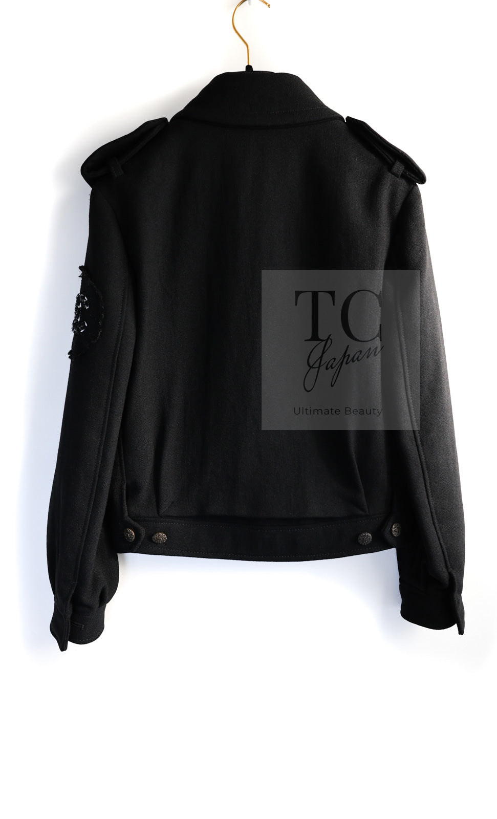 CHANEL 12A Black CC Logo Riders Blouson Coat Jacket 34 36 38 40 シャネル ブラック CC ロゴ ライダース ウール ブルゾン コート ジャケット 即発