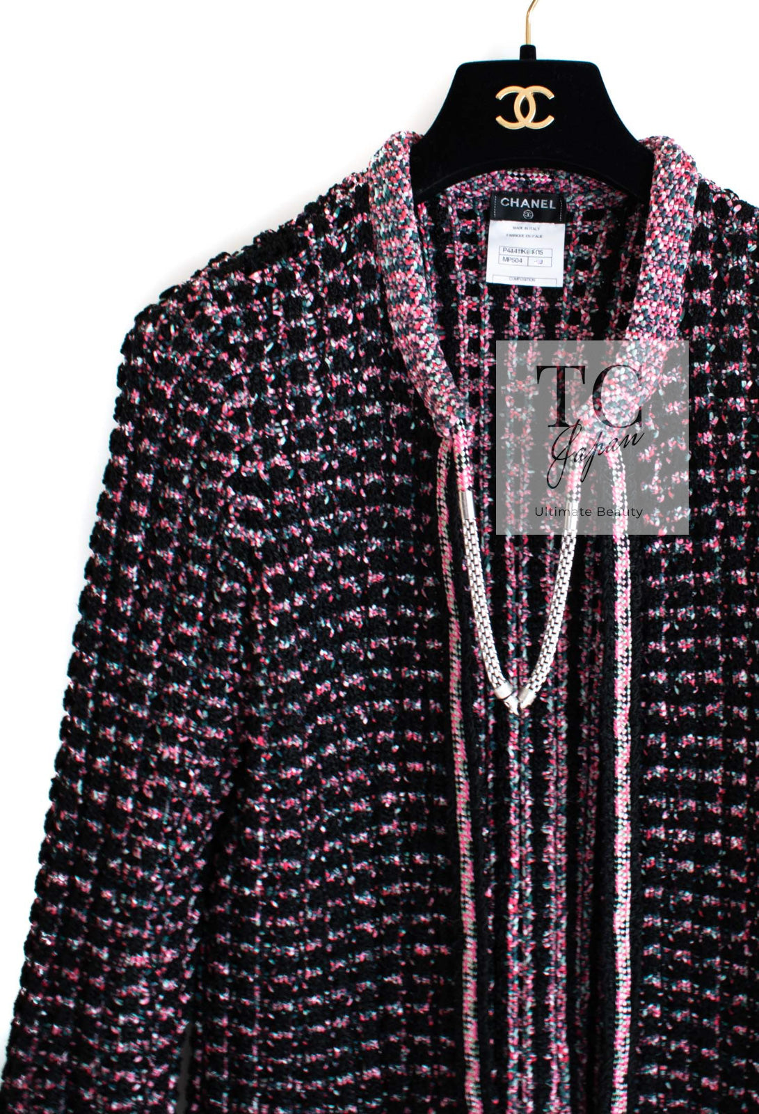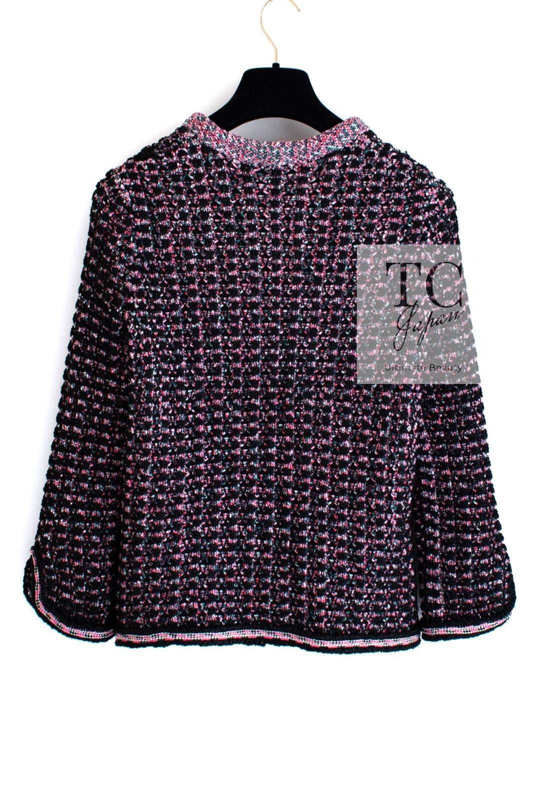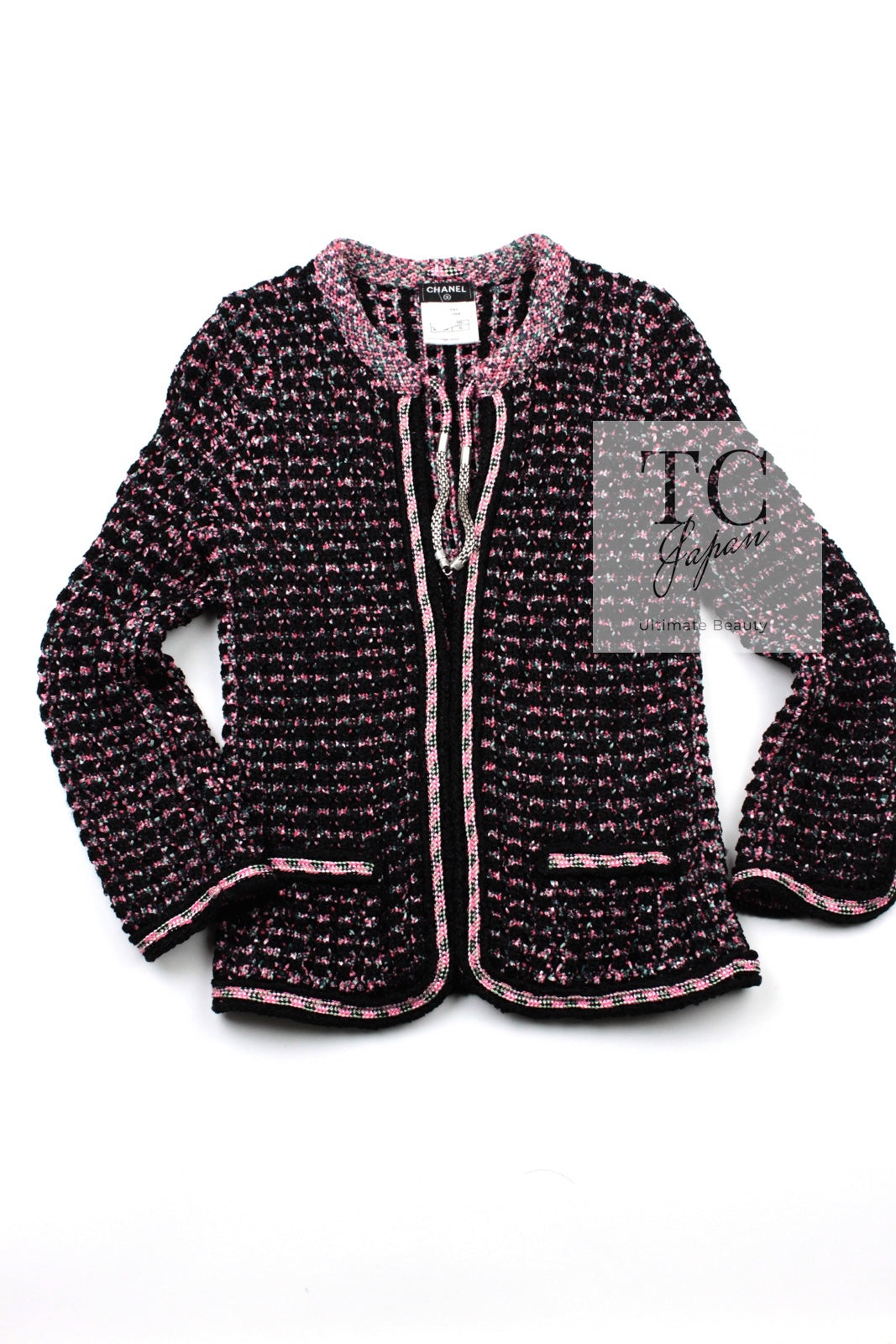 CHANEL 12S Pink Black Chain Cotton Knit Cardigan 36 38 シャネル ピンク ブラック チェーン コットン ニット カーディガン 即発