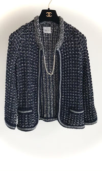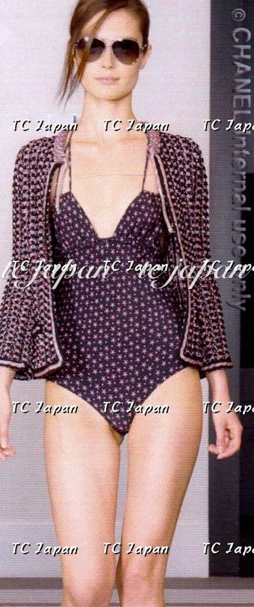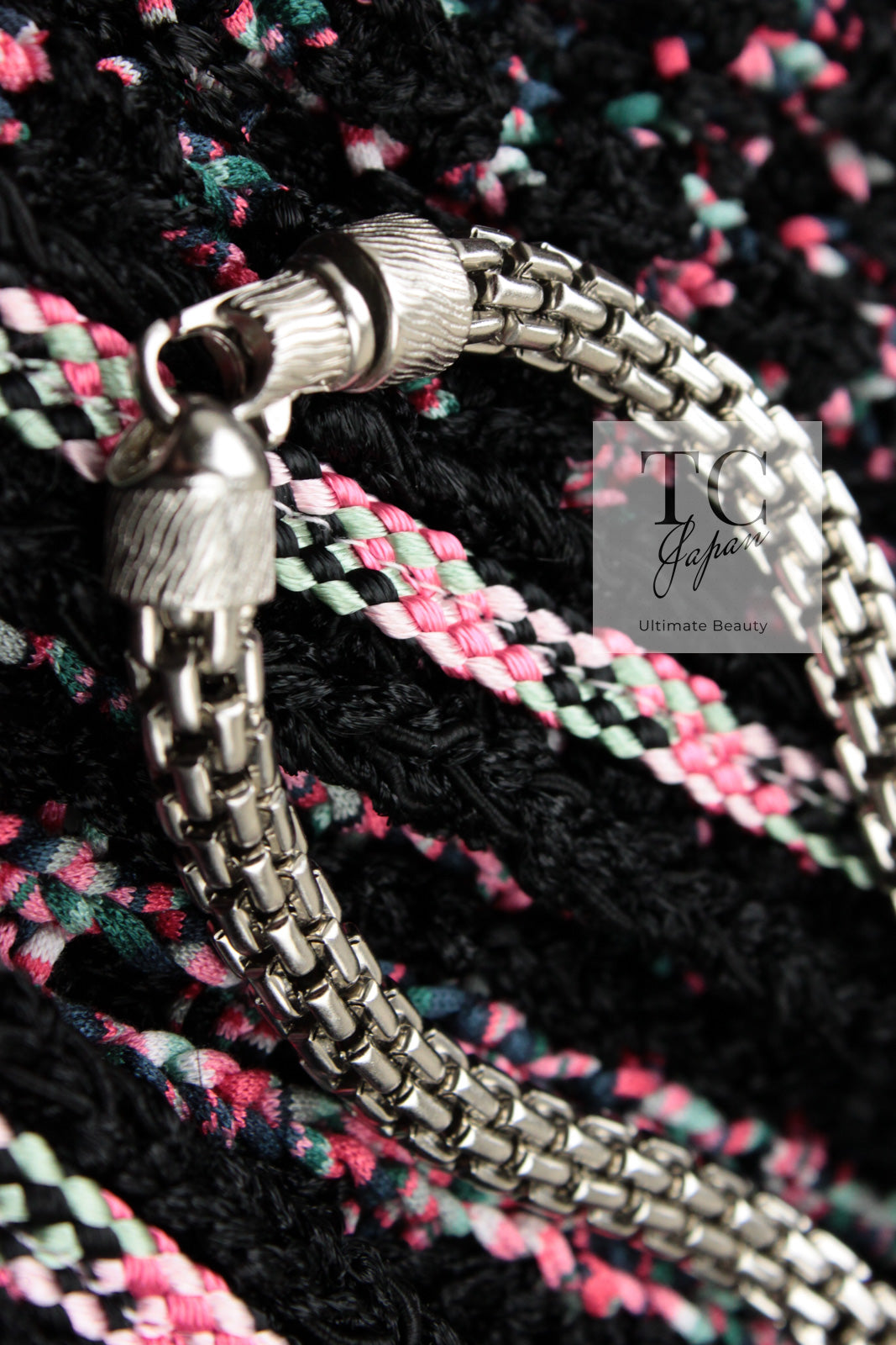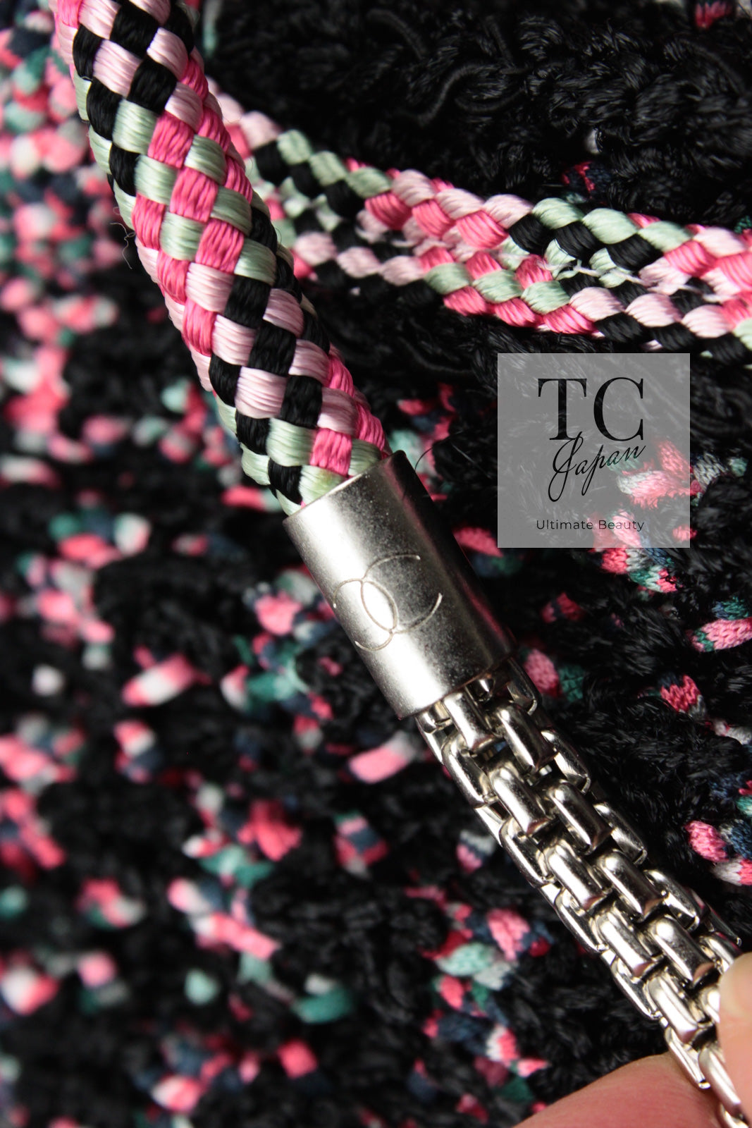 CHANEL 12S Pink Black Chain Cotton Knit Cardigan 36 38 シャネル ピンク ブラック チェーン コットン ニット カーディガン 即発