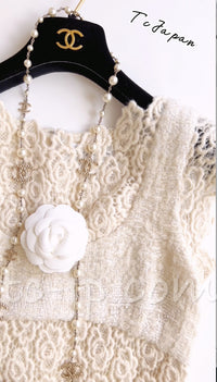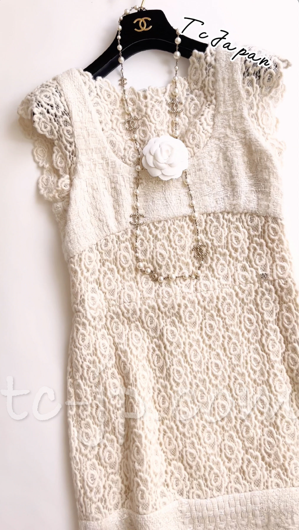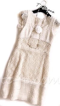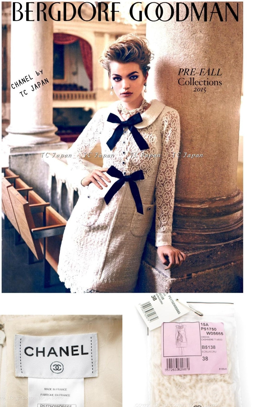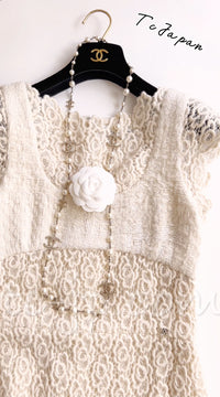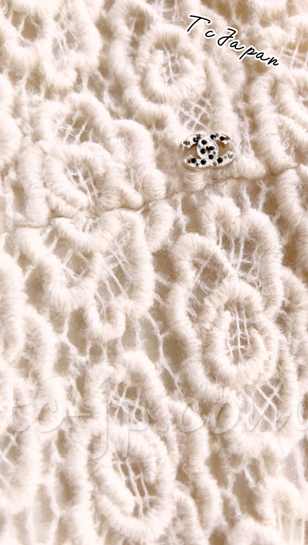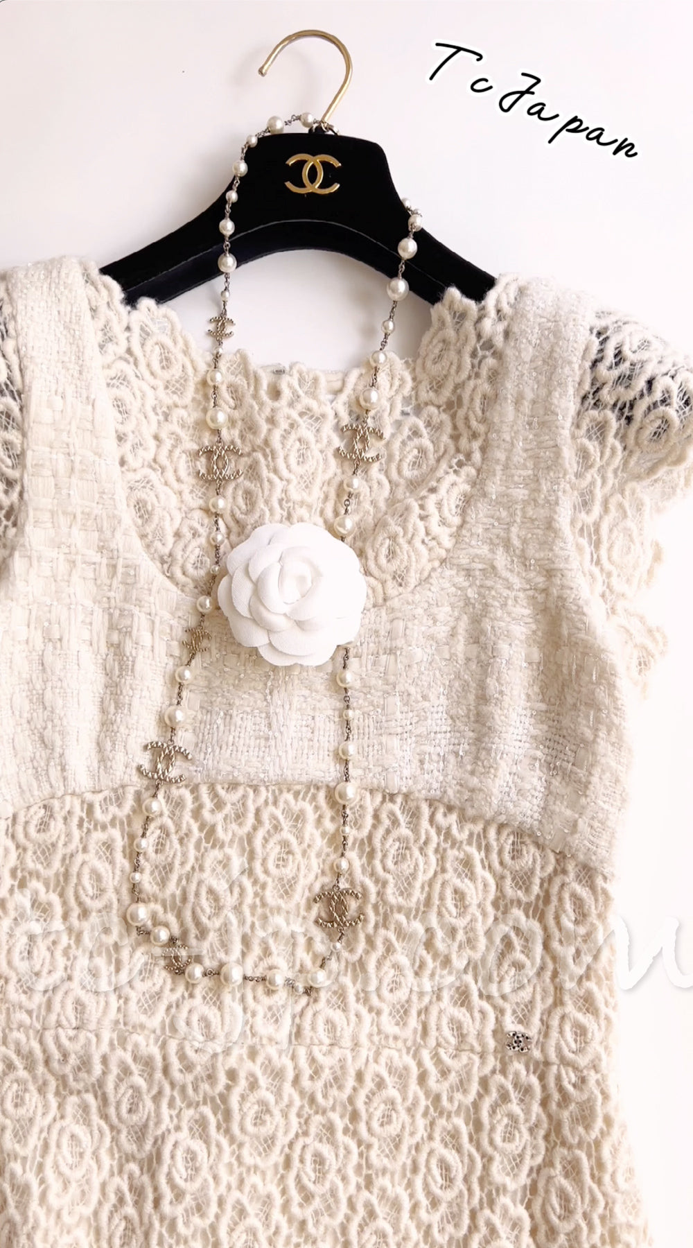 CHANEL 15PF Ivory Creme Cashmere Camellia Dress 38 42 シャネル アイボリー クリーム カシミヤ カメリア ワンピース 即発