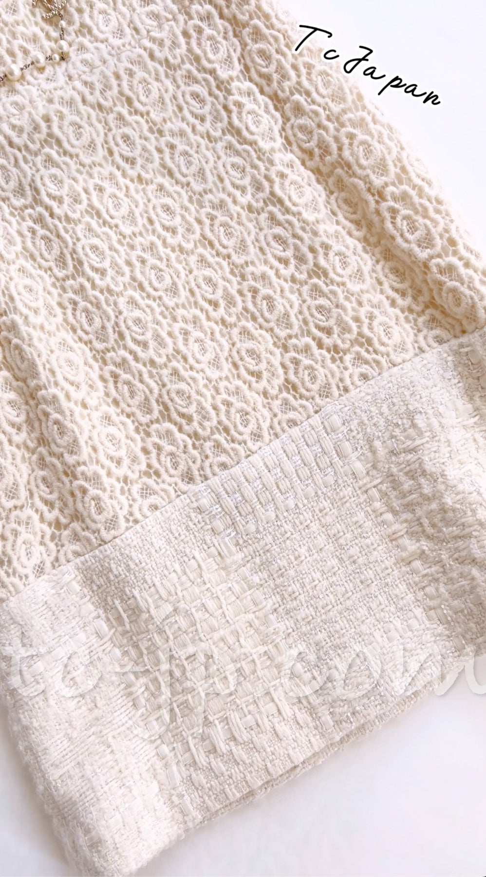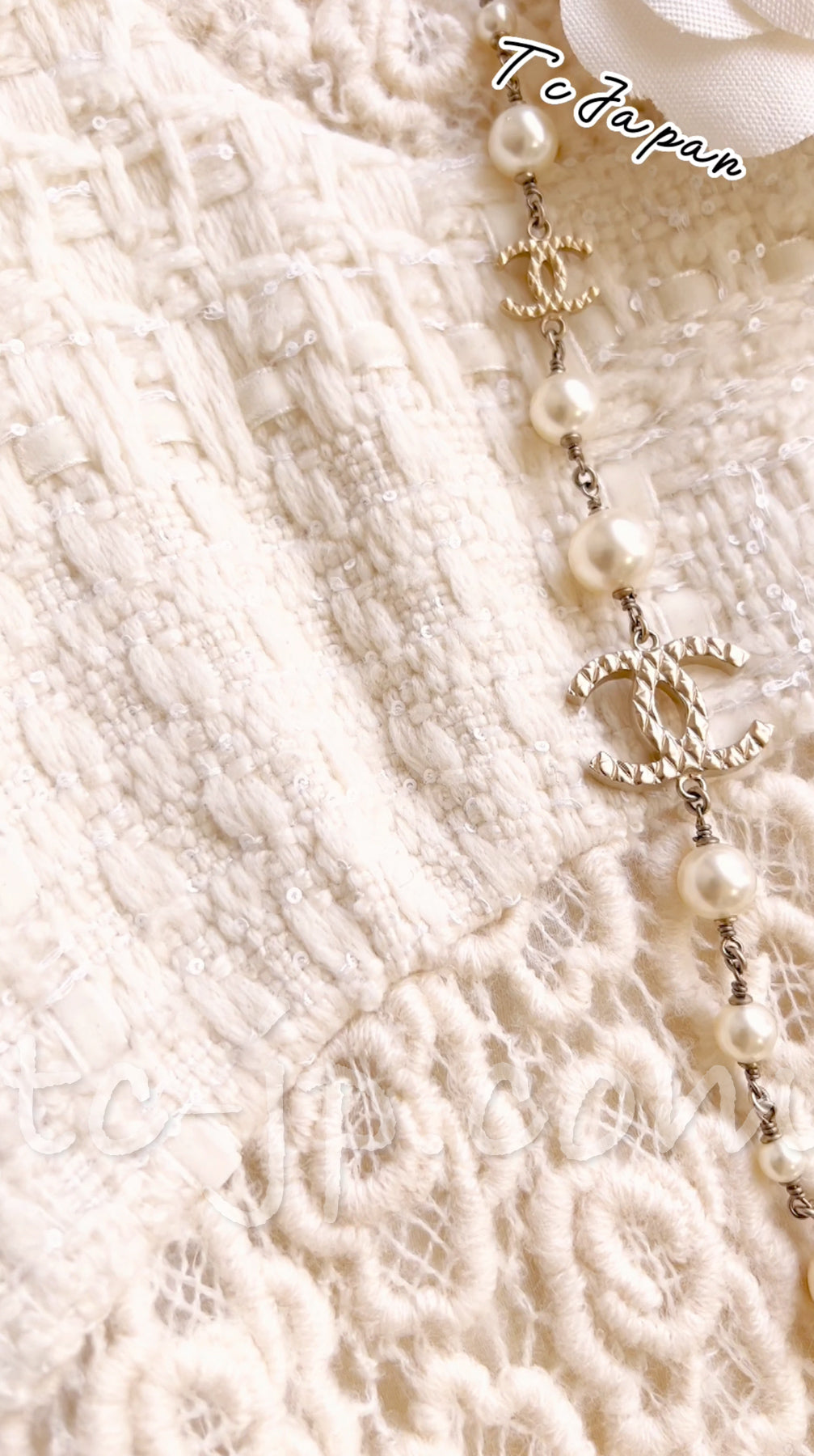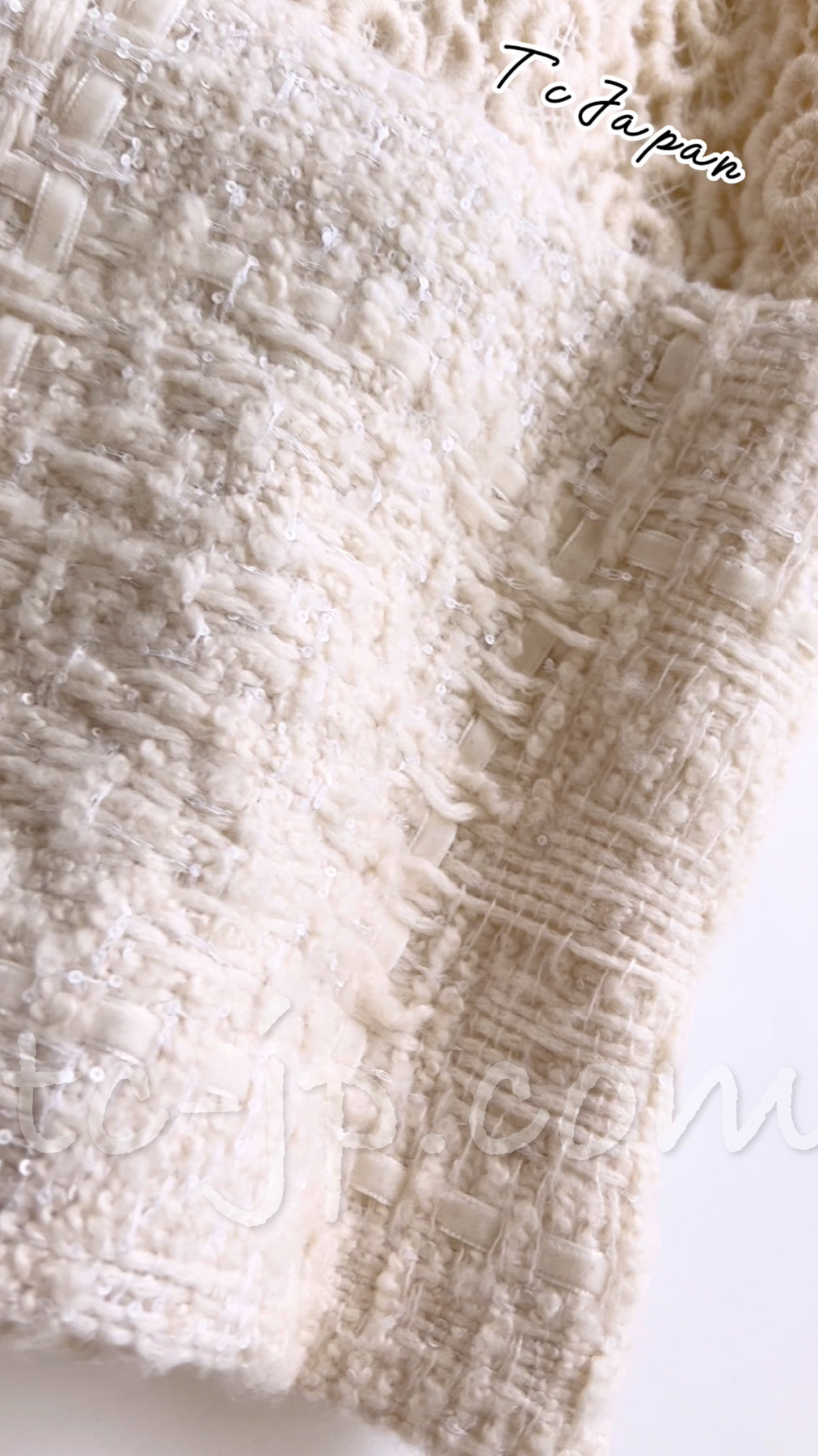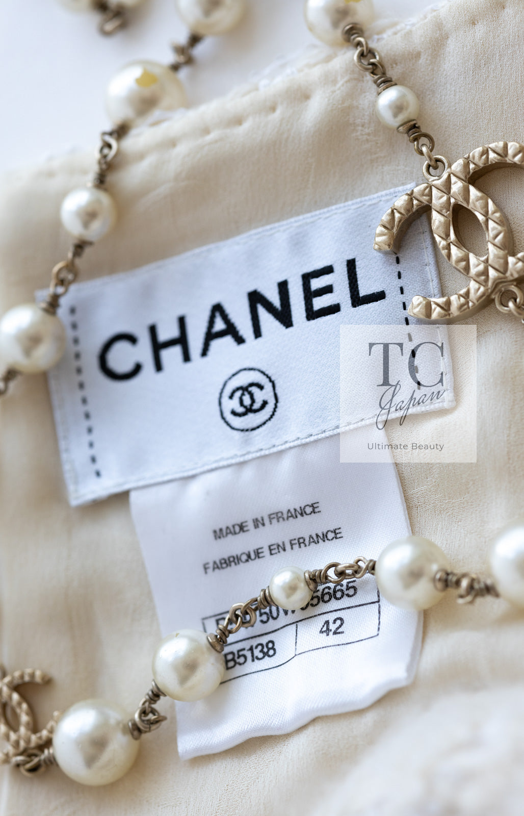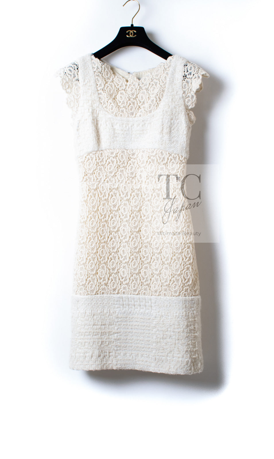 CHANEL 15PF Ivory Creme Cashmere Camellia Dress 38 42 シャネル アイボリー クリーム カシミヤ カメリア ワンピース 即発