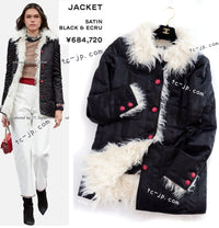 CHANEL 17B Black Silk Ivory Fantasy Fur Jacket Coat 48 シャネル ブラック シルク アイボリー ファー ジャケット コート 即発