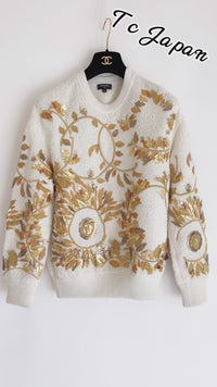 CHANEL 18C Ivory Gold Leaf Floral Knit Tops Sweater 36 38 シャネル シャネル アイボリー ゴールド リーフ フローラル 装飾 ニット トップス セーター 即発