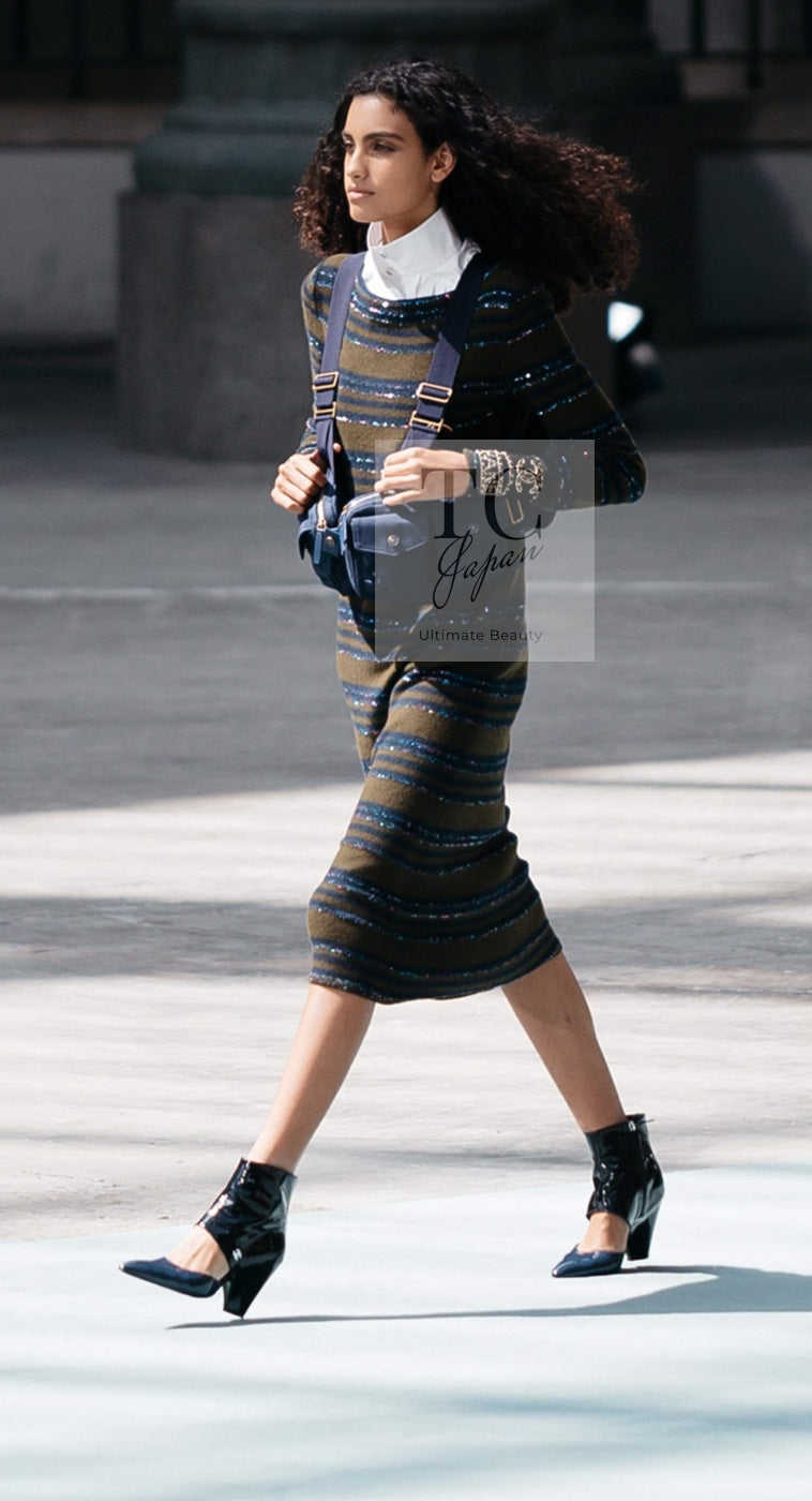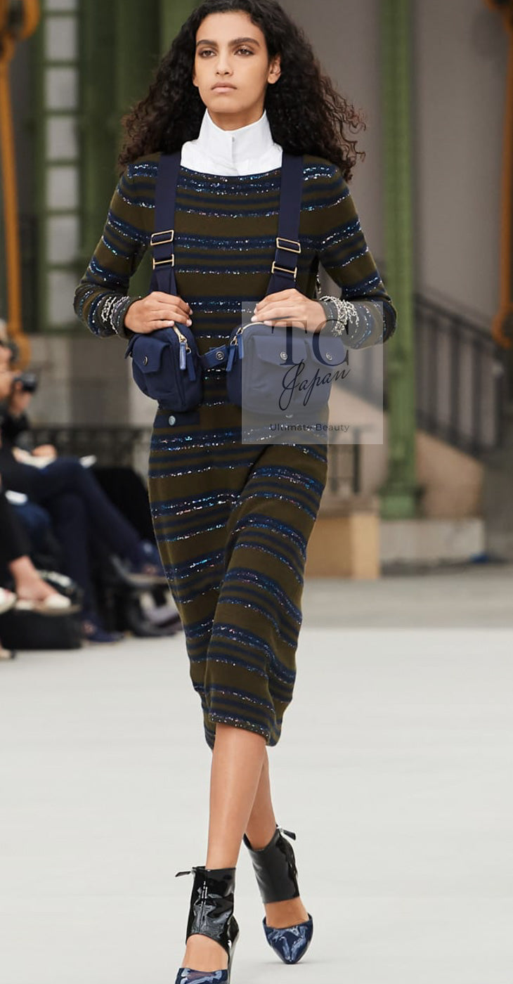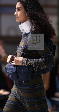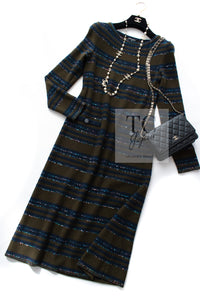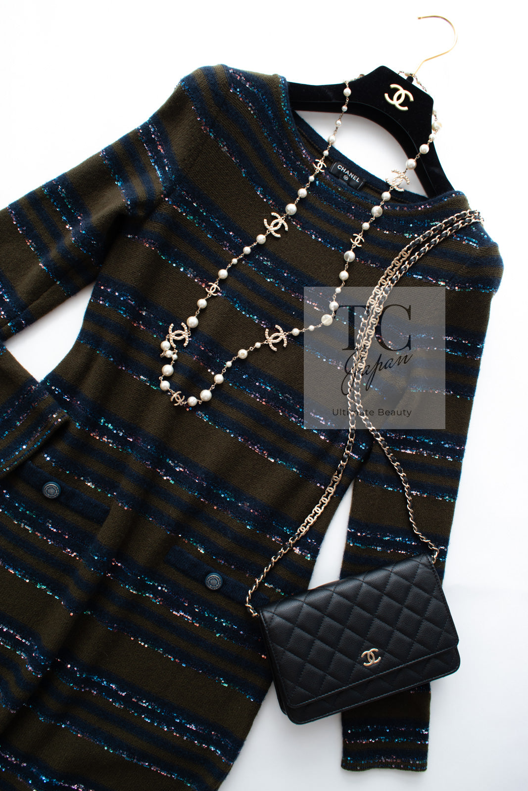 CHANEL 20C Olive Green Navy Striped Cashmere Knit Dress 36 シャネル オリーブ グリーン ネイビー ボーダー カシミア ニット ワンピース 即発