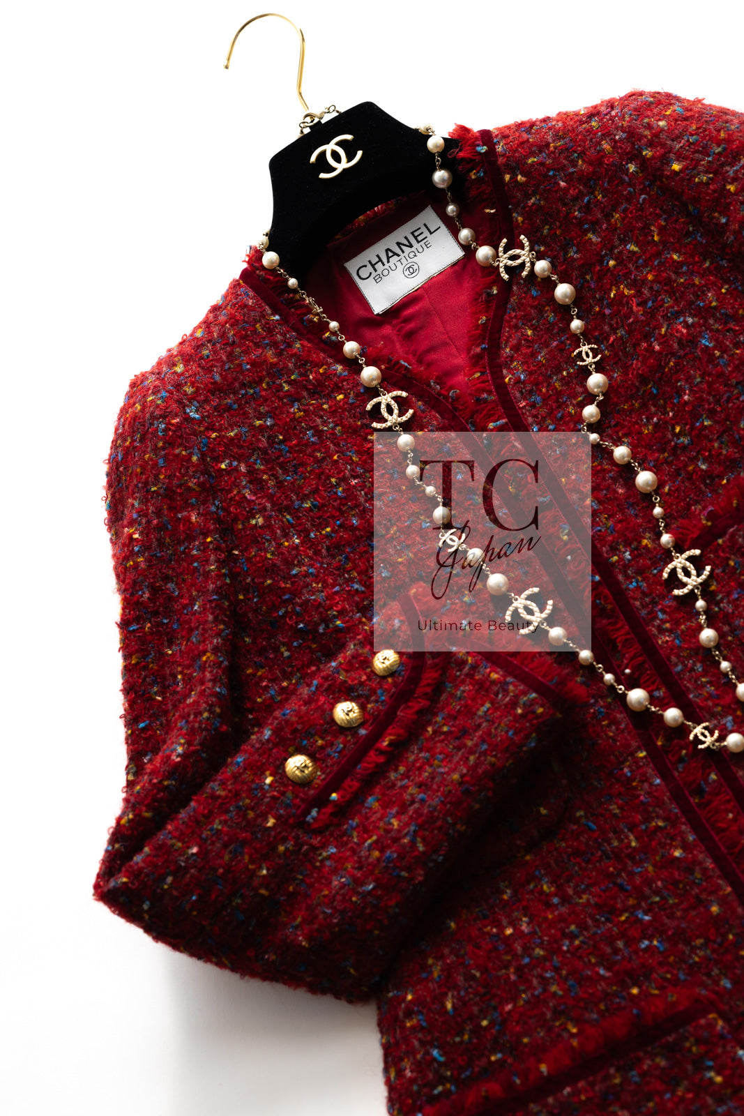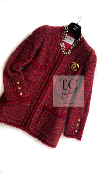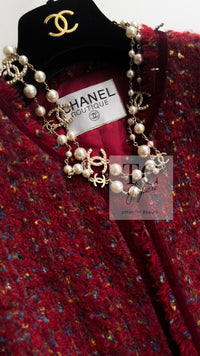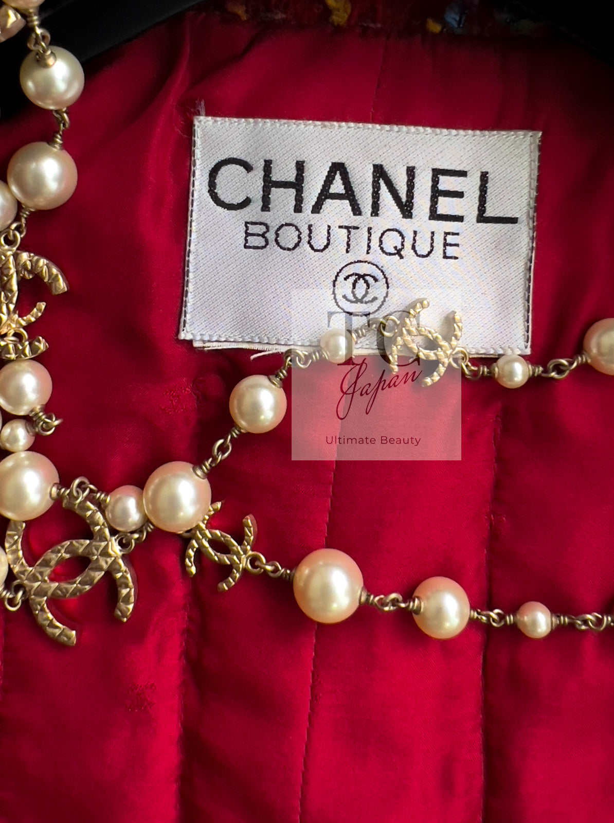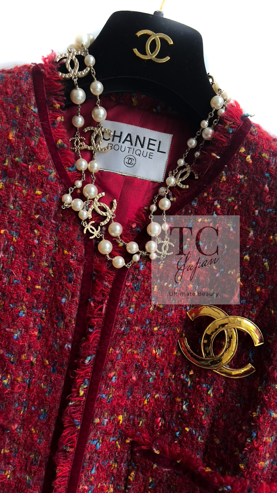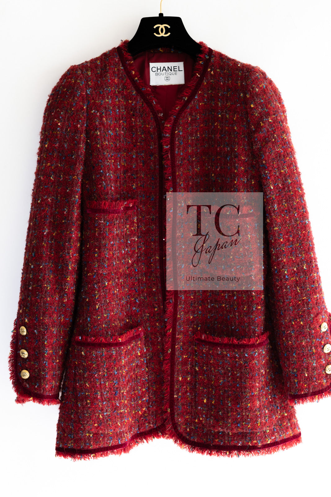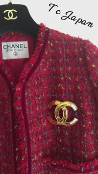 CHANEL 90A Vintage Red Wool Mohair Gold CC Button Jacket Coat 40 42 シャネル ヴィンテージ レッド ウール モヘア ゴールド ココボタン ジャケット コート 即発