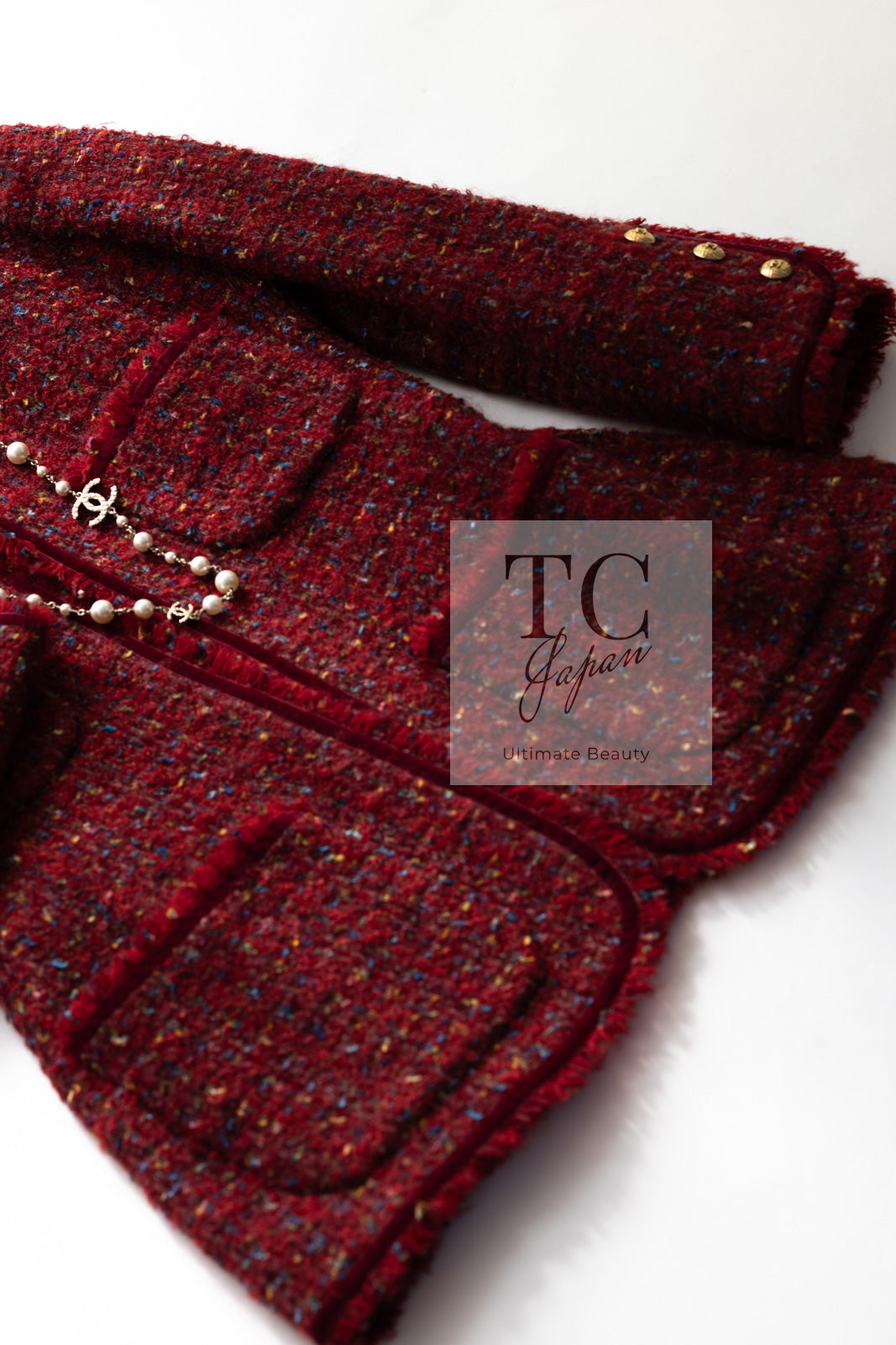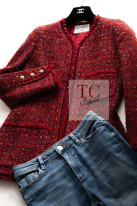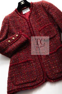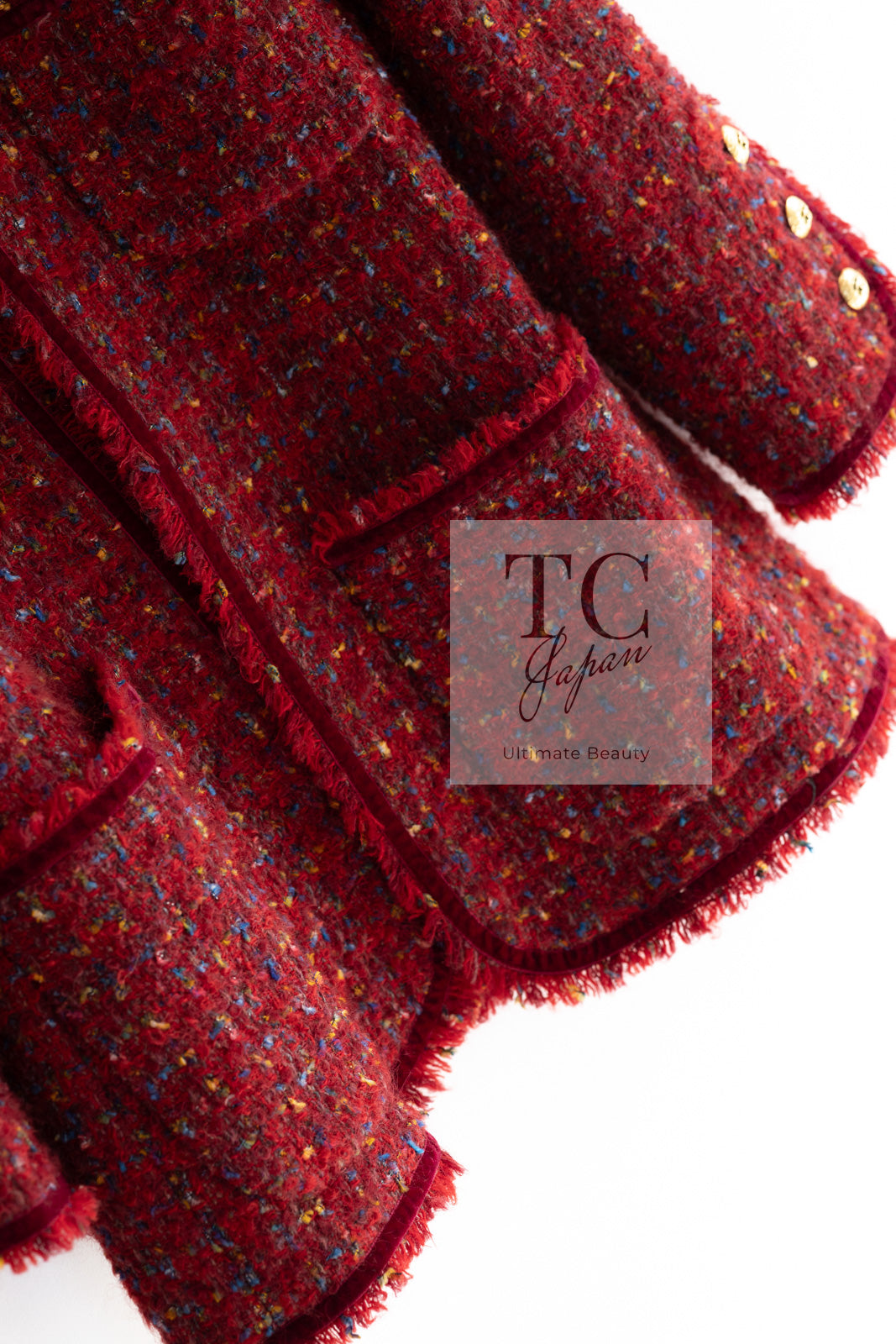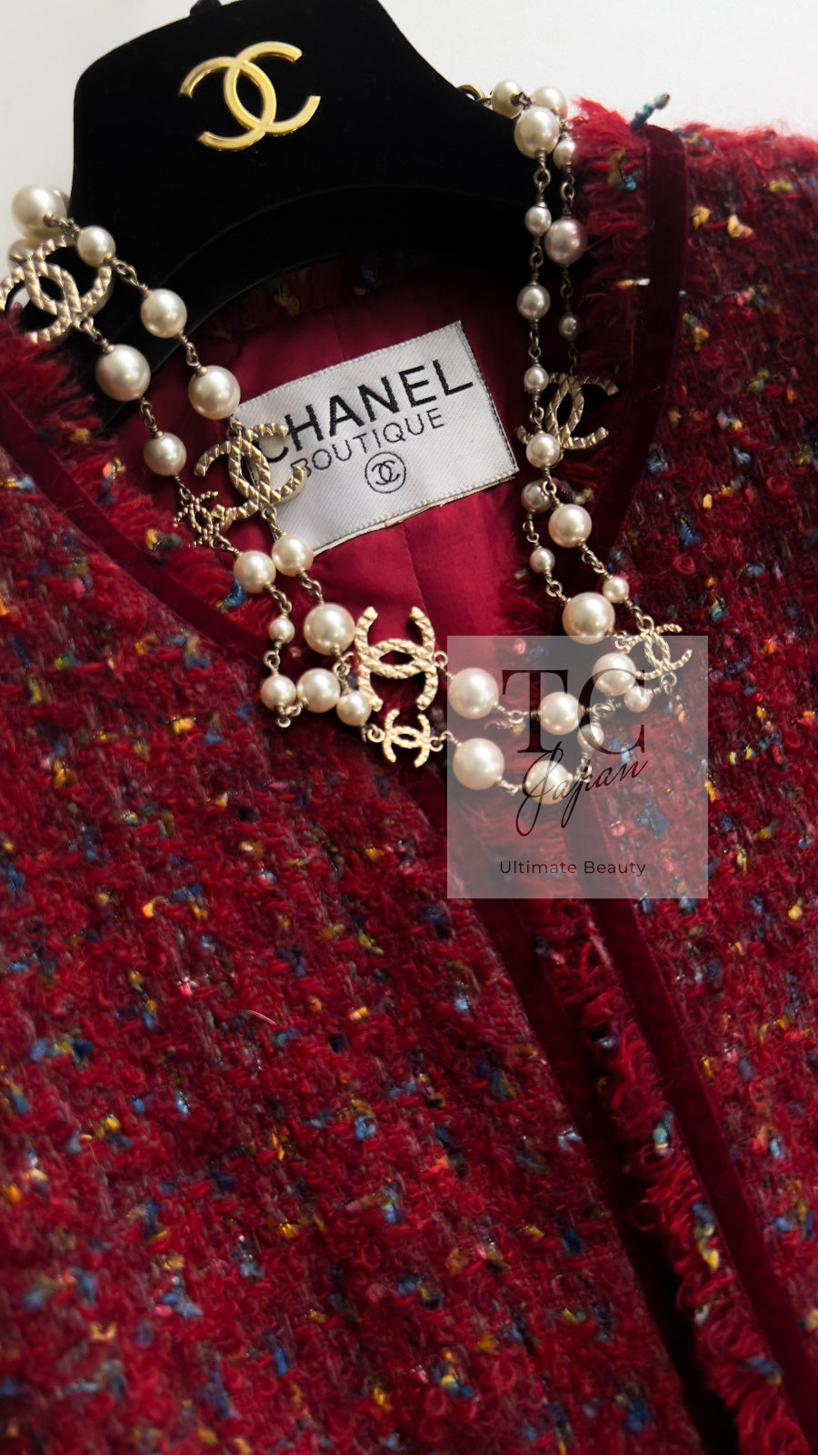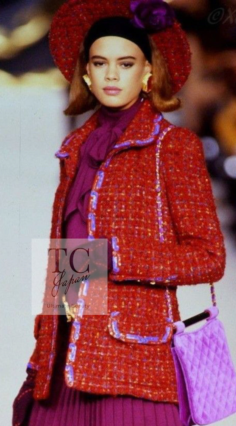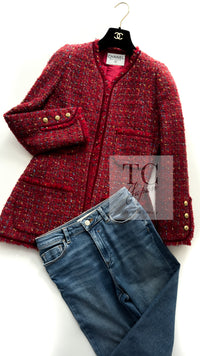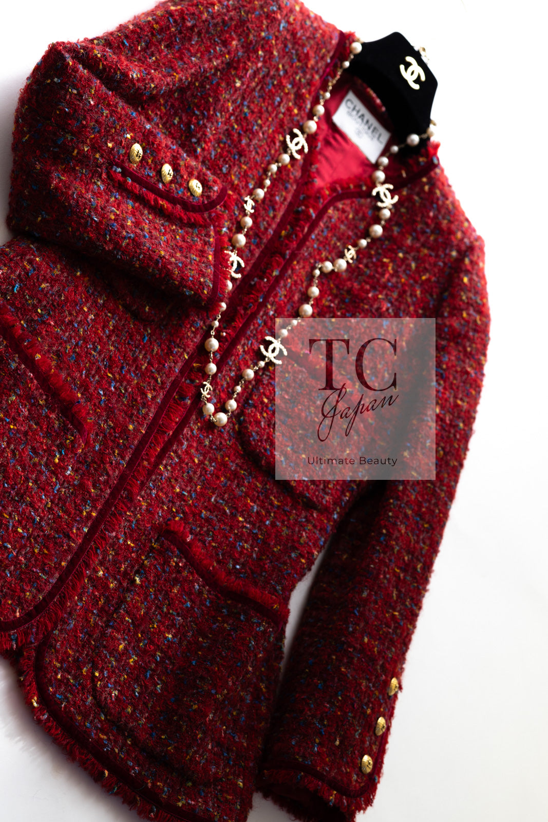 CHANEL 90A Vintage Red Wool Mohair Gold CC Button Jacket Coat 40 42 シャネル ヴィンテージ レッド ウール モヘア ゴールド ココボタン ジャケット コート 即発