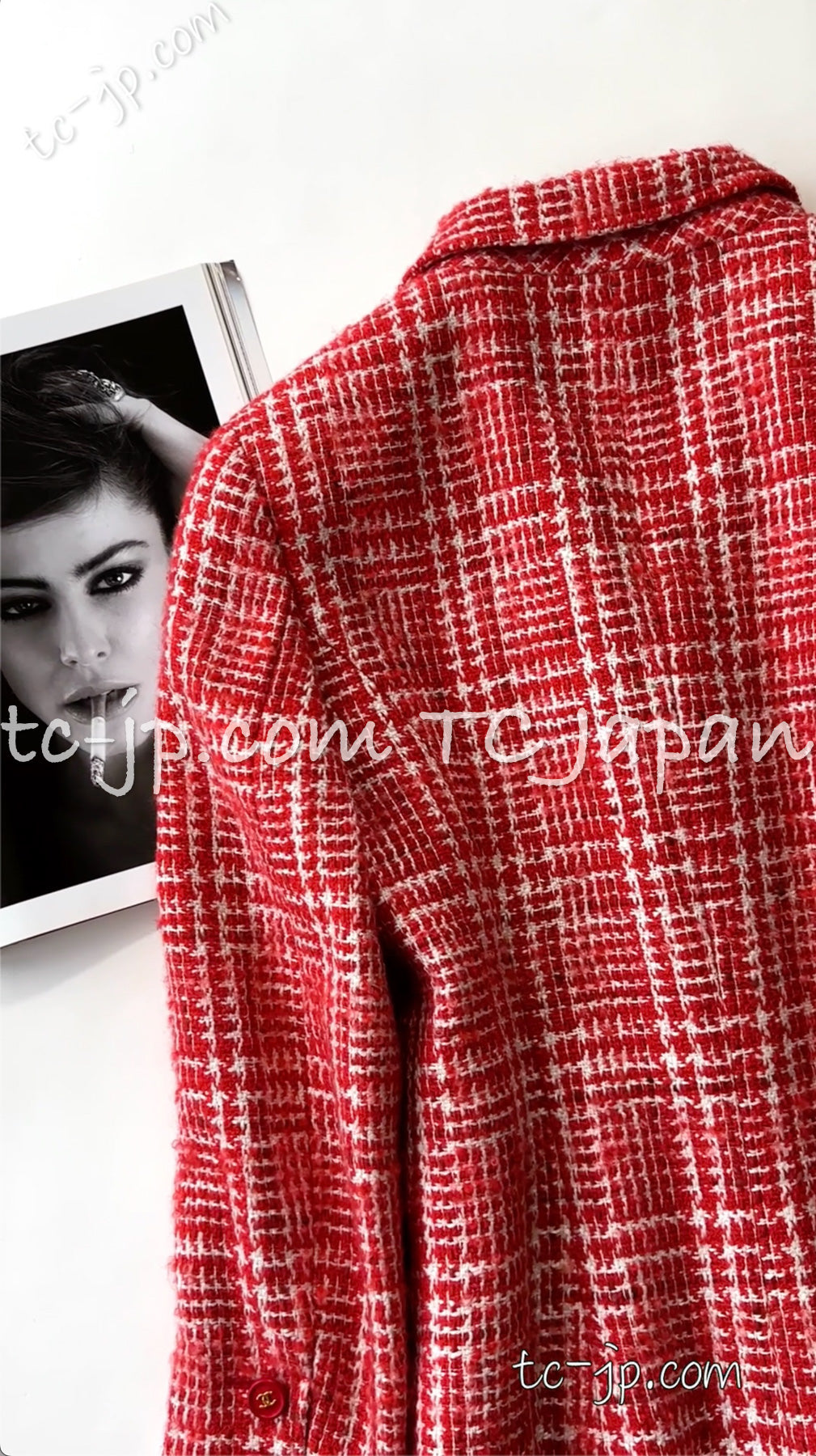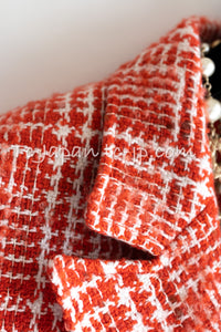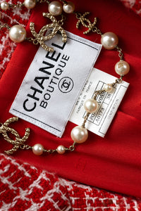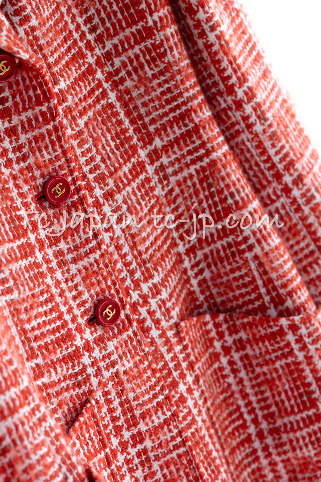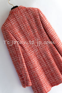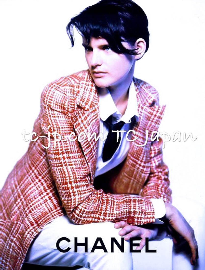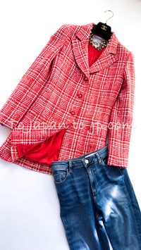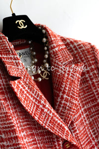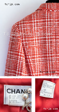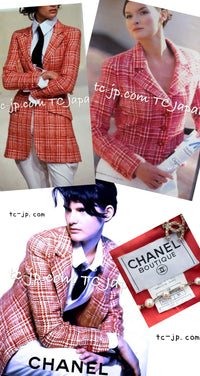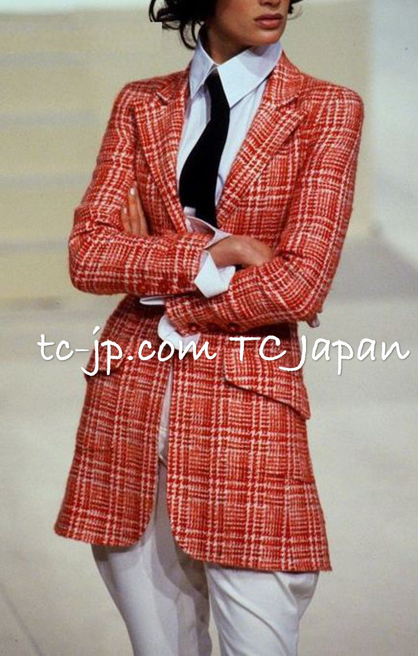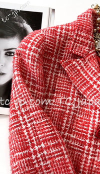 CHANEL 97S Vintage Red White Checked Wool Mohair Tweed Coat Jacket 36 38 シャネル ヴィンテージ レッド ホワイト ウール プードル モヘア ツイード コート ジャケット 即発