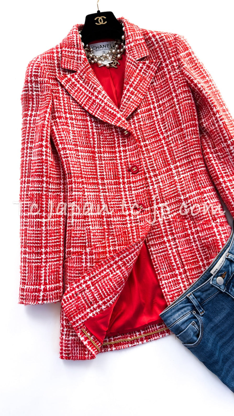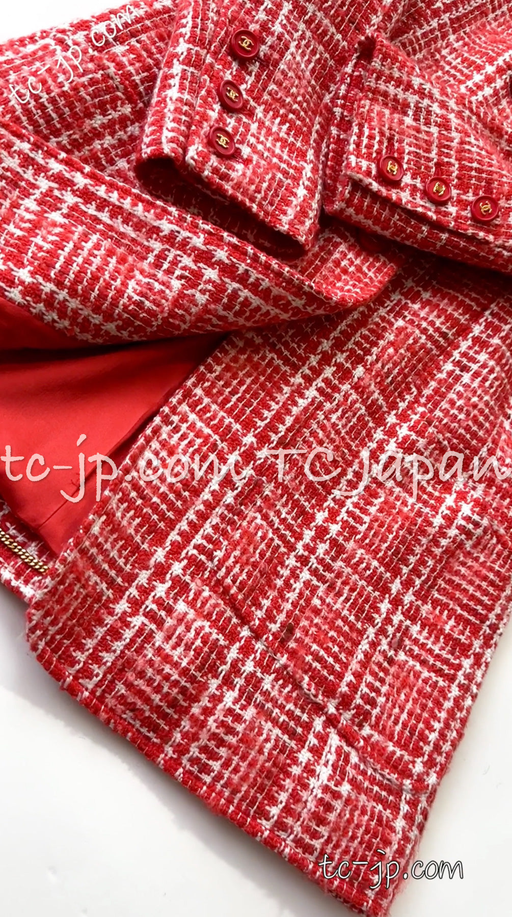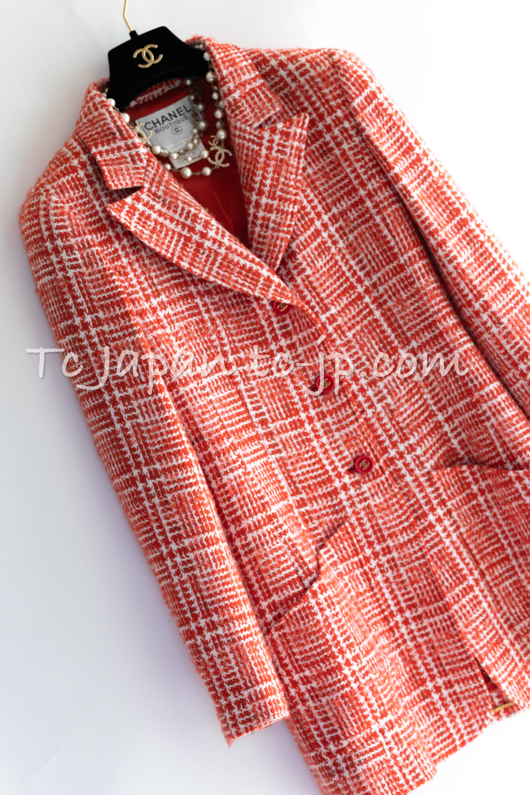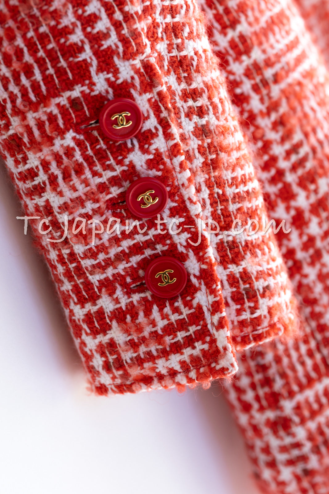 CHANEL 97S Vintage Red White Checked Wool Mohair Tweed Coat Jacket 36 38 シャネル ヴィンテージ レッド ホワイト ウール プードル モヘア ツイード コート ジャケット 即発