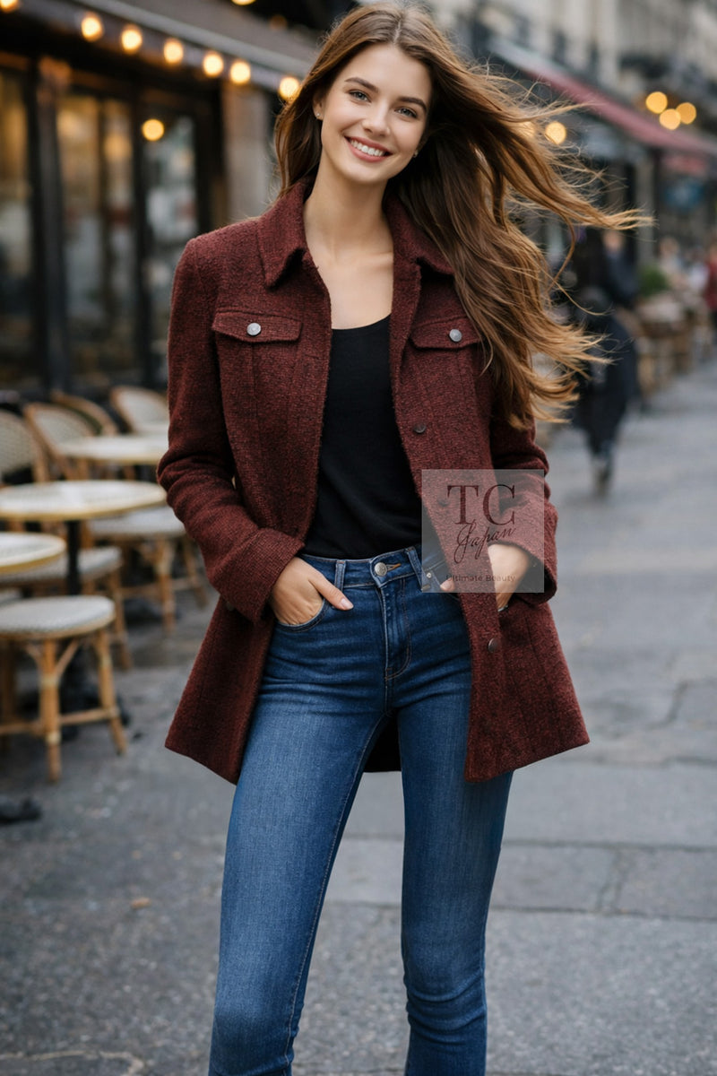 CHANEL 97A Vintage Choco Brown Wool Tweed Jacket 36 38 シャネル ヴィンテージ チョコ ブラウン ウール ツイード ジャケット 即発