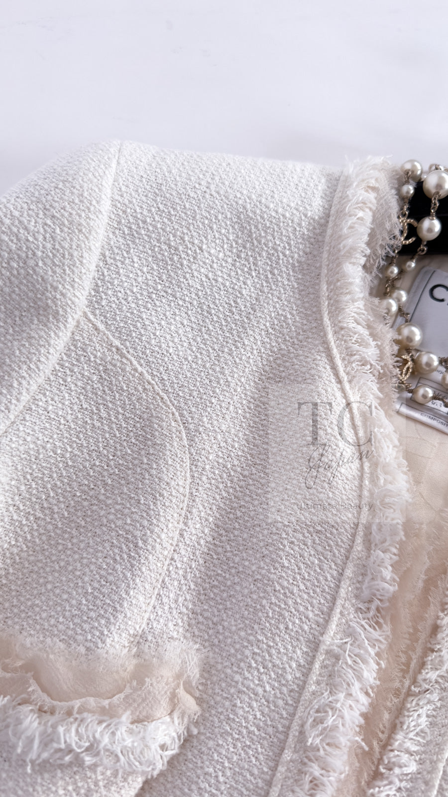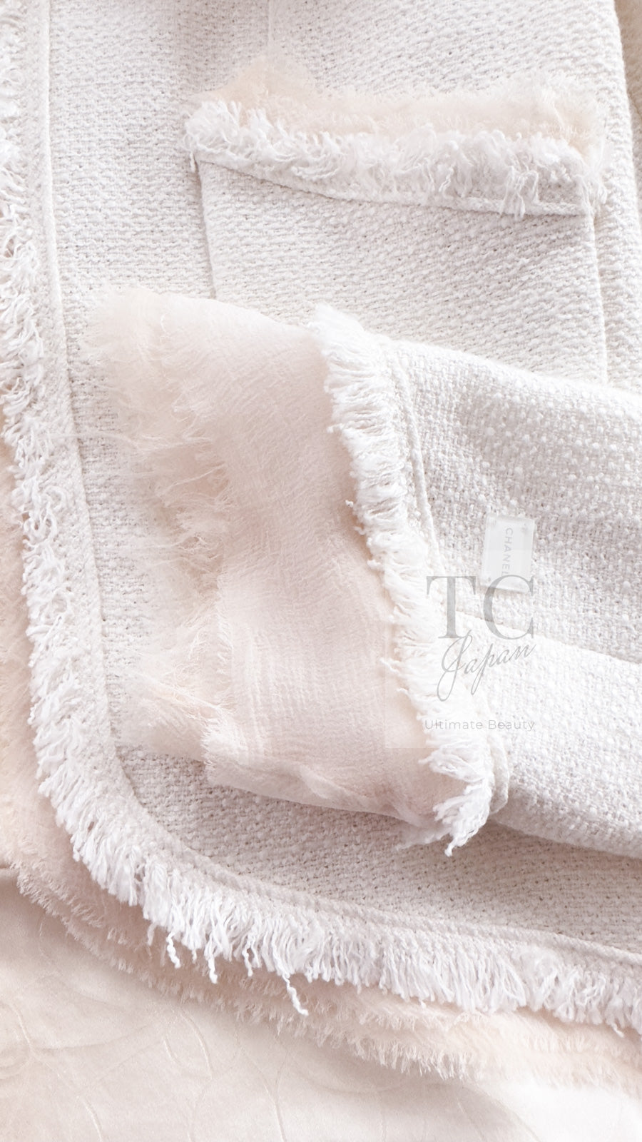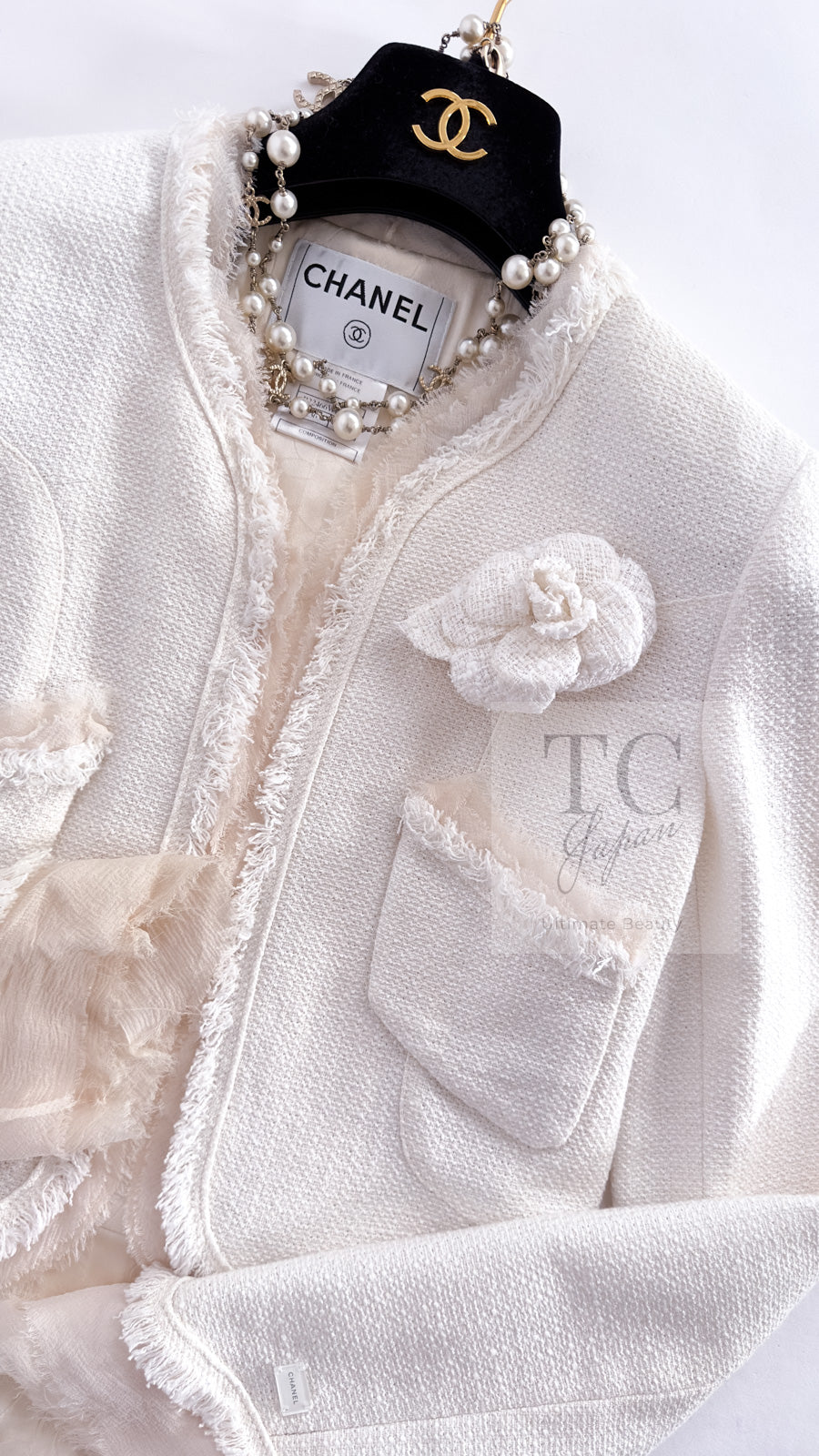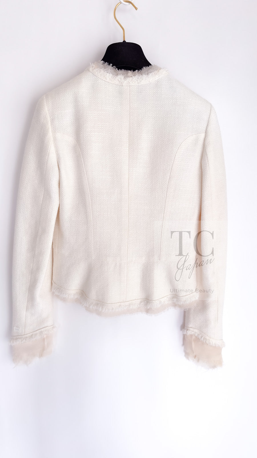 CHANEL 04C Ivory Cotton Frill Tweed Jacket 36 シャネル アイボリー コットン フリル ツイード ジャケット 即発