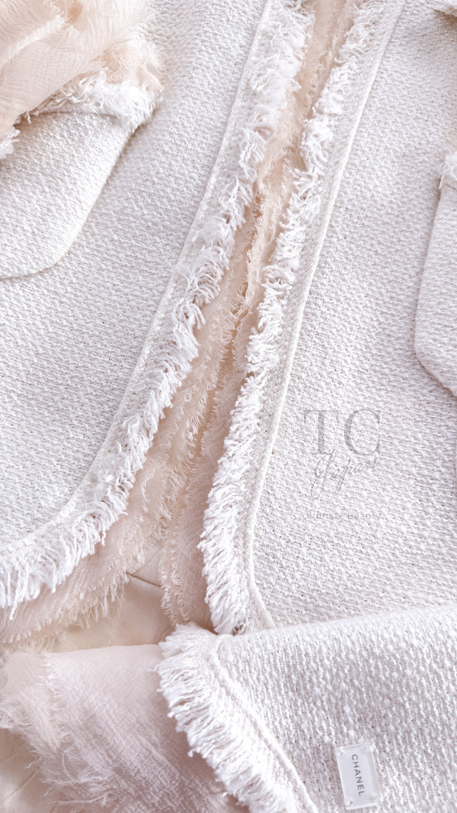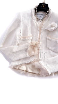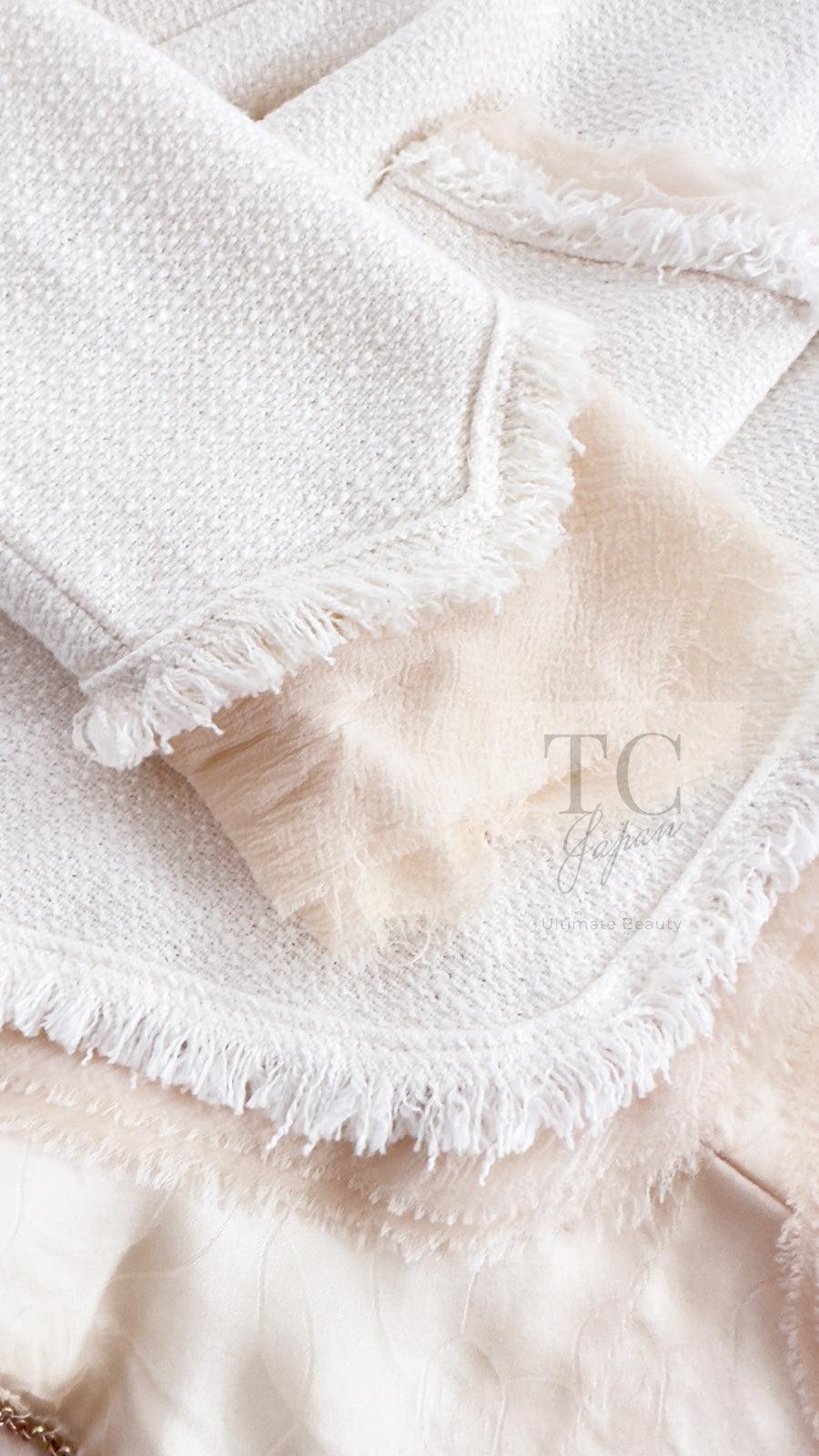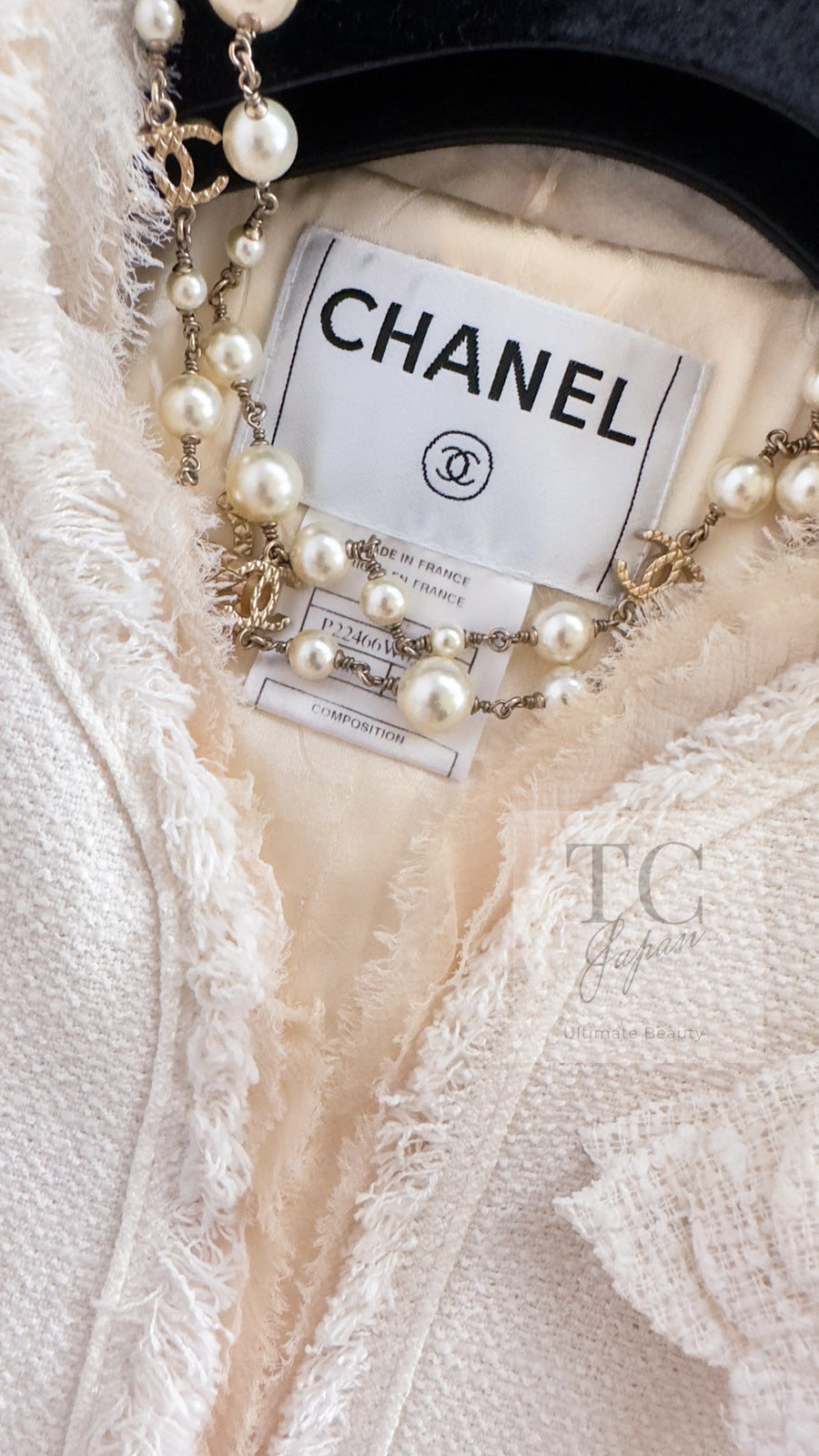 CHANEL 04C Ivory Cotton Frill Tweed Jacket 36 シャネル アイボリー コットン フリル ツイード ジャケット 即発