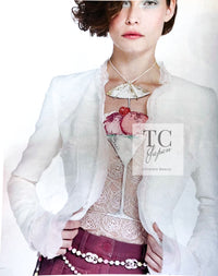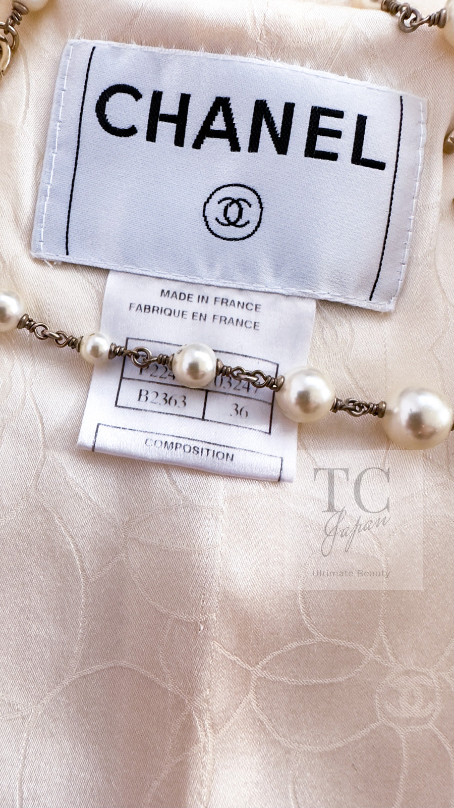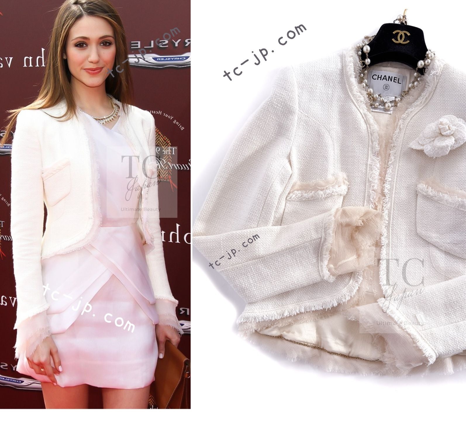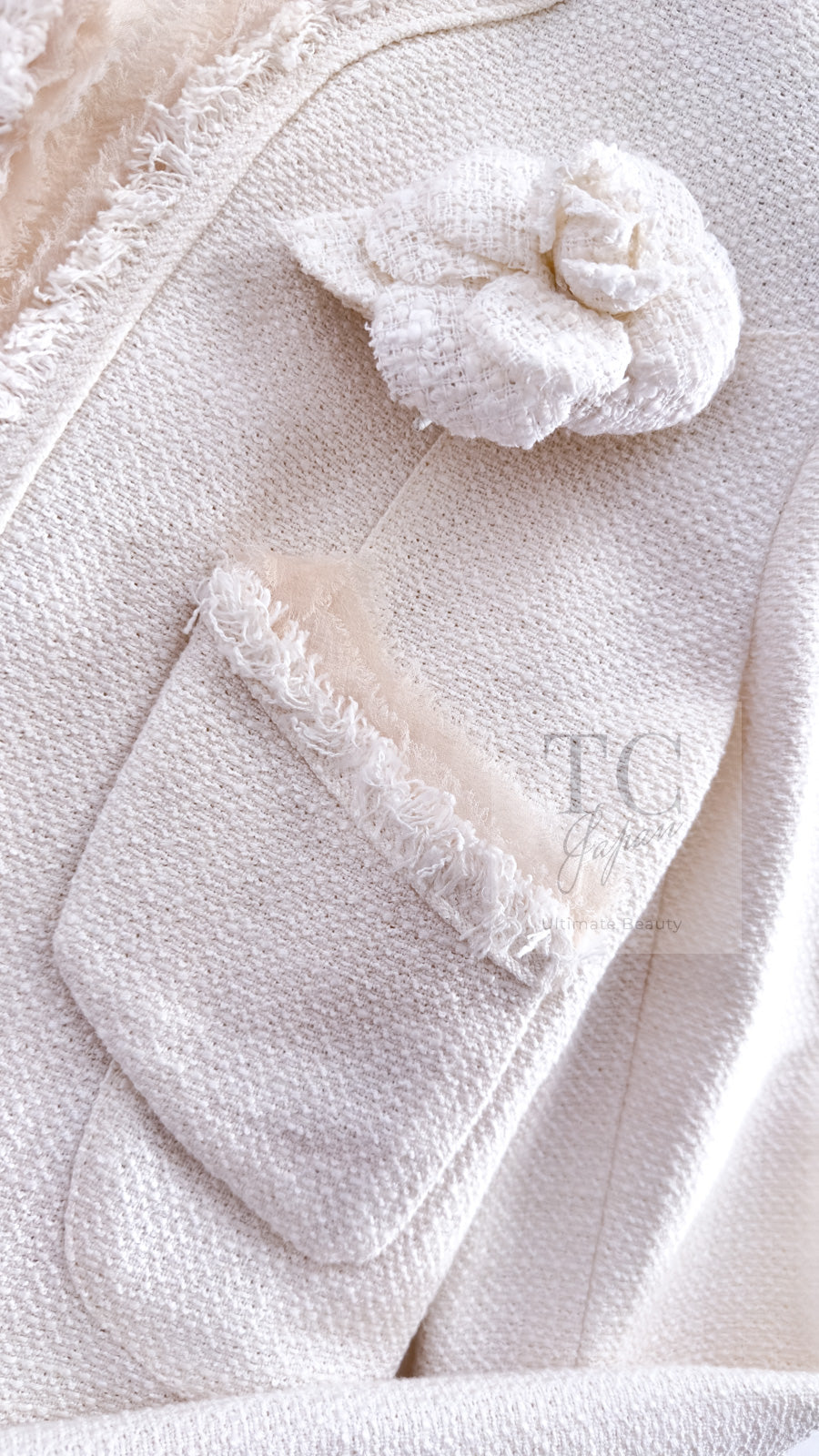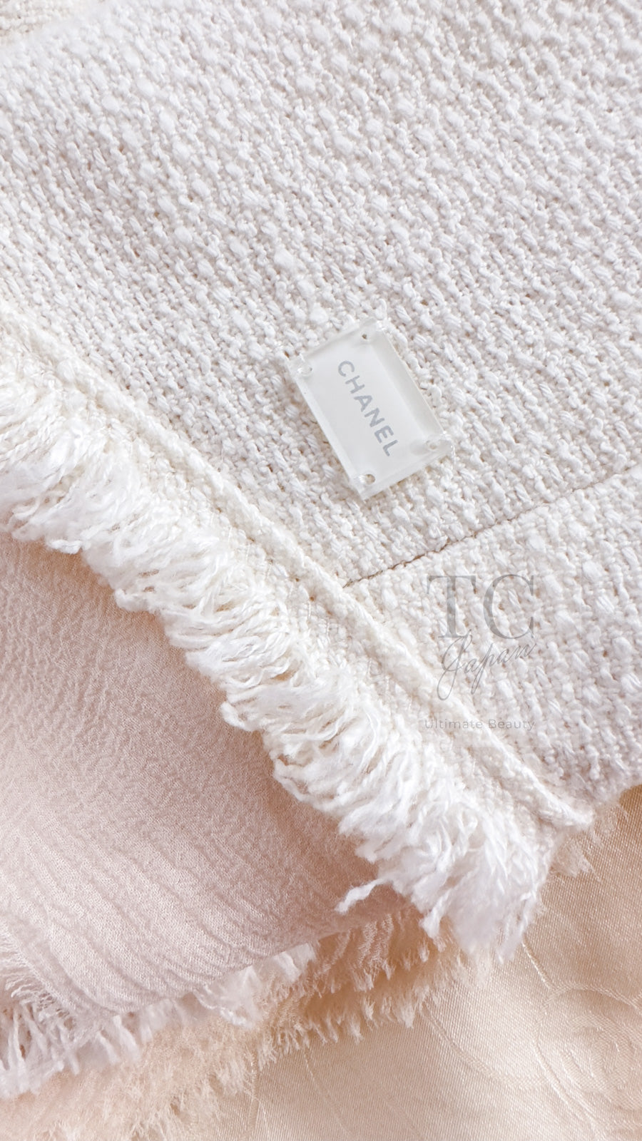 CHANEL 04C Ivory Cotton Frill Tweed Jacket 36 シャネル アイボリー コットン フリル ツイード ジャケット 即発