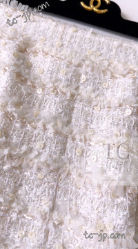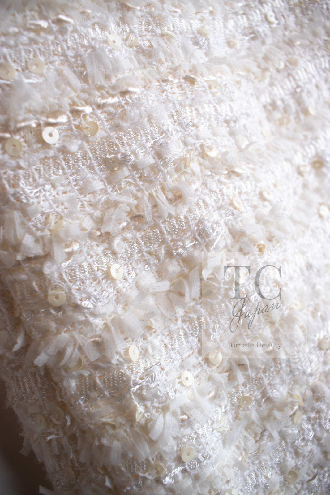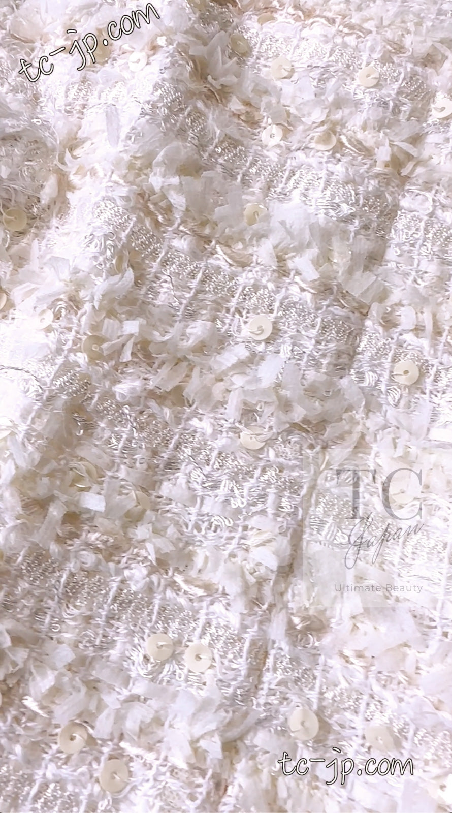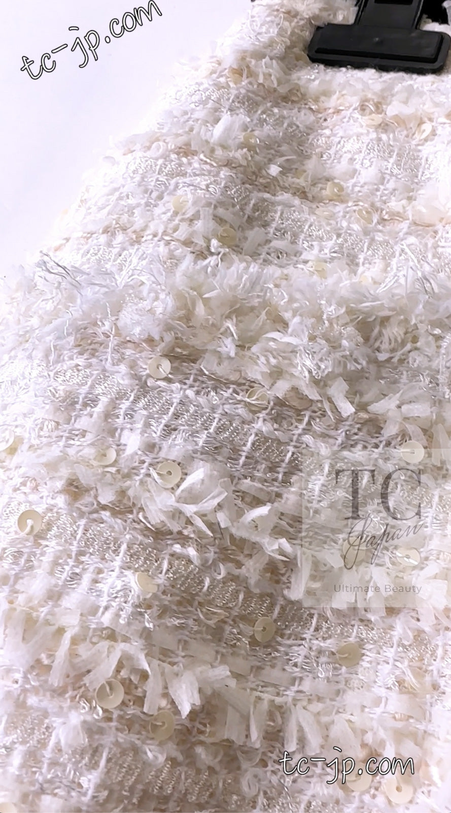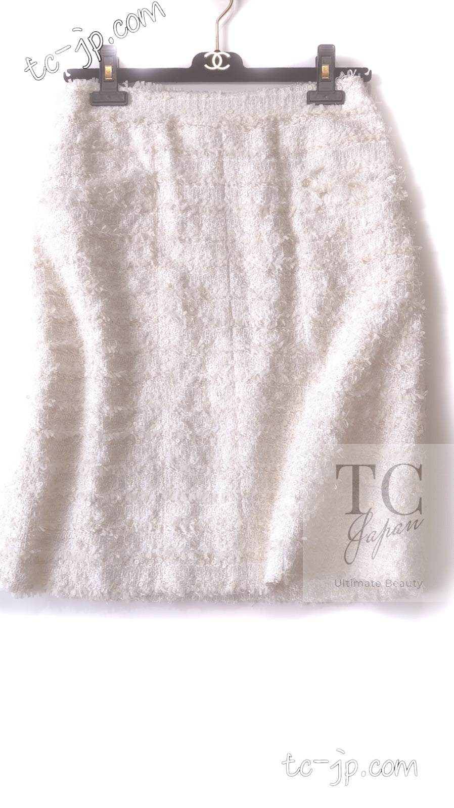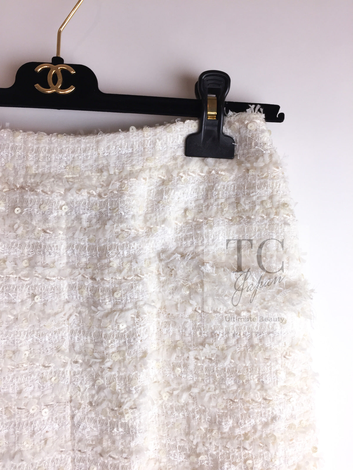 CHANEL 05S Ivory Fringe Sequin Lesage Tweed Skirt 42 44 シャネル アイボリー フリンジ スパコール ルサージュ ツイード スカート 即発