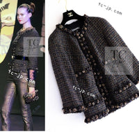 CHANEL 07PF Brown Navy Metallic Monte Carlo Tweed Jacket 36 シャネル モンテカルロ ブラウン ネイビー メタリック ツイード ジャケット 即発