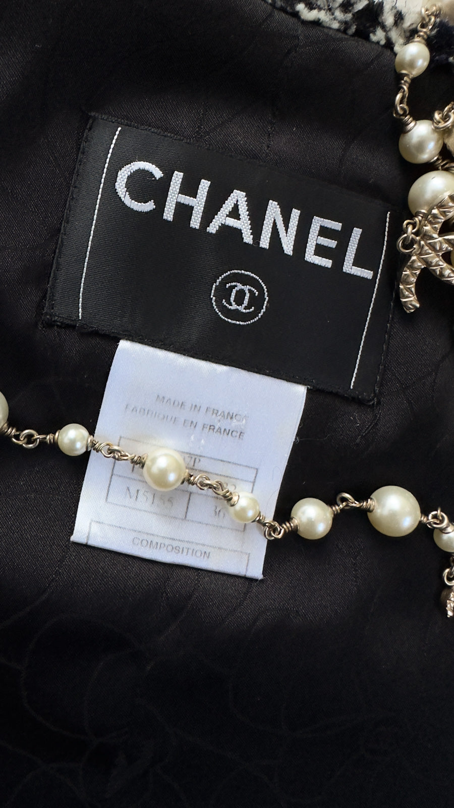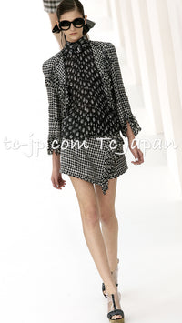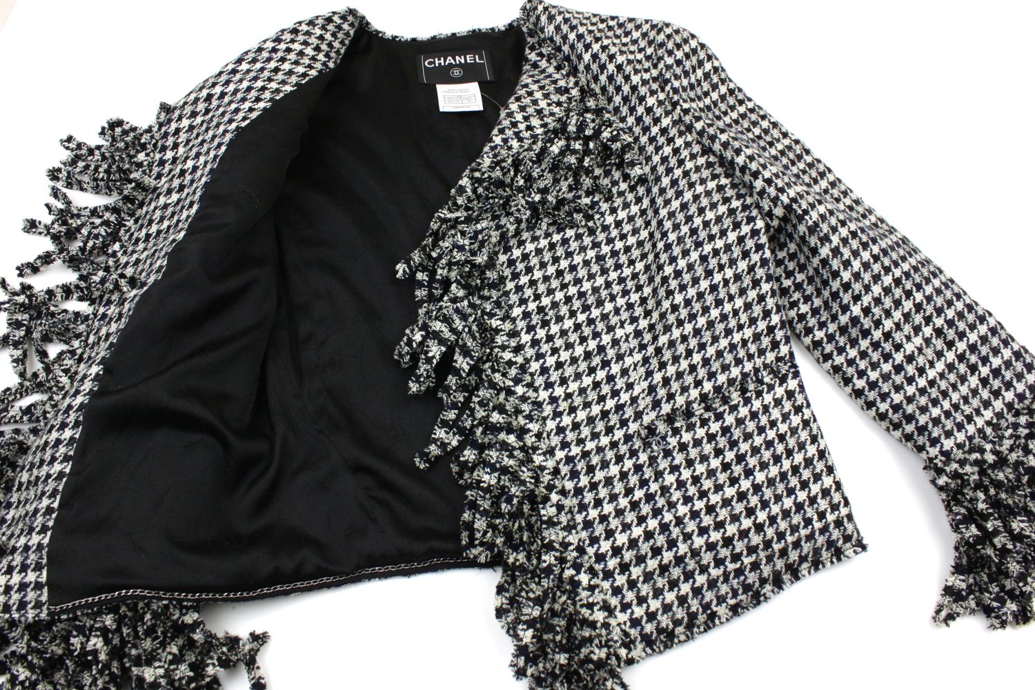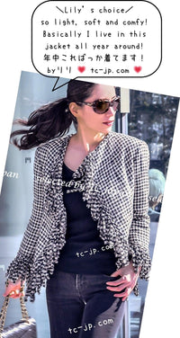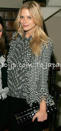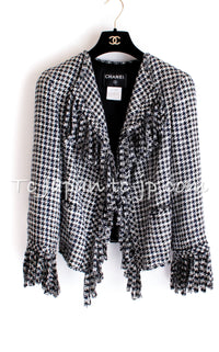 CHANEL 07S Black Gray Houndstooth Fringe Silk Linen Wool Tweed Jacket 34 36 シャネル ブラック グレー フリンジ ツイード ジャケット 千鳥格子 即発