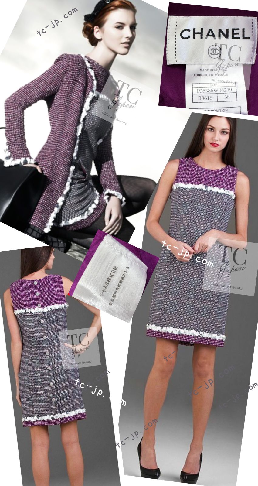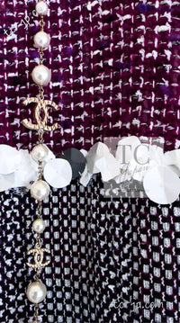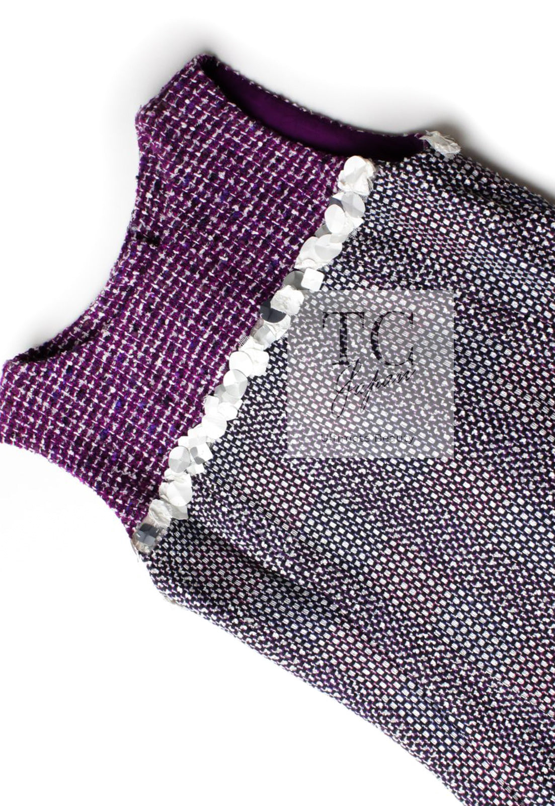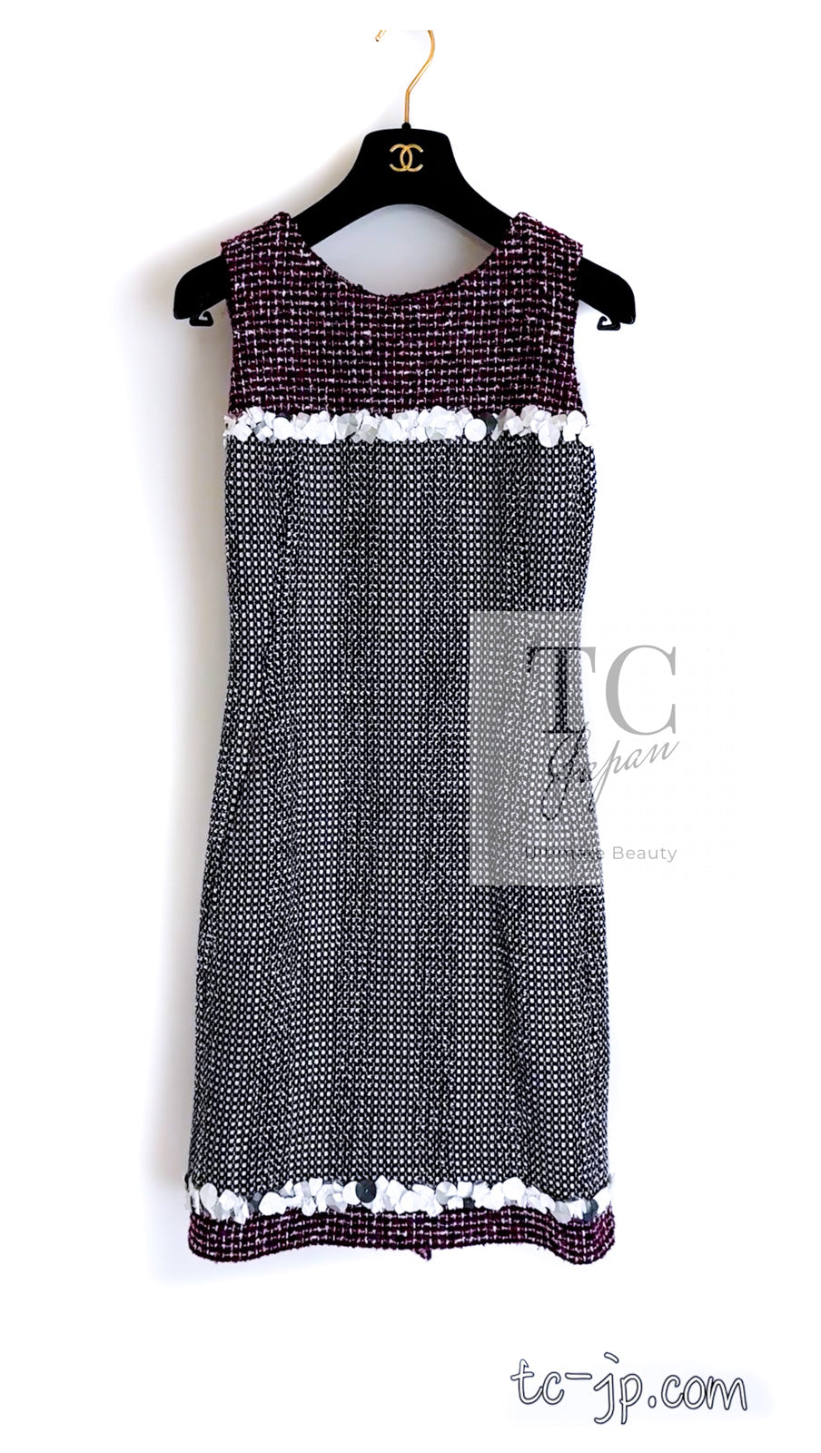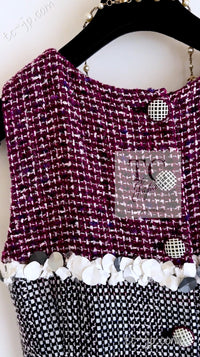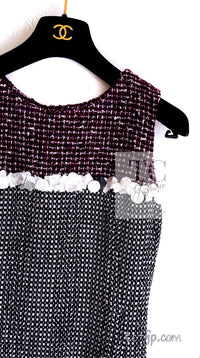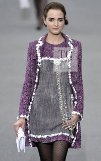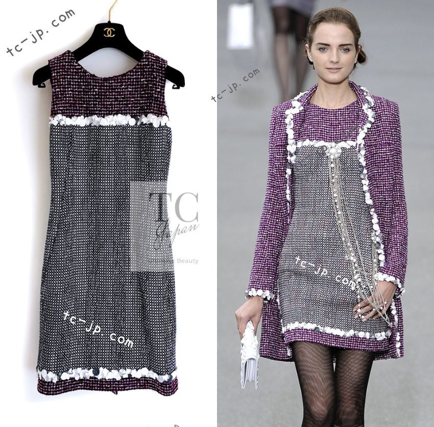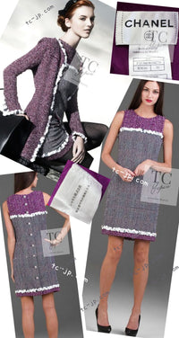 CHANEL 09S Purple Cotton Sequin Trim Wool Tweed Dress 38 シャネル パープル コットン スパンコール トリム ウール ツイード ワンピース 即発
