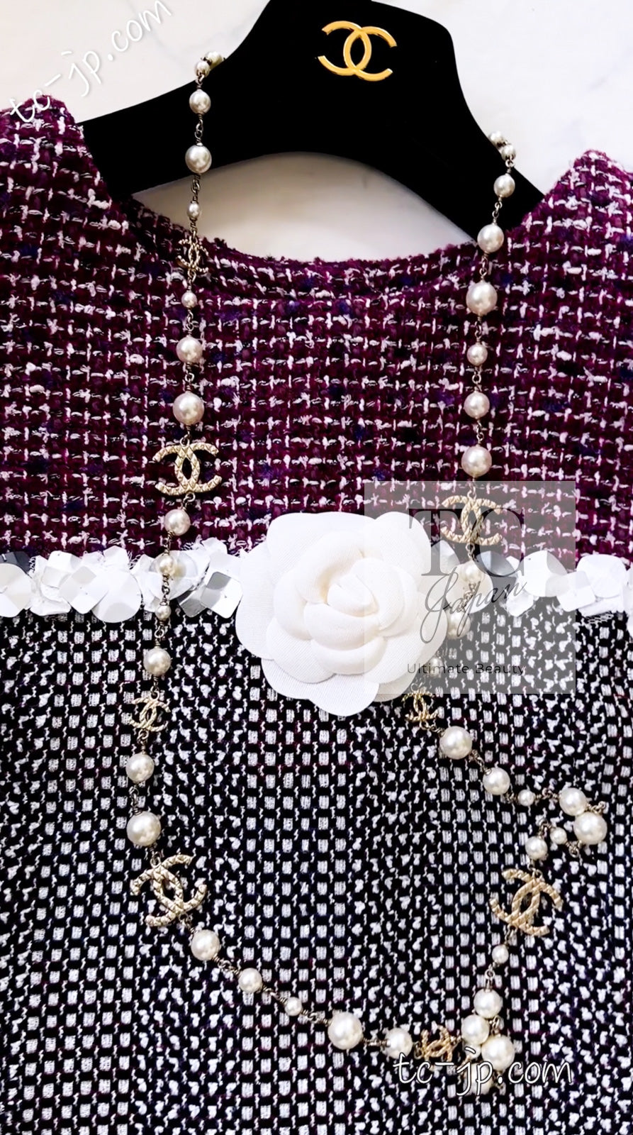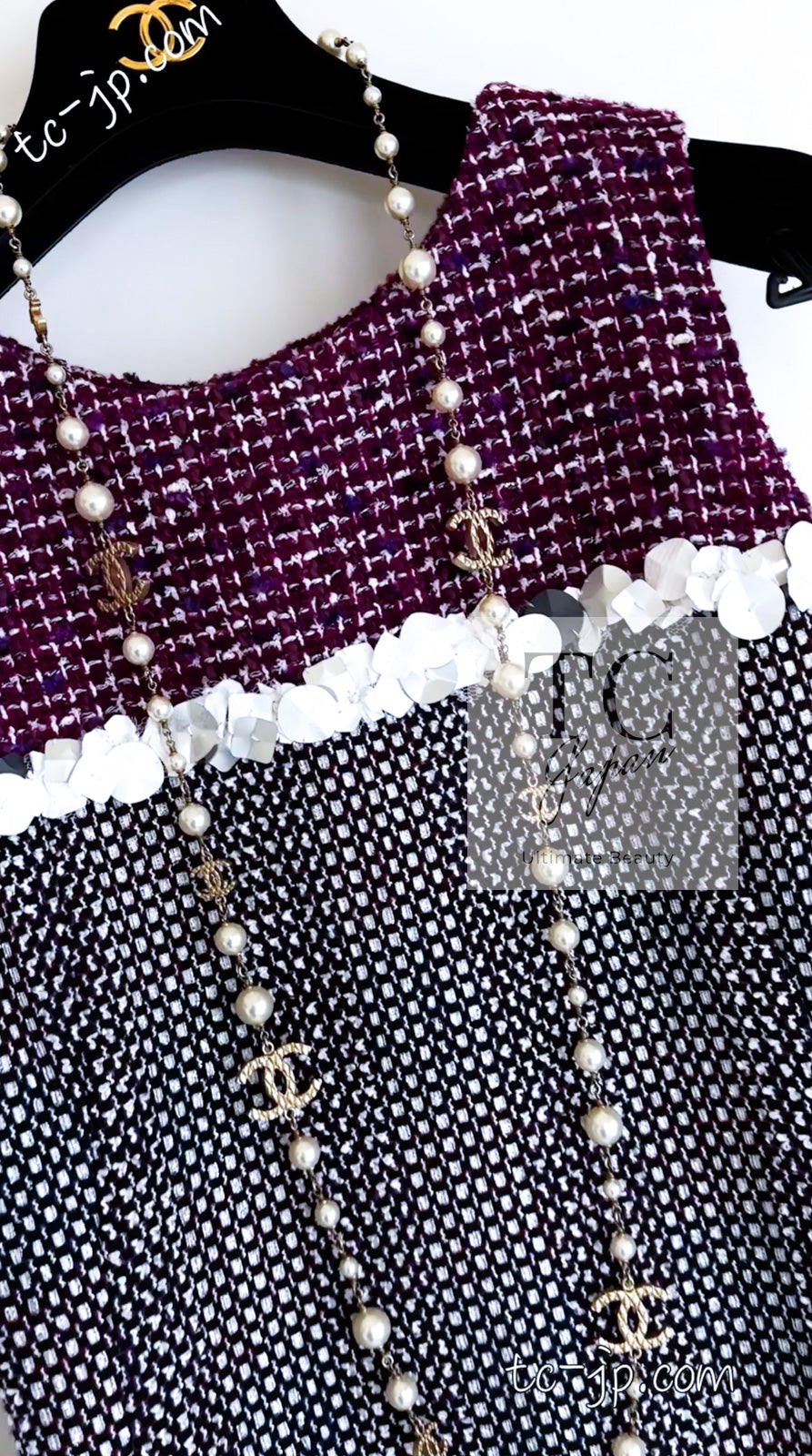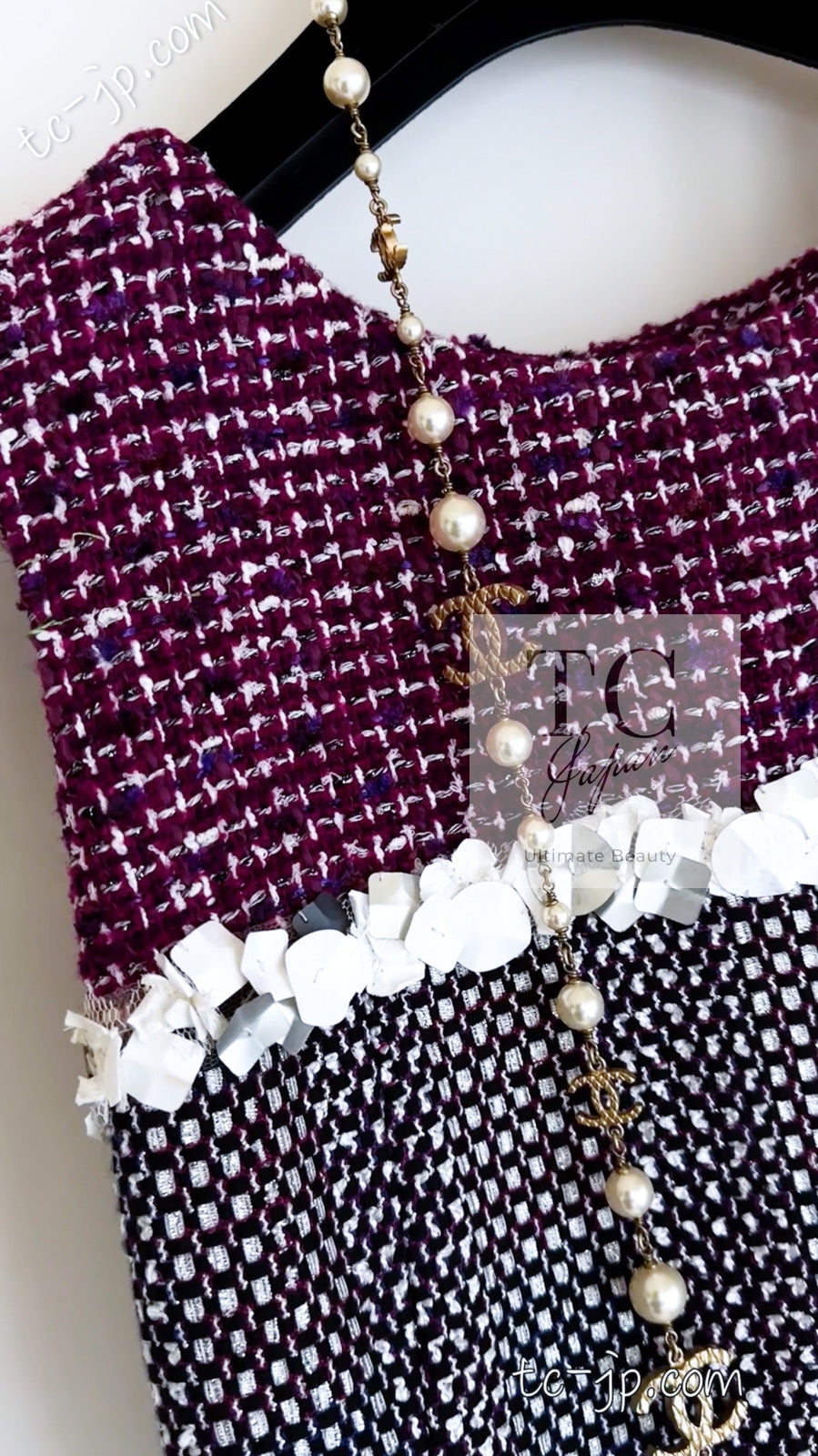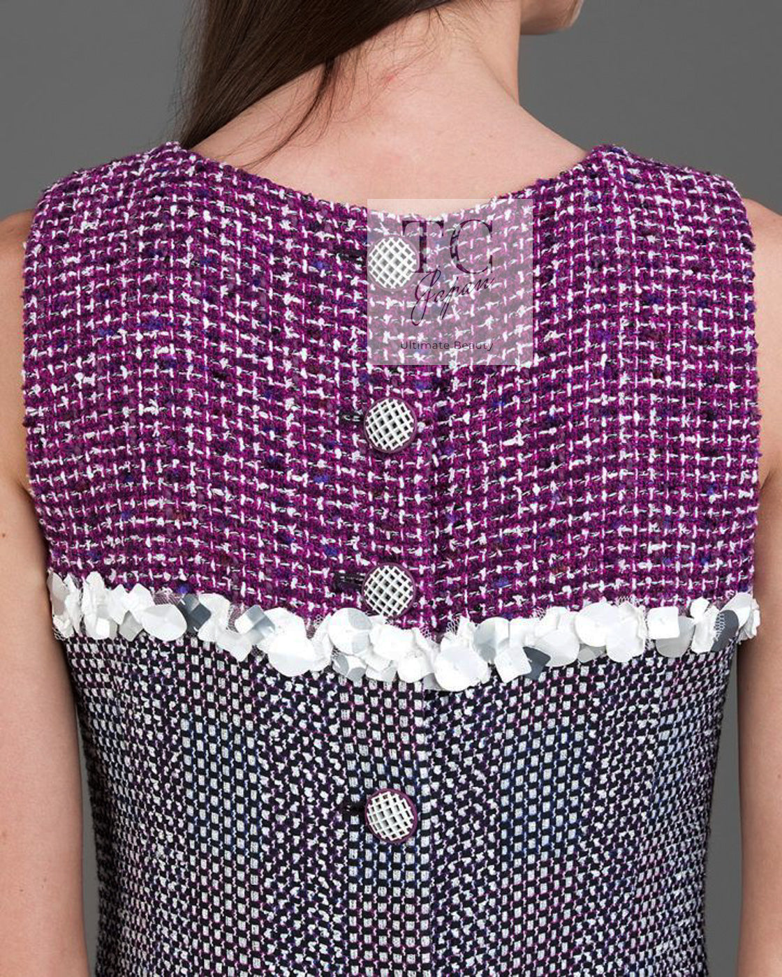 CHANEL 09S Purple Cotton Sequin Trim Wool Tweed Dress 38 シャネル パープル コットン スパンコール トリム ウール ツイード ワンピース 即発