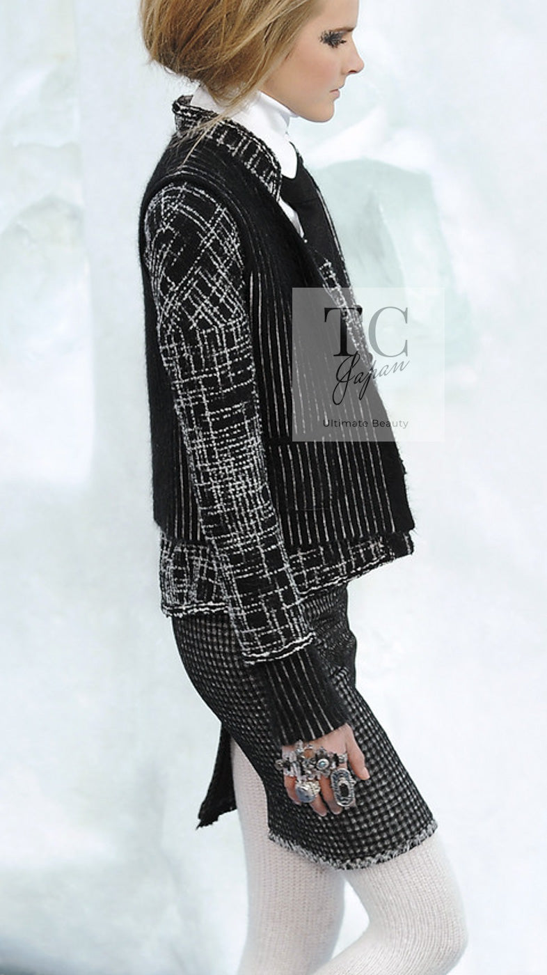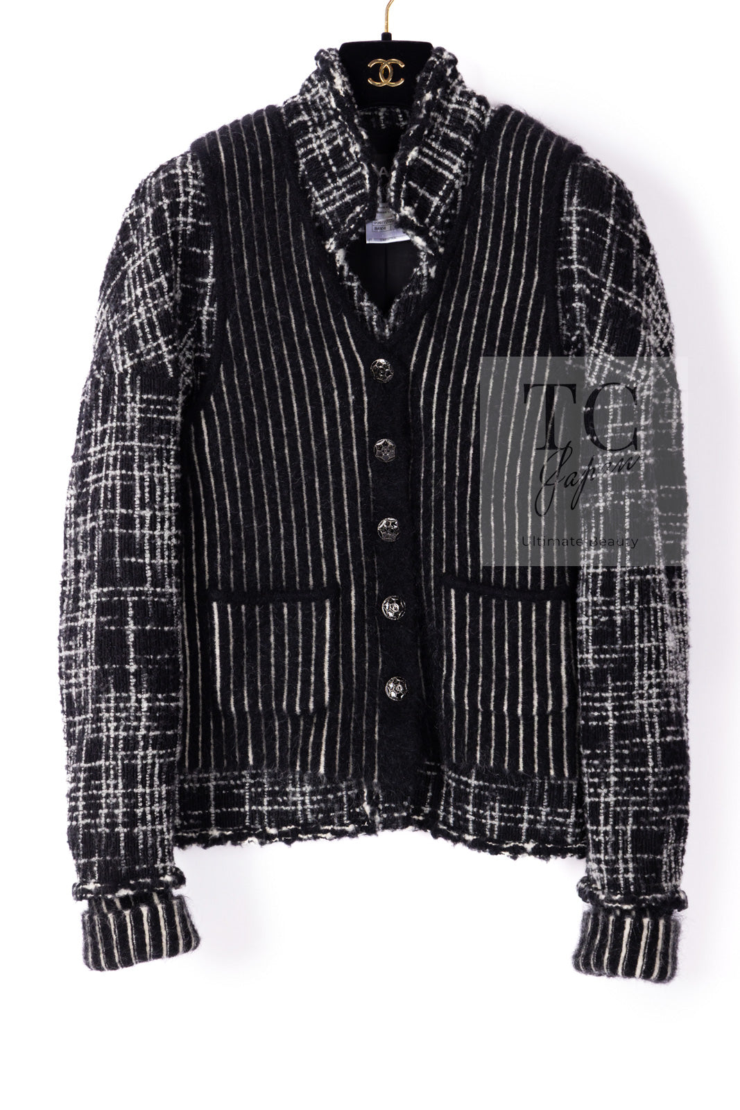 CHANEL 10A Black Ivory Wool Silk Tweed Jacket with Vest 38 シャネル ブラック アイボリー ウール シルク ツイード ジャケット ベスト付き 即発