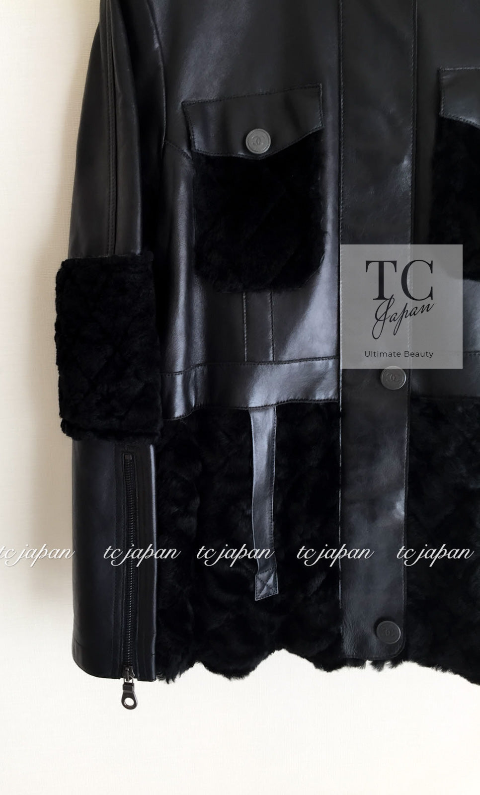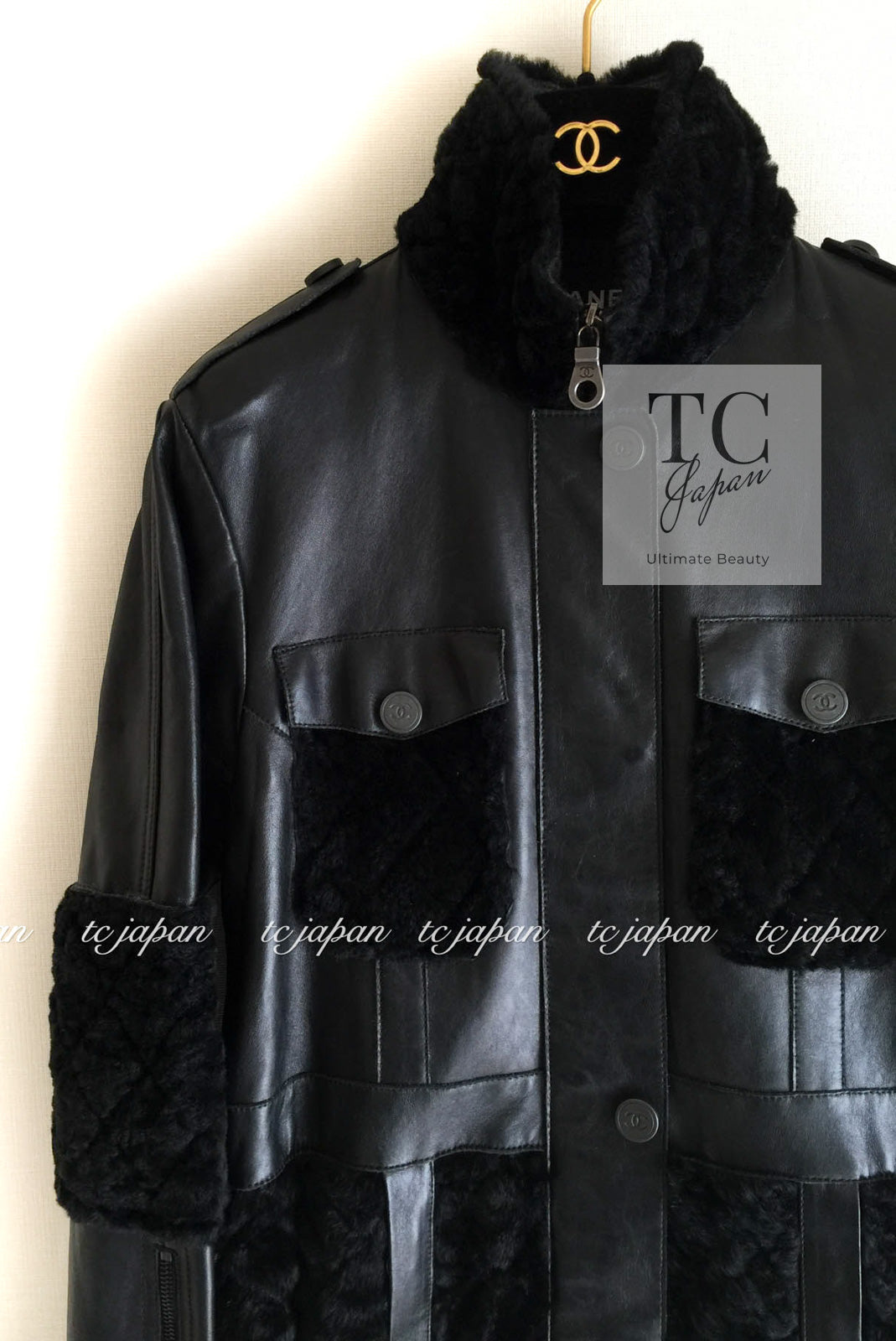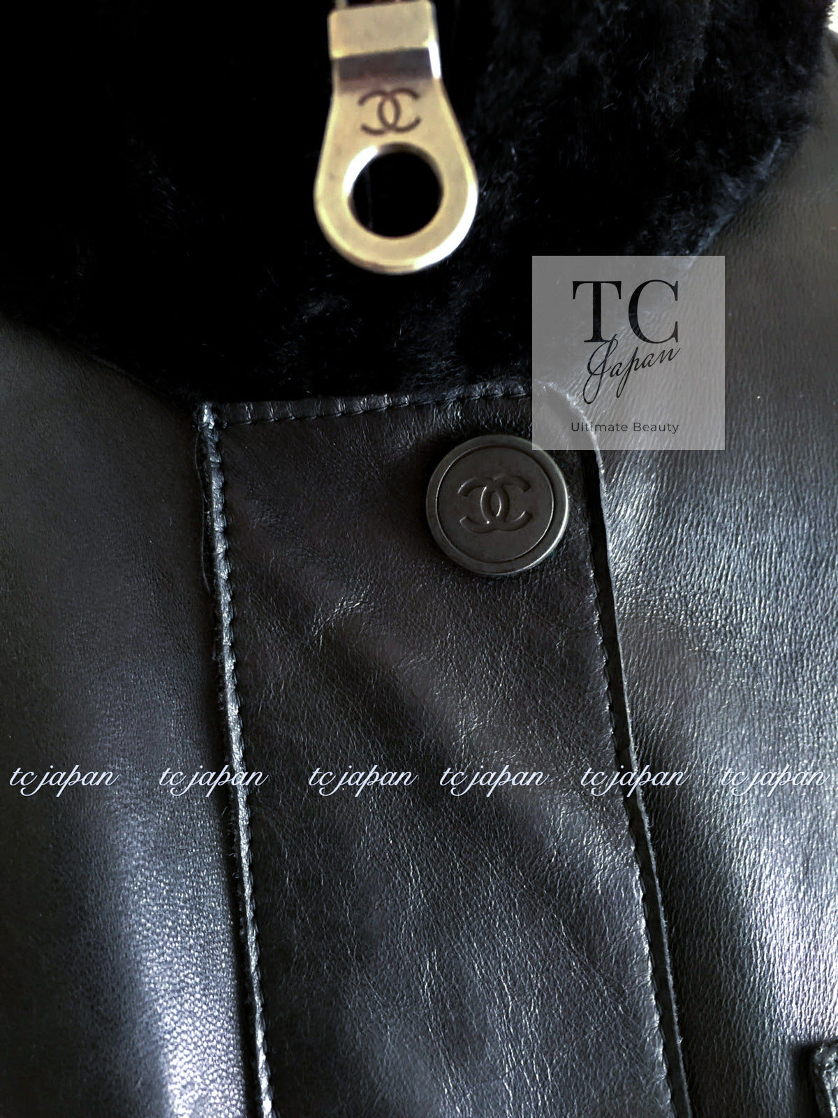 CHANEL 10A Black Leather Lambskin Coat Jacket 40 シャネル ブラック ラムスキン レザー コート ジャケット 即発