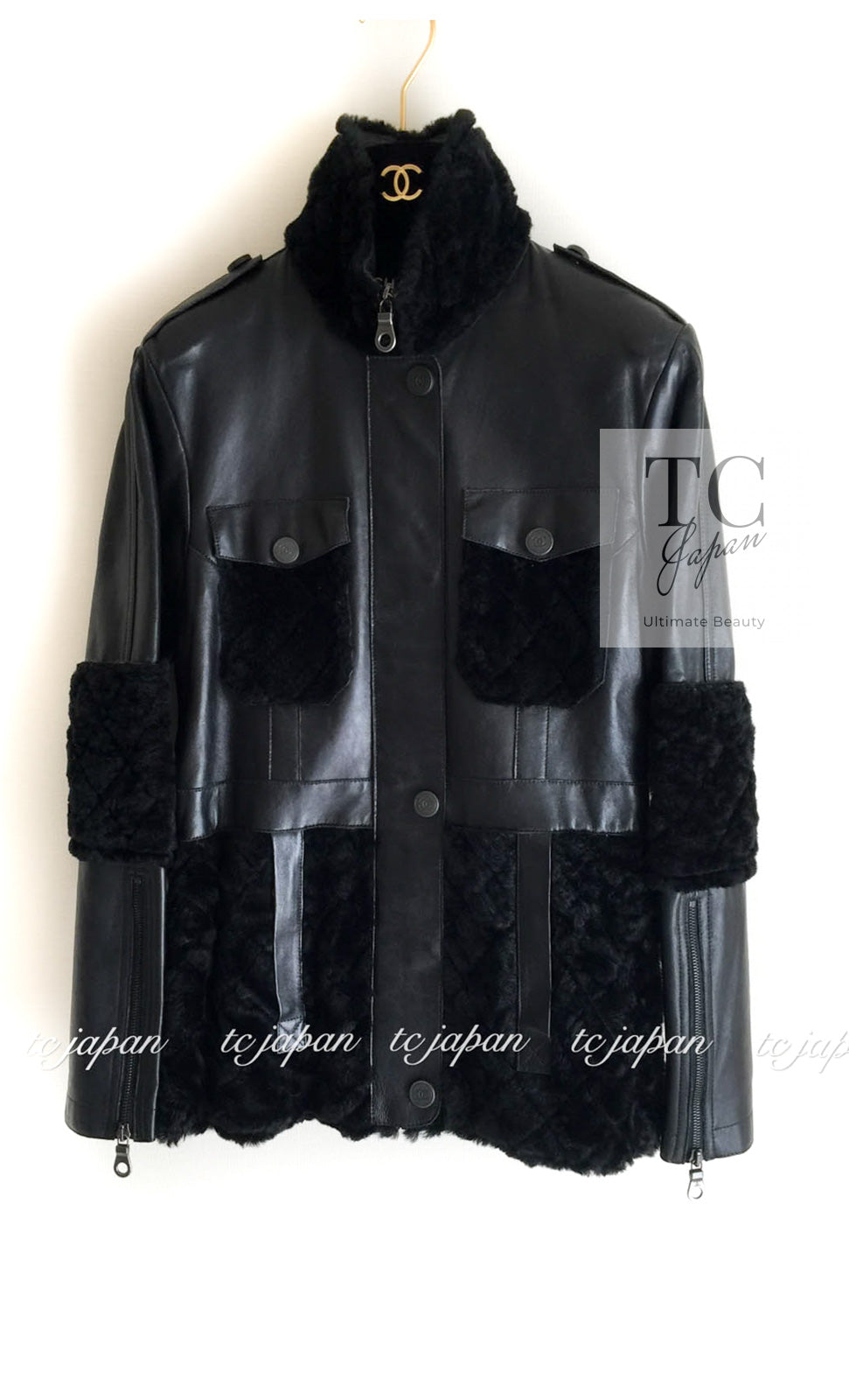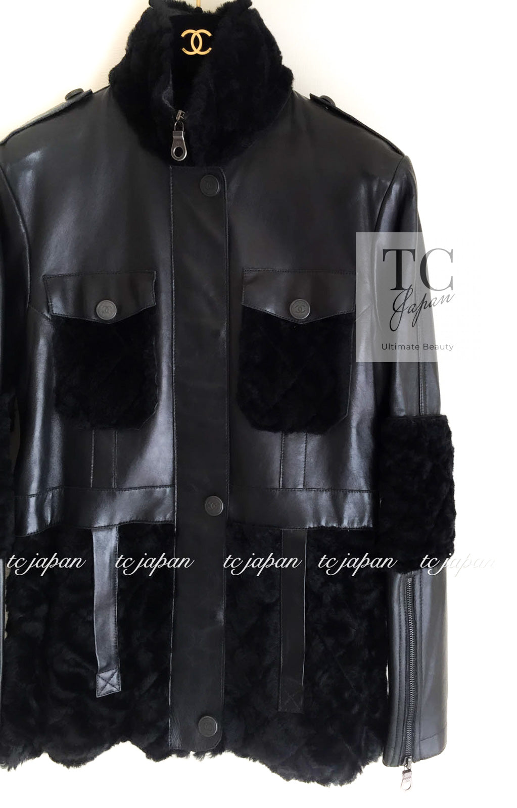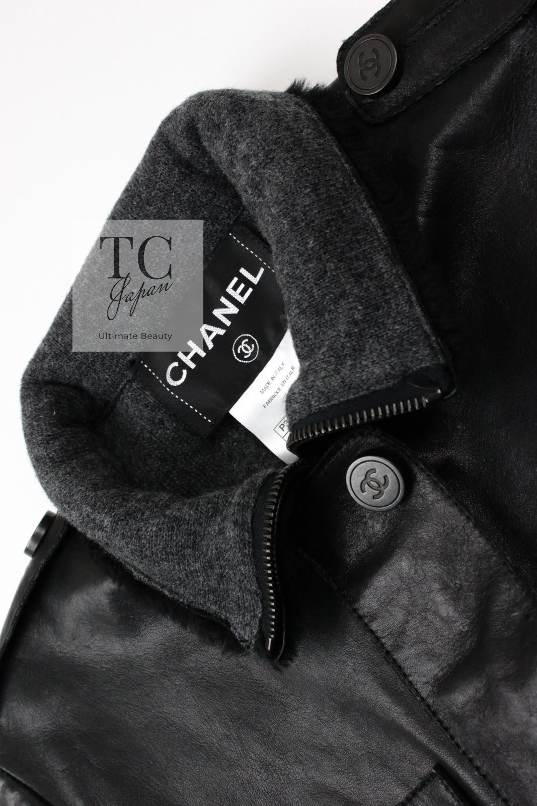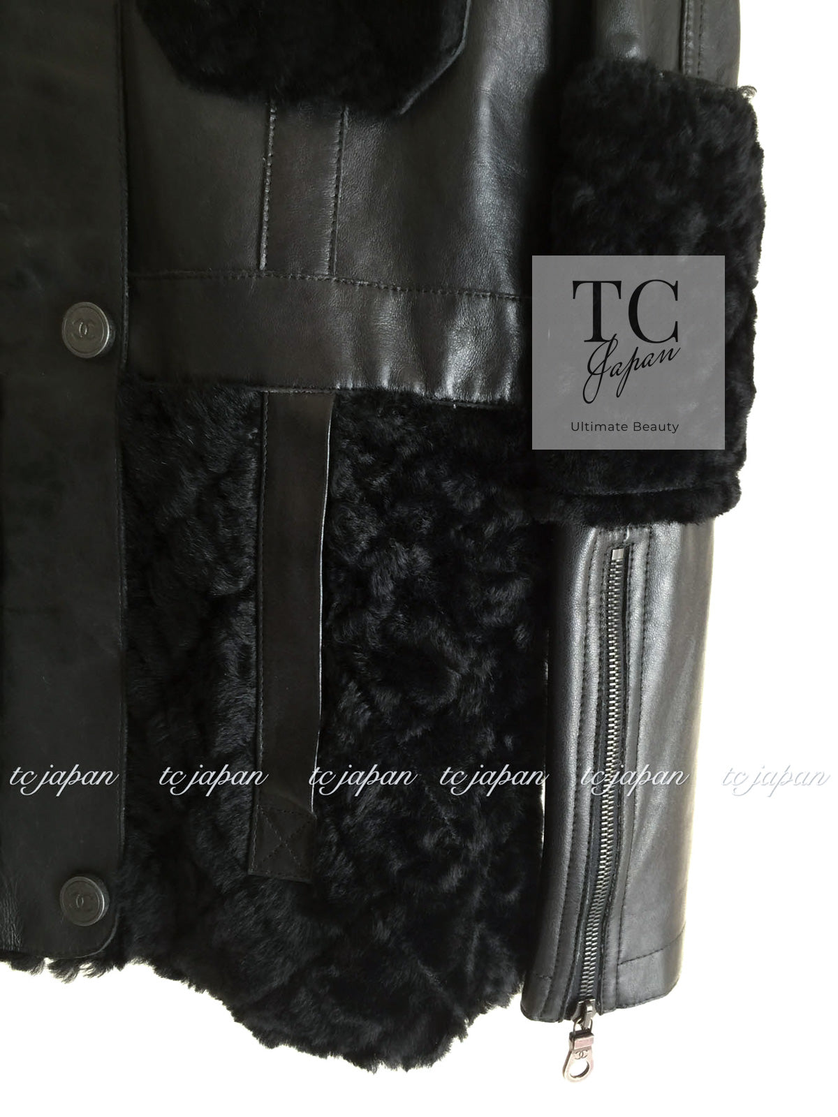 CHANEL 10A Black Leather Lambskin Coat Jacket 40 シャネル ブラック ラムスキン レザー コート ジャケット 即発
