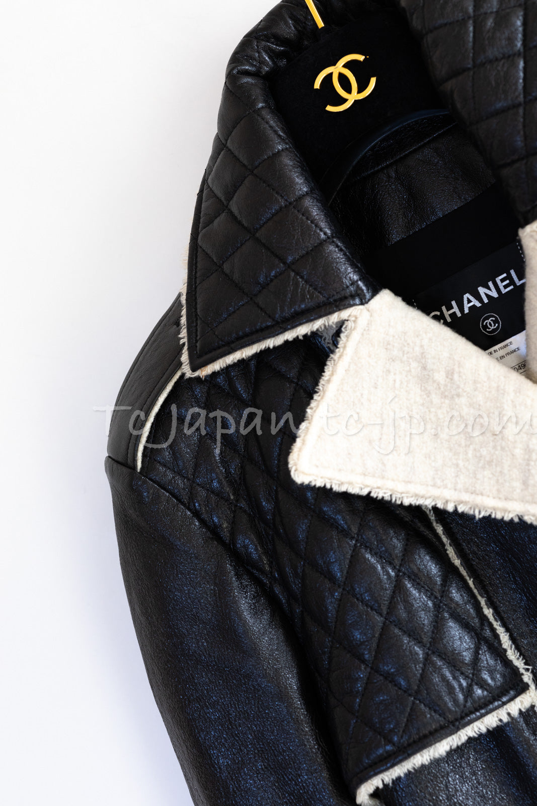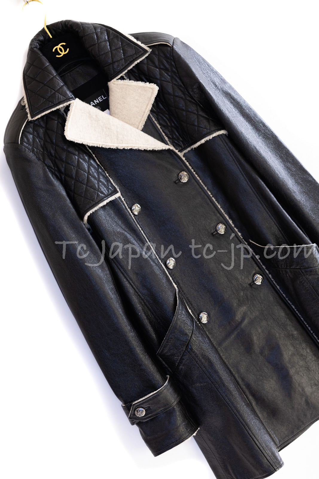 CHANEL 11A Black Matelasse Lambskin Leather Double Coat 36 シャネル ブラック マトラッセ ラムスキン レザー ダブル コート 即発
