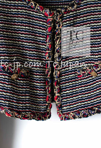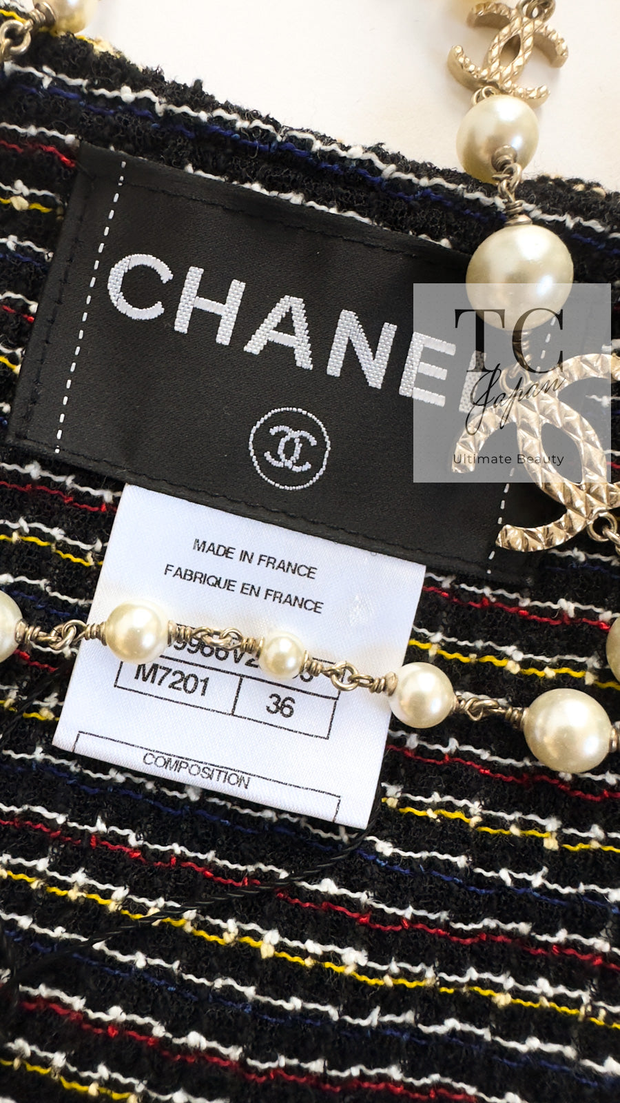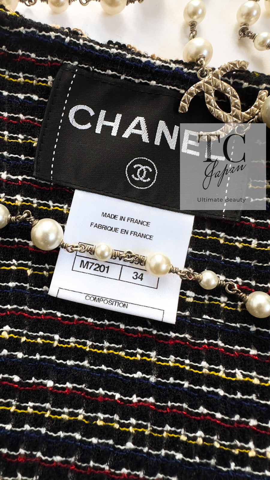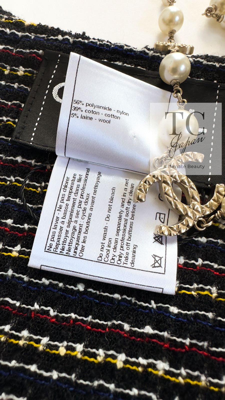 CHANEL 11C Black Border Multi Color Cropped Jacket 34 シャネル ブラック マルチカラー ストライプ ボーダー クロップド ジャケット 即発