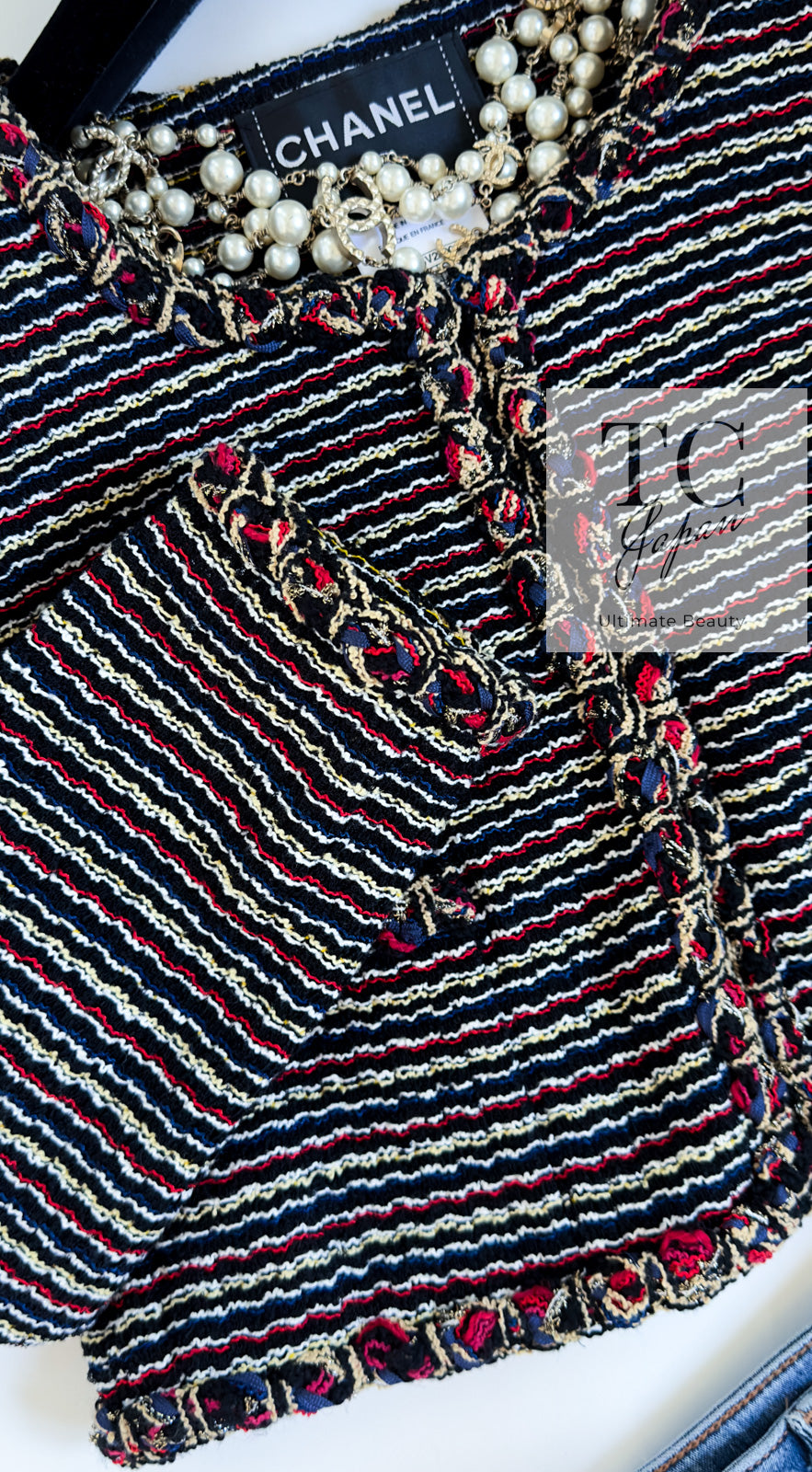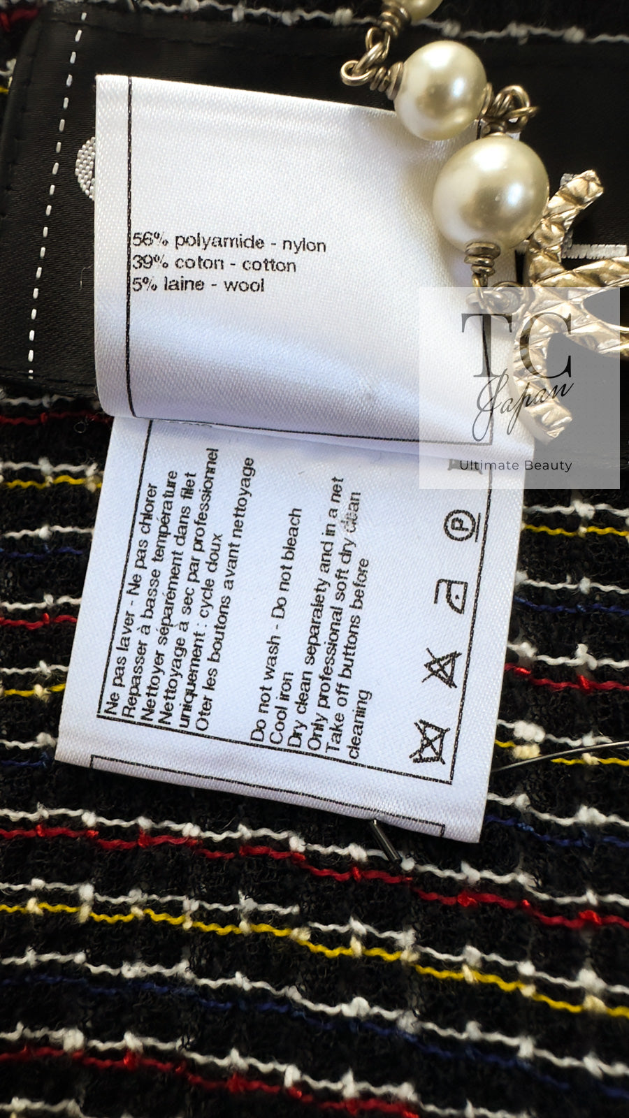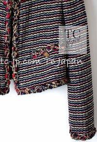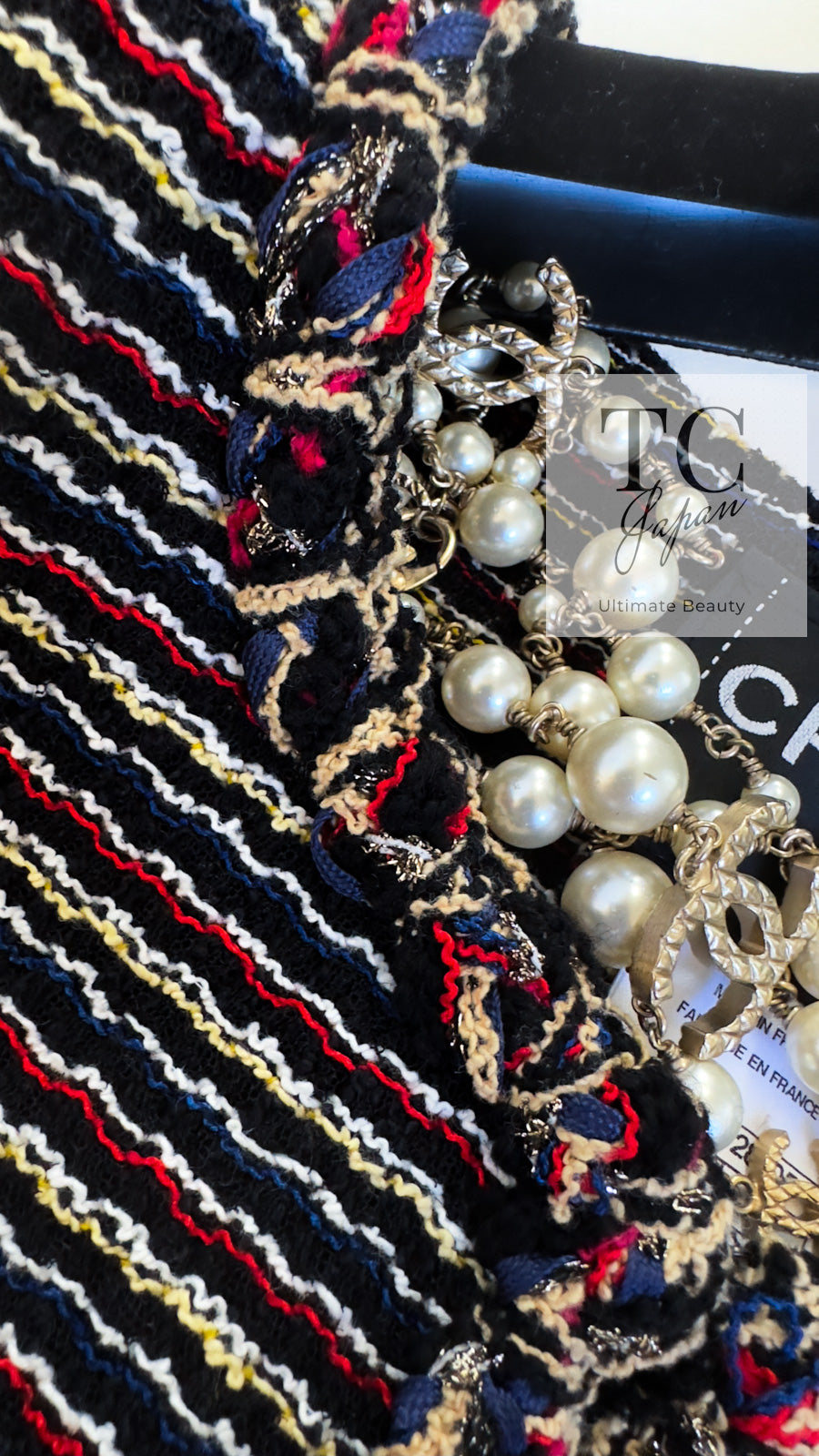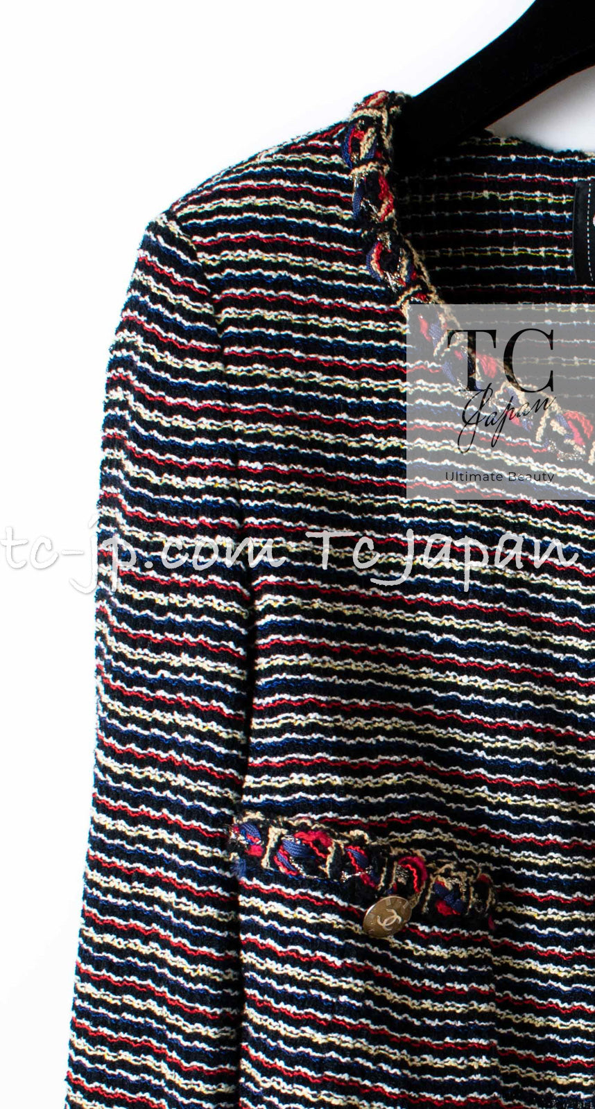CHANEL 11C Black Border Multi Color Cropped Jacket 34 シャネル ブラック マルチカラー ストライプ ボーダー クロップド ジャケット 即発