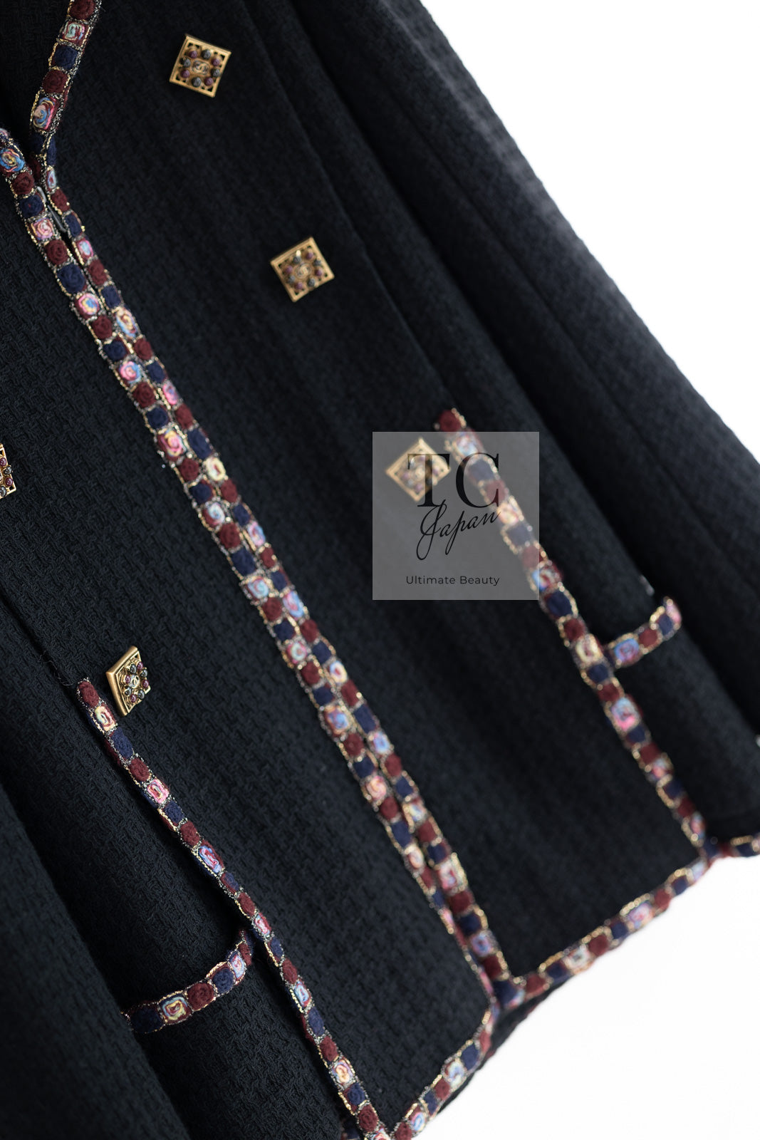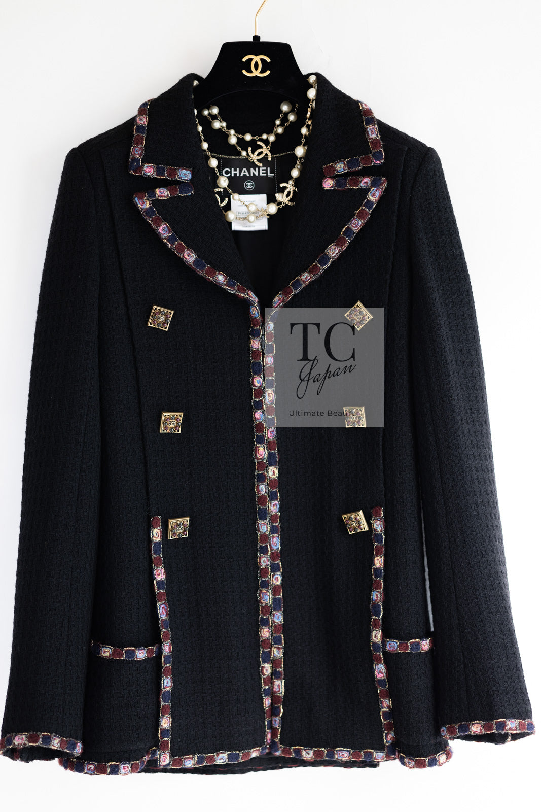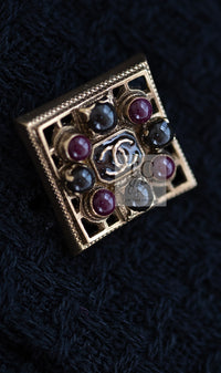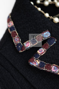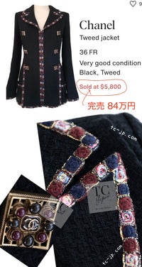 CHANEL 11PF Black Gripoix Button Wool Tweed Jacket Coat 36 38 シャネル ブラック グリポア 宝石 ボタン ウール ツイード ジャケット コート 即発