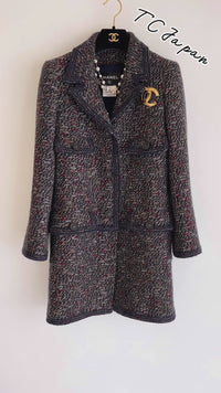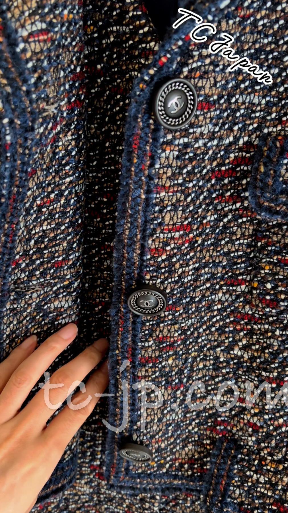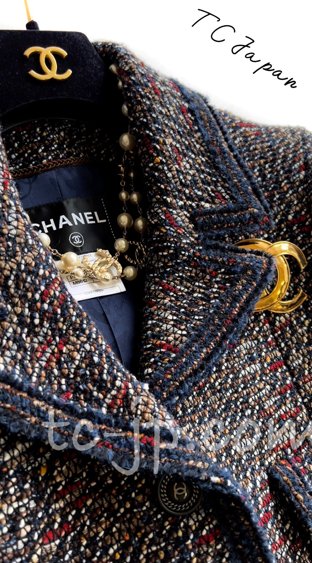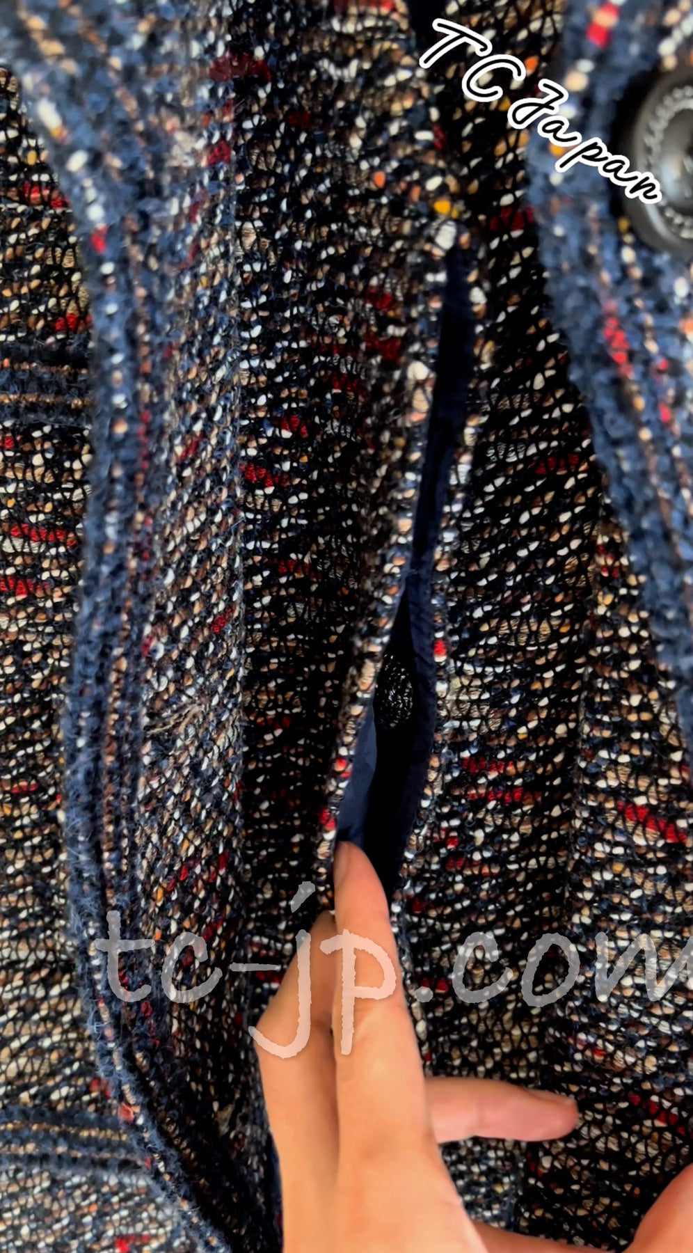 CHANEL 12A Navy Multicolor Tweed Jacket Coat 40 42 シャネル ネイビー マルチカラー ツイード ジャケット コート 即発