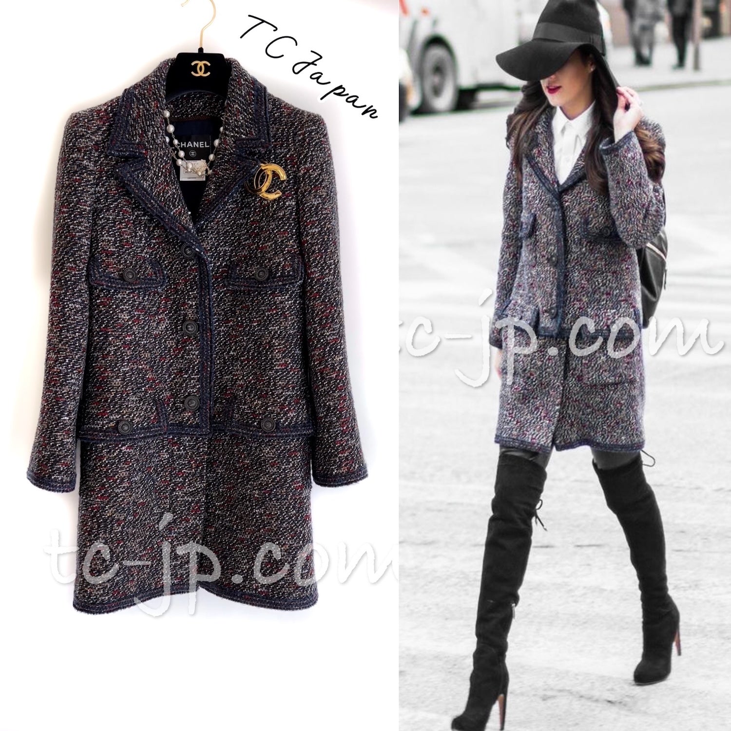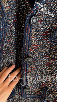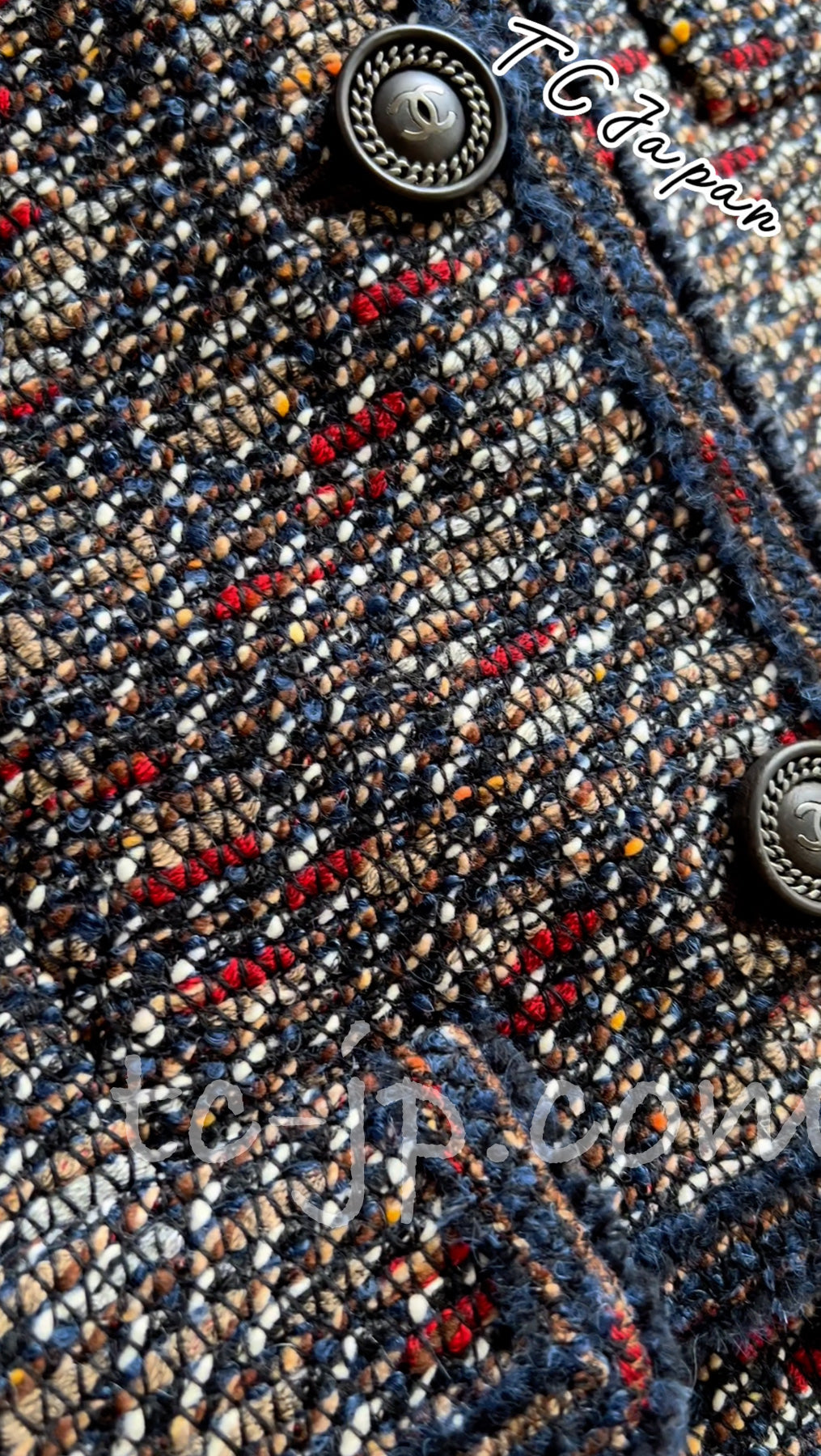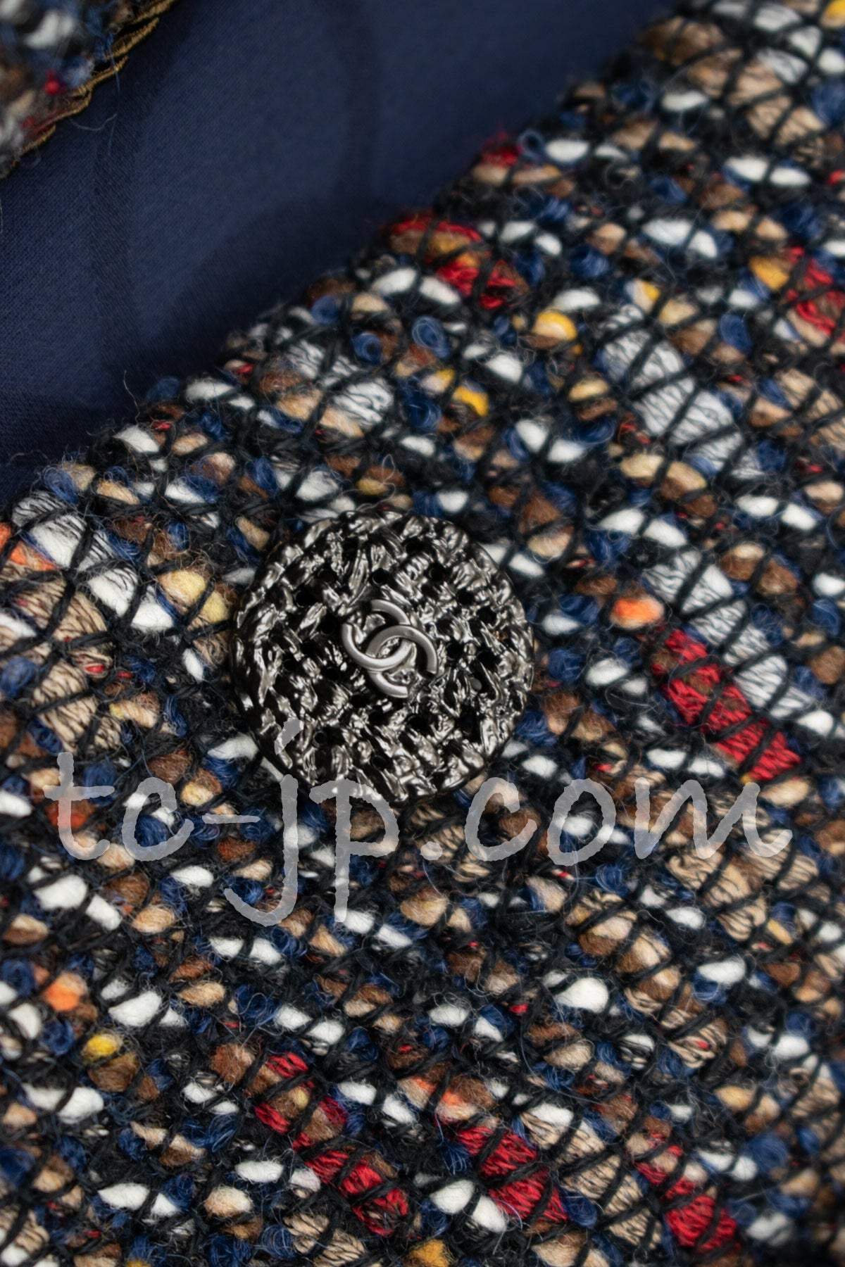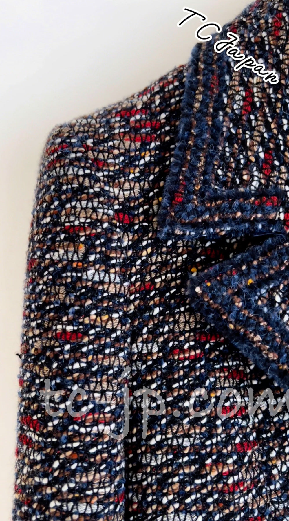 CHANEL 12A Navy Multicolor Tweed Jacket Coat 40 42 シャネル ネイビー マルチカラー ツイード ジャケット コート 即発