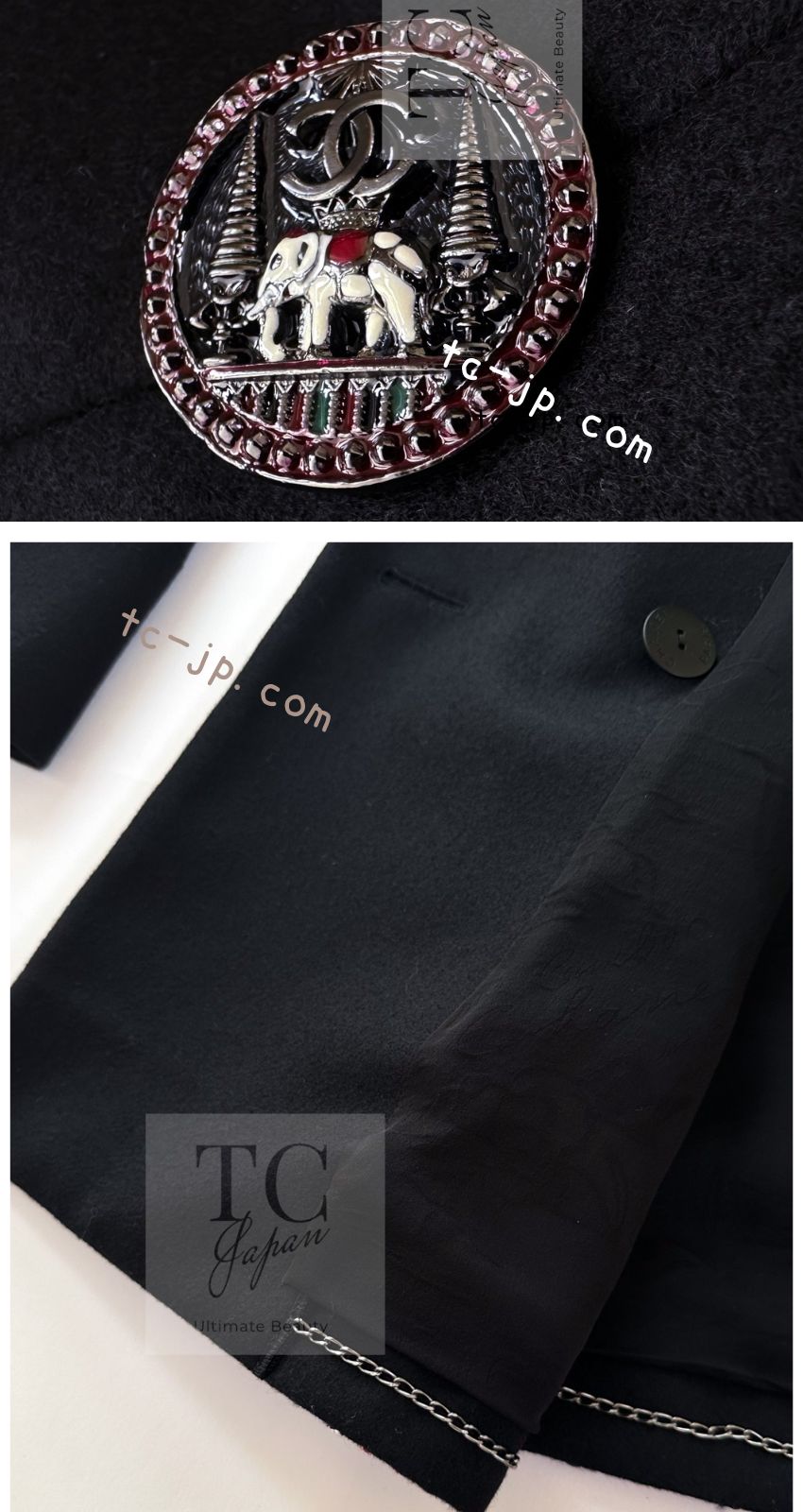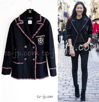 CHANEL 12PF Paris Bombay Black Wool Cashmere Blazer Jacket 34 38 シャネル ブラック エンブレム ウール カシミヤ ブレザー ジャケット 即発