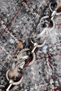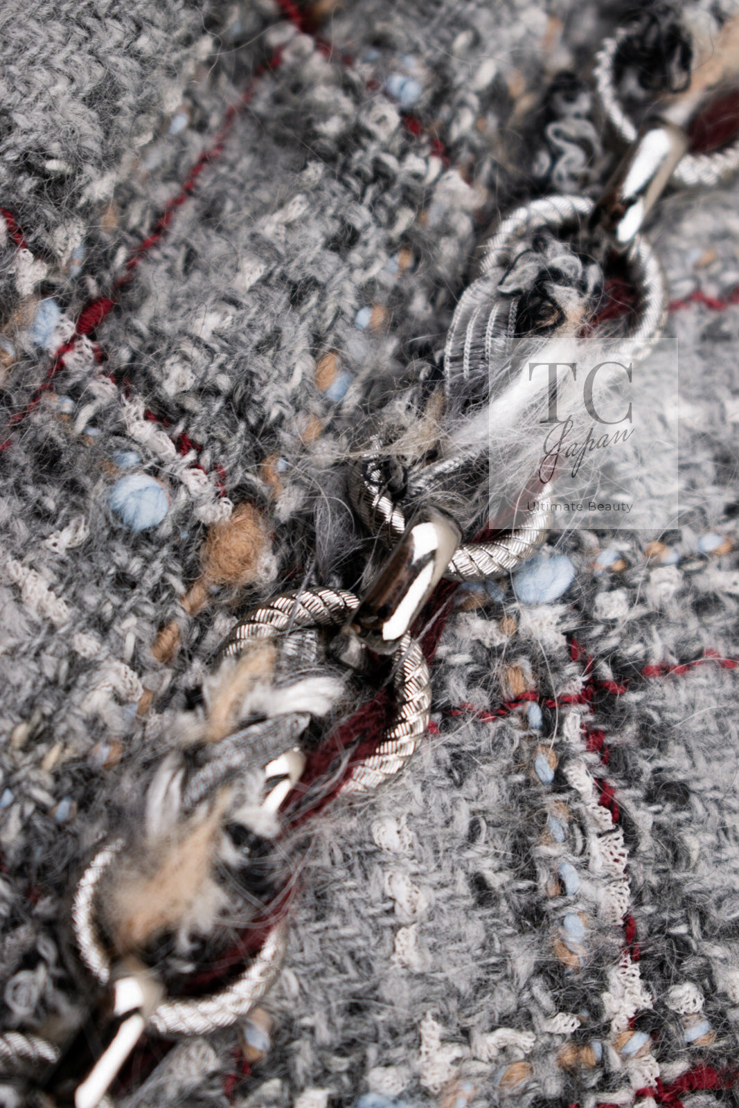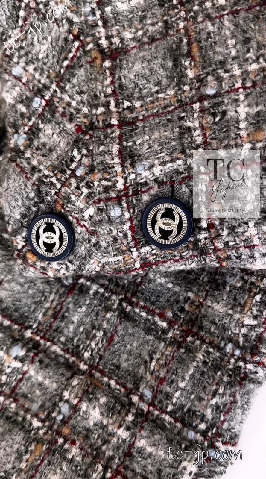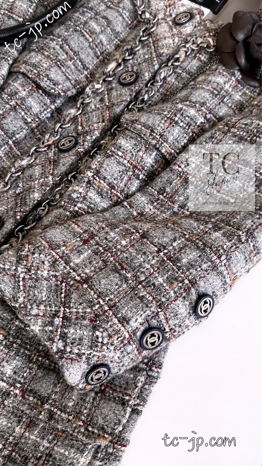 CHANEL 13B Gray Brown Chain Trimming Tweed Dress Coat 34 36 シャネル グレー ブラウン チェーン トリミング ワンピース コート 即発