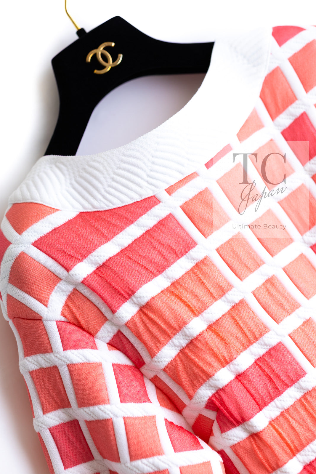CHANEL 13C Light Pink White Quilted Pearl Button Sweater Tops 34 シャネル ライトピンク ホワイト キルティング パールボタン セーター トップス 即発