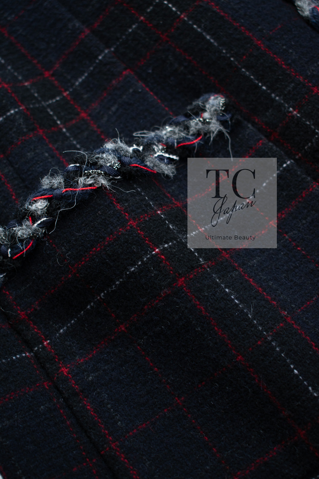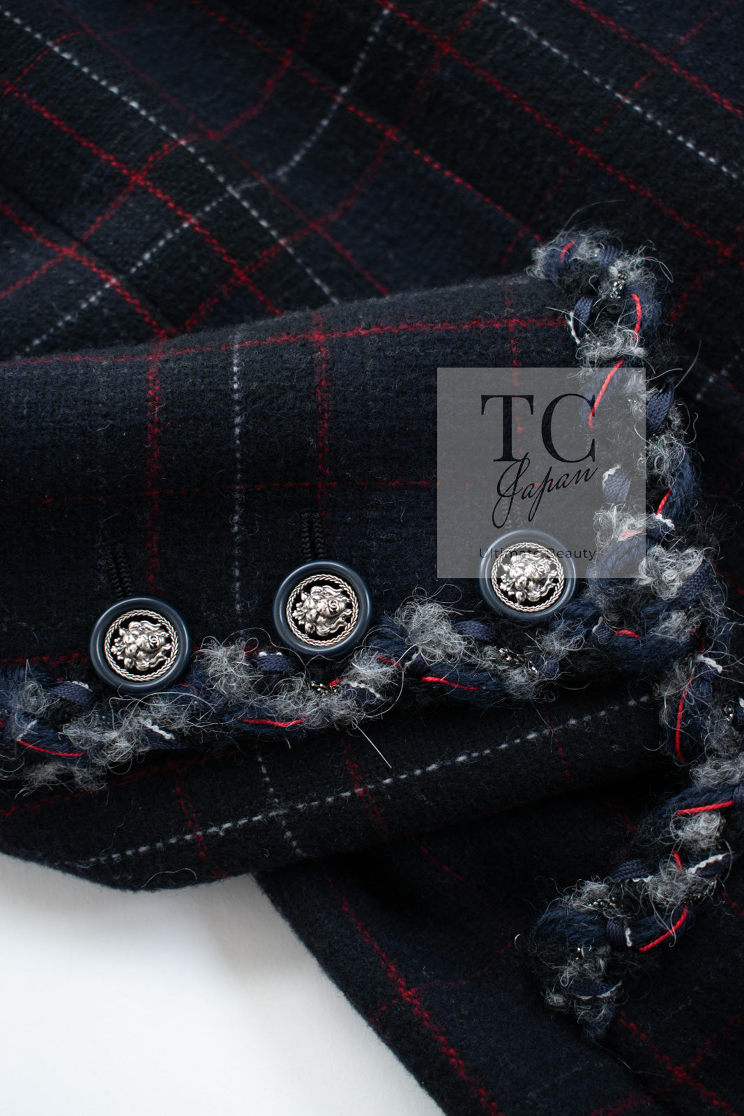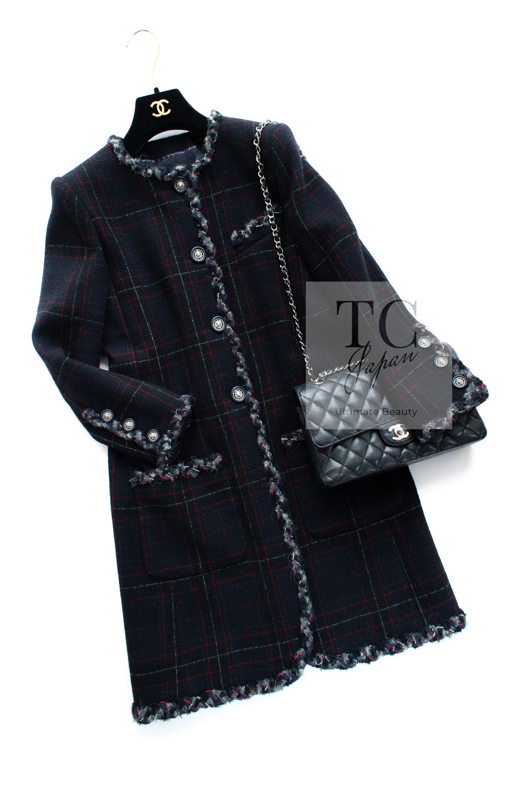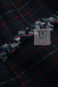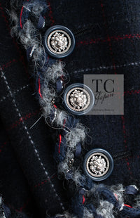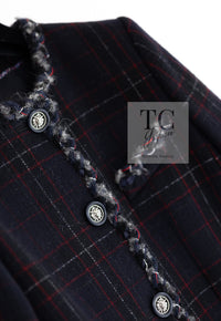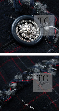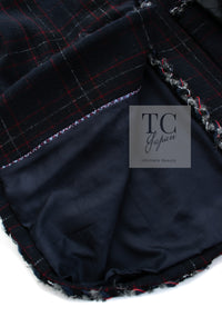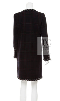 CHANEL 13PF Black Check Wool Cashmere Jacket Coat 36 シャネル ブラック チェック ウール カシミヤ ノーカラー ジャケット コート 即発