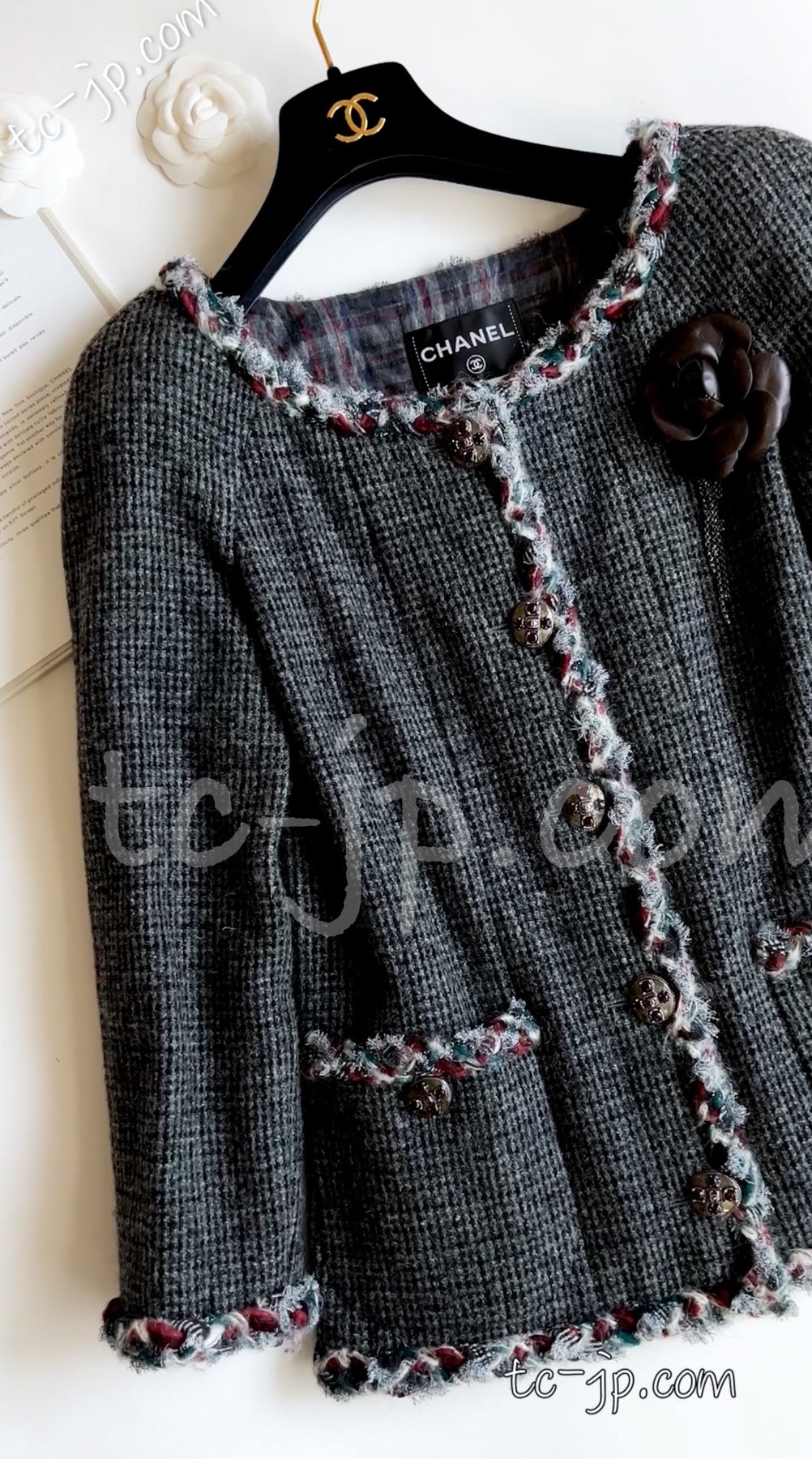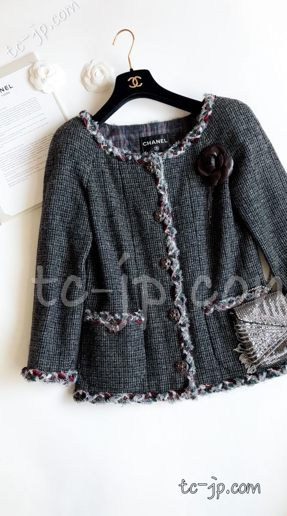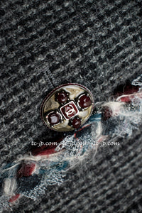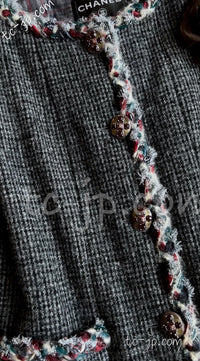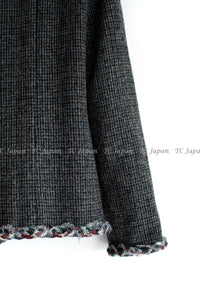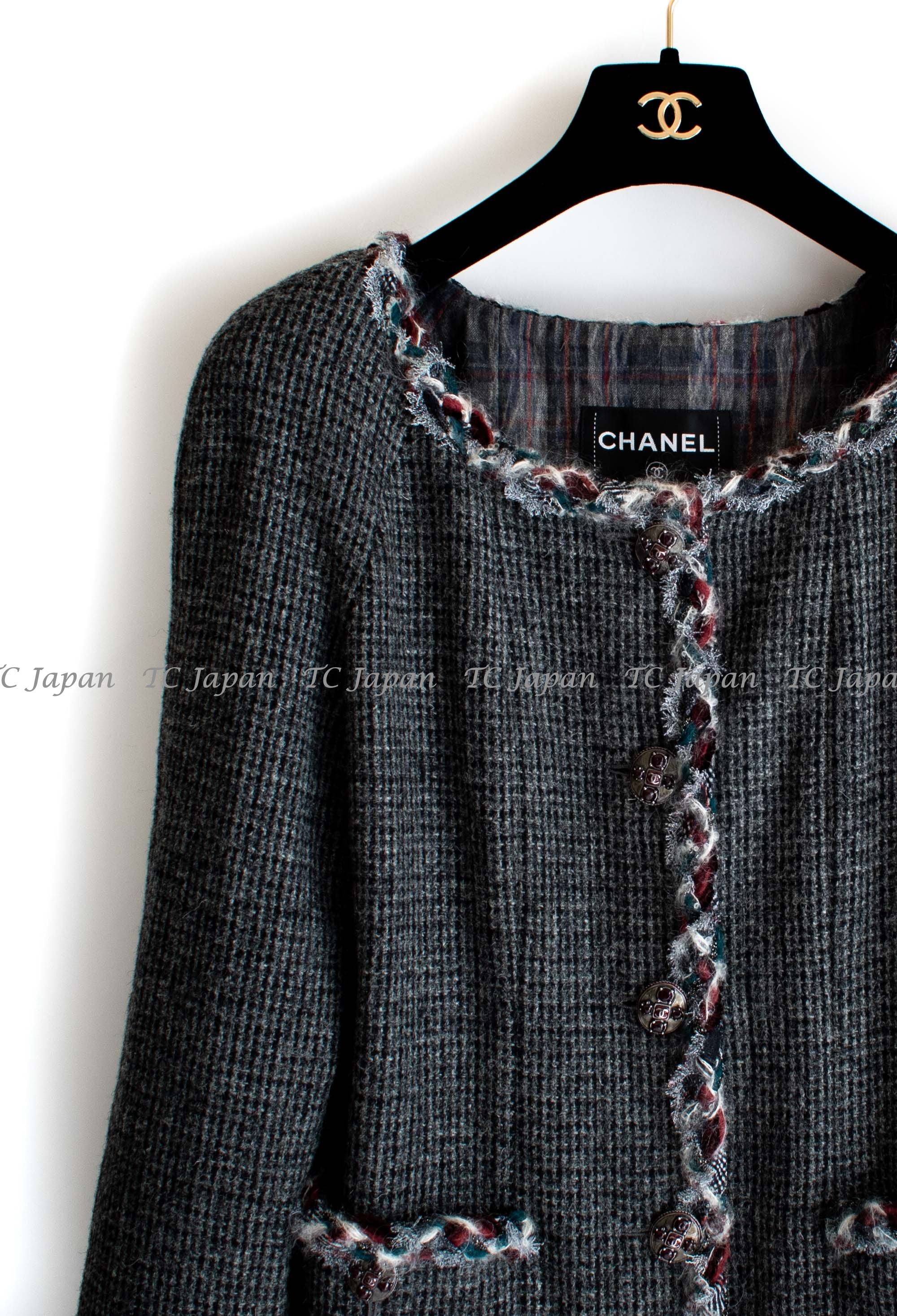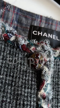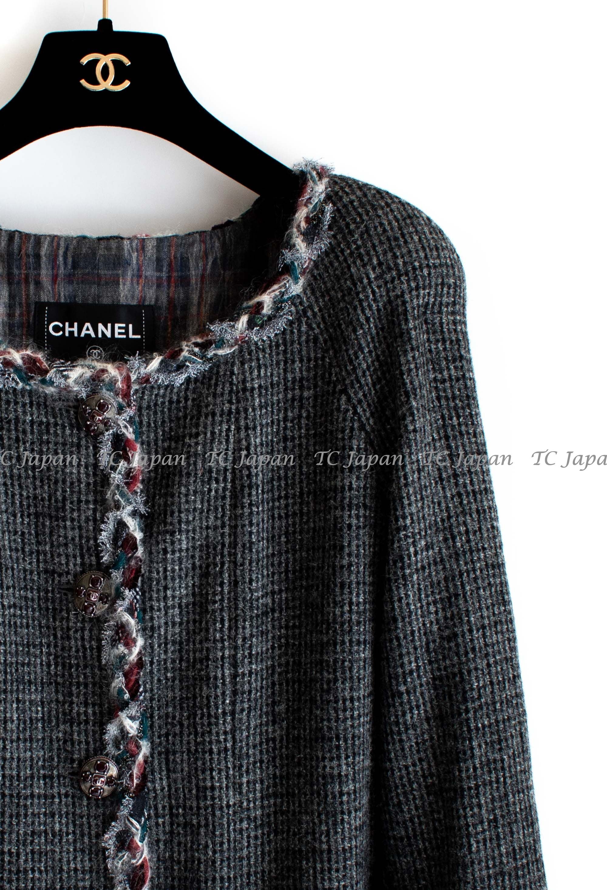 CHANEL 13PF Edinburgh Gray GreyTrim Wool Tweed Jacket 34 シャネル グレー トリミング ウール 100% ツイード ジャケット 即発
