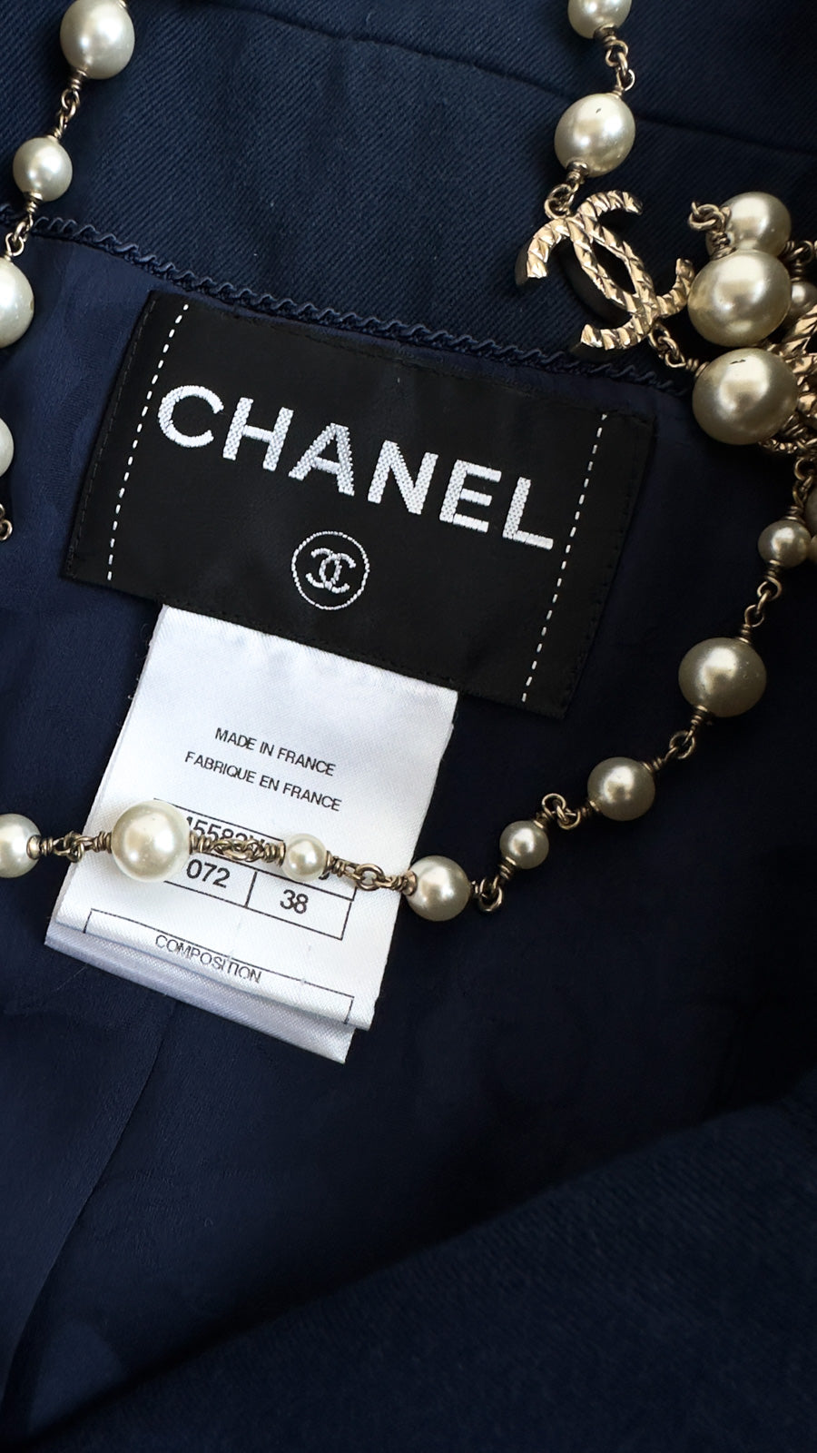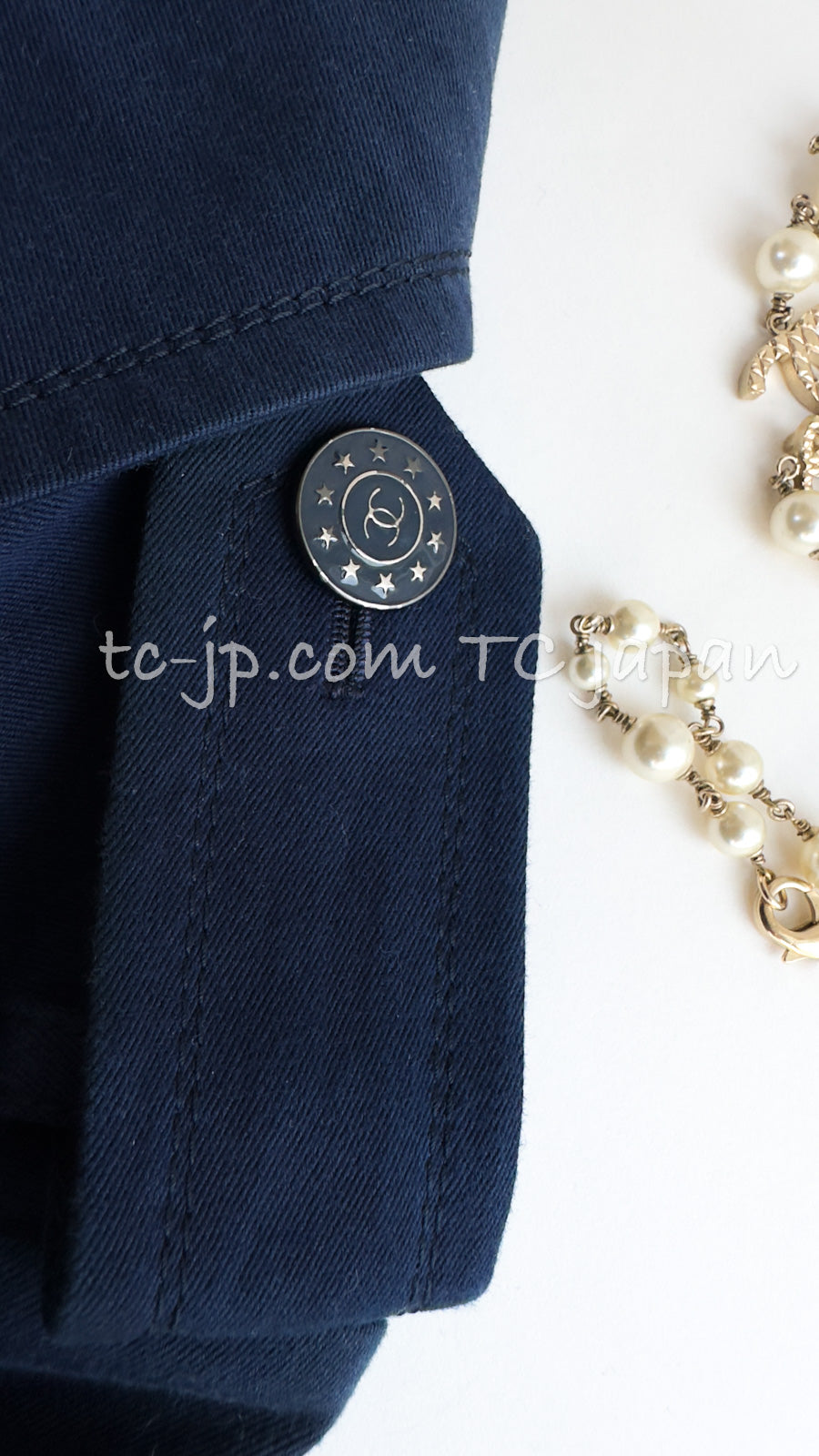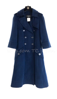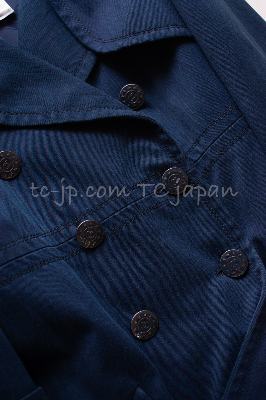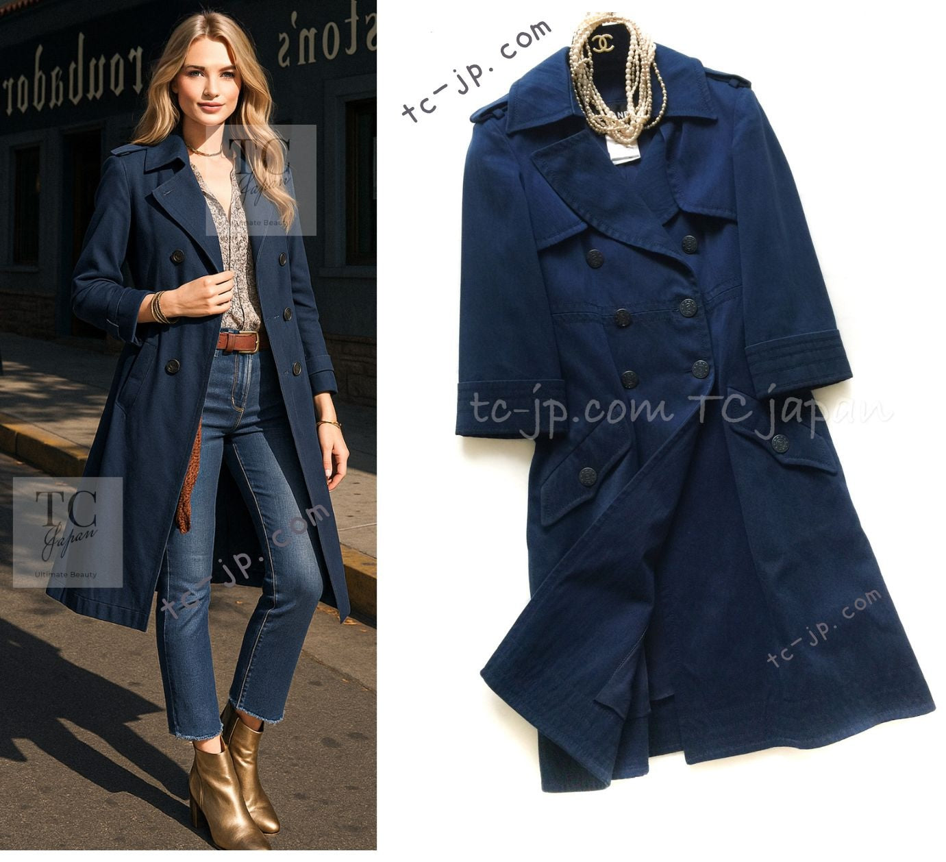 CHANEL 13S Laura Bailey Navy Cotton Trench Coat 36 38 シャネル ネイビー コットン ギャバジン トレンチ コート 即発