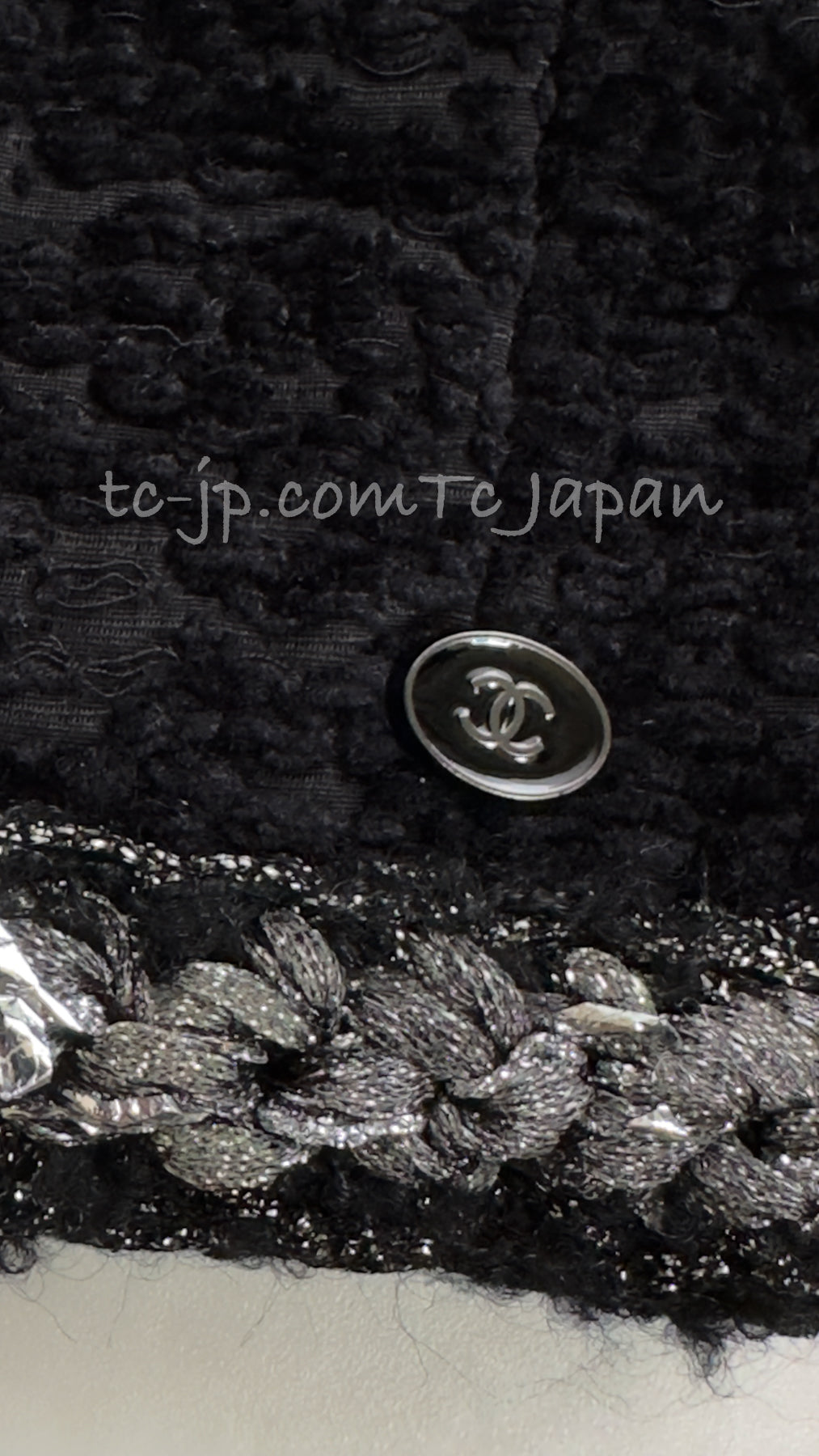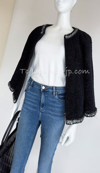 CHANEL 14A Black Silk Metallic Braided Trim Chenille Zipper Jacket 34 シャネル ブラック シルク ブレイド トリム ジッパー ジャケット 即発