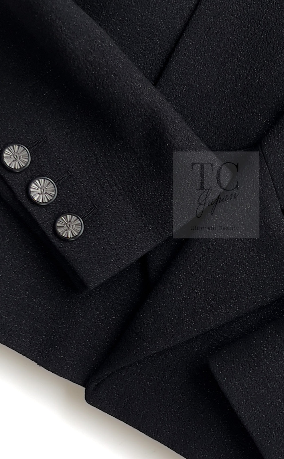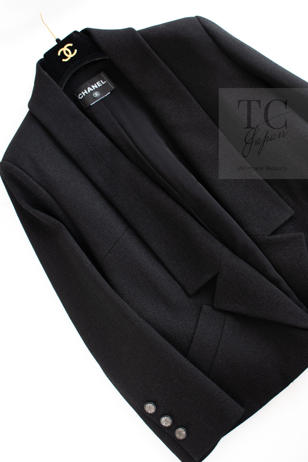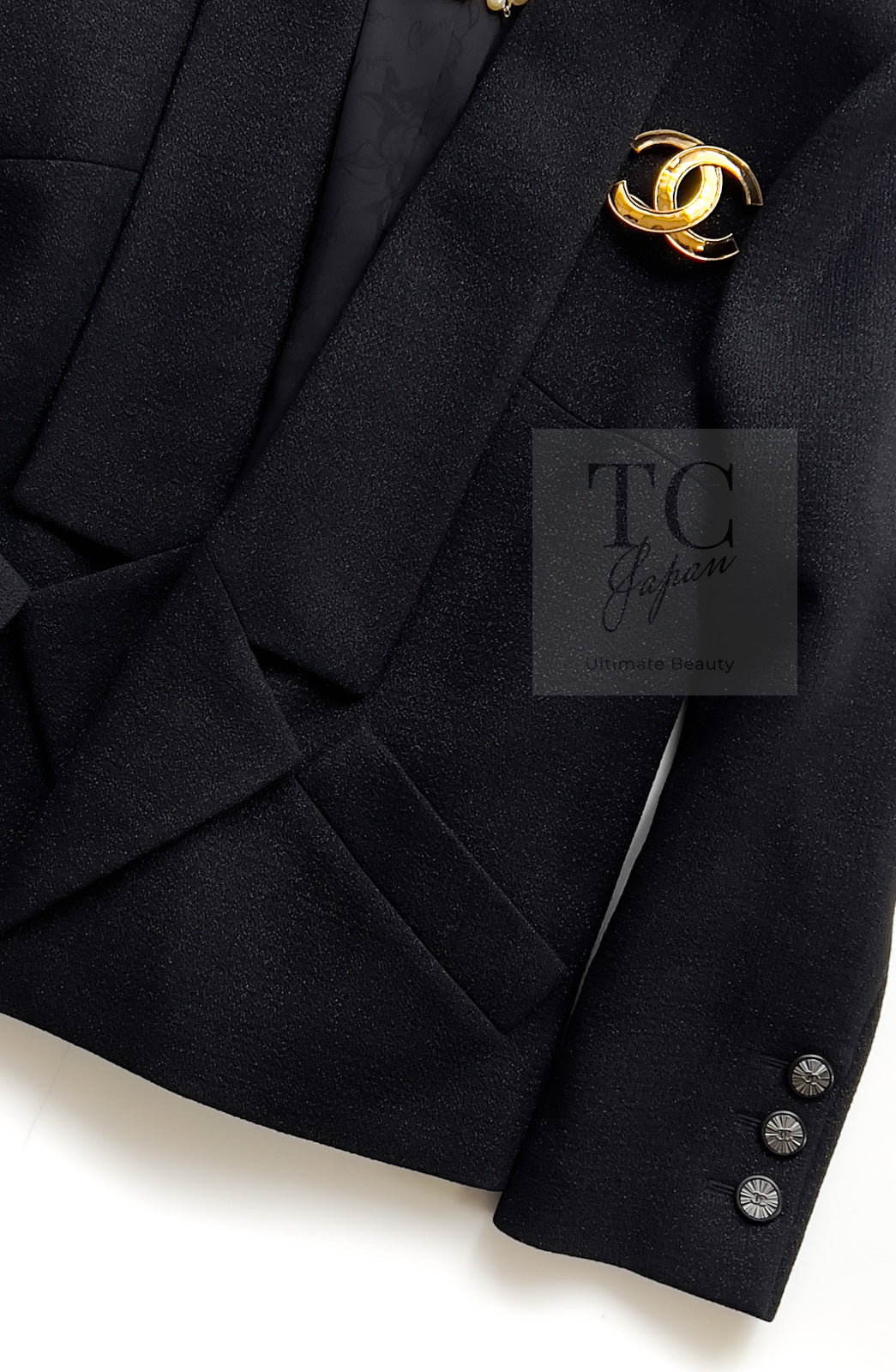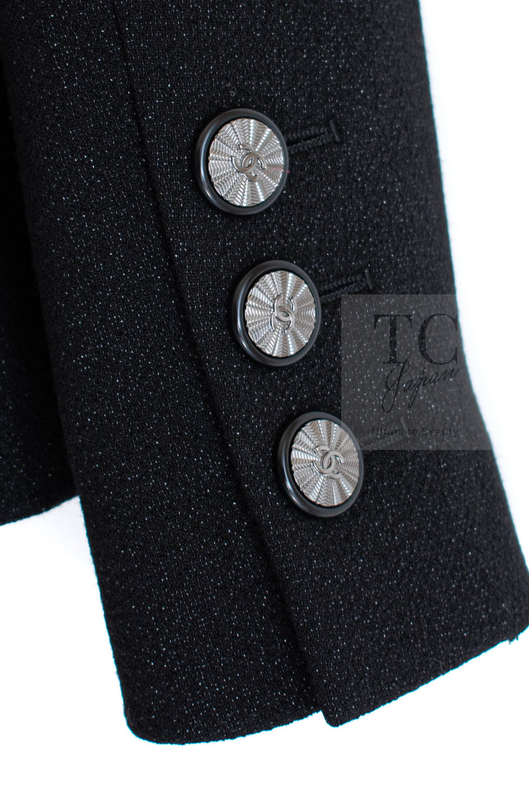 CHANEL 14B Black Metallic CC Buttons Wool Tweed Blazer Jacket 42 シャネル ブラック メタリック ココボタン ウール ツイード ブレザー ジャケット 即発